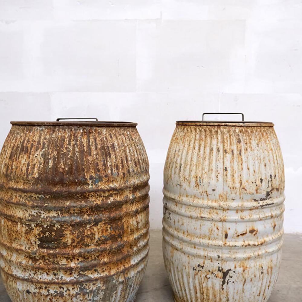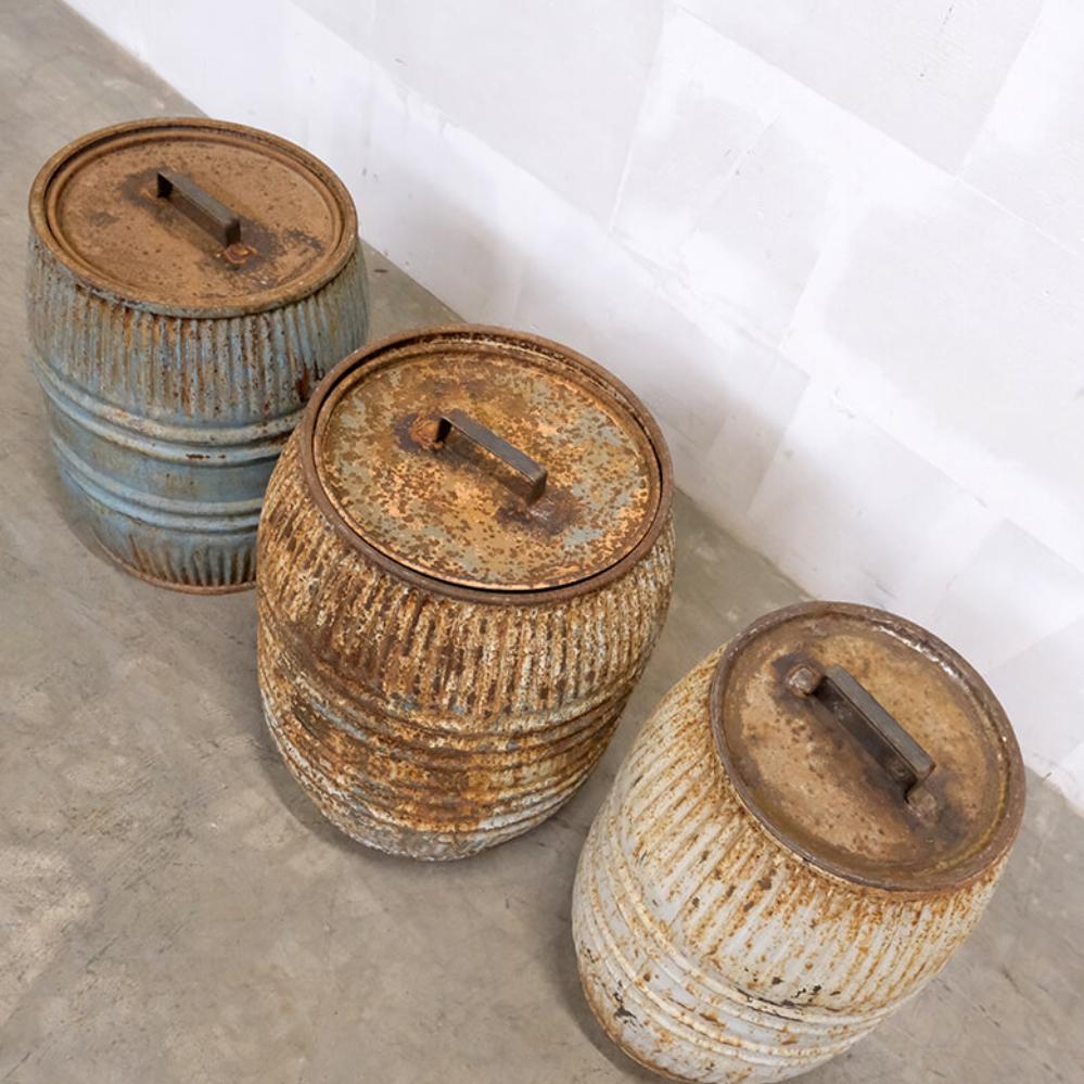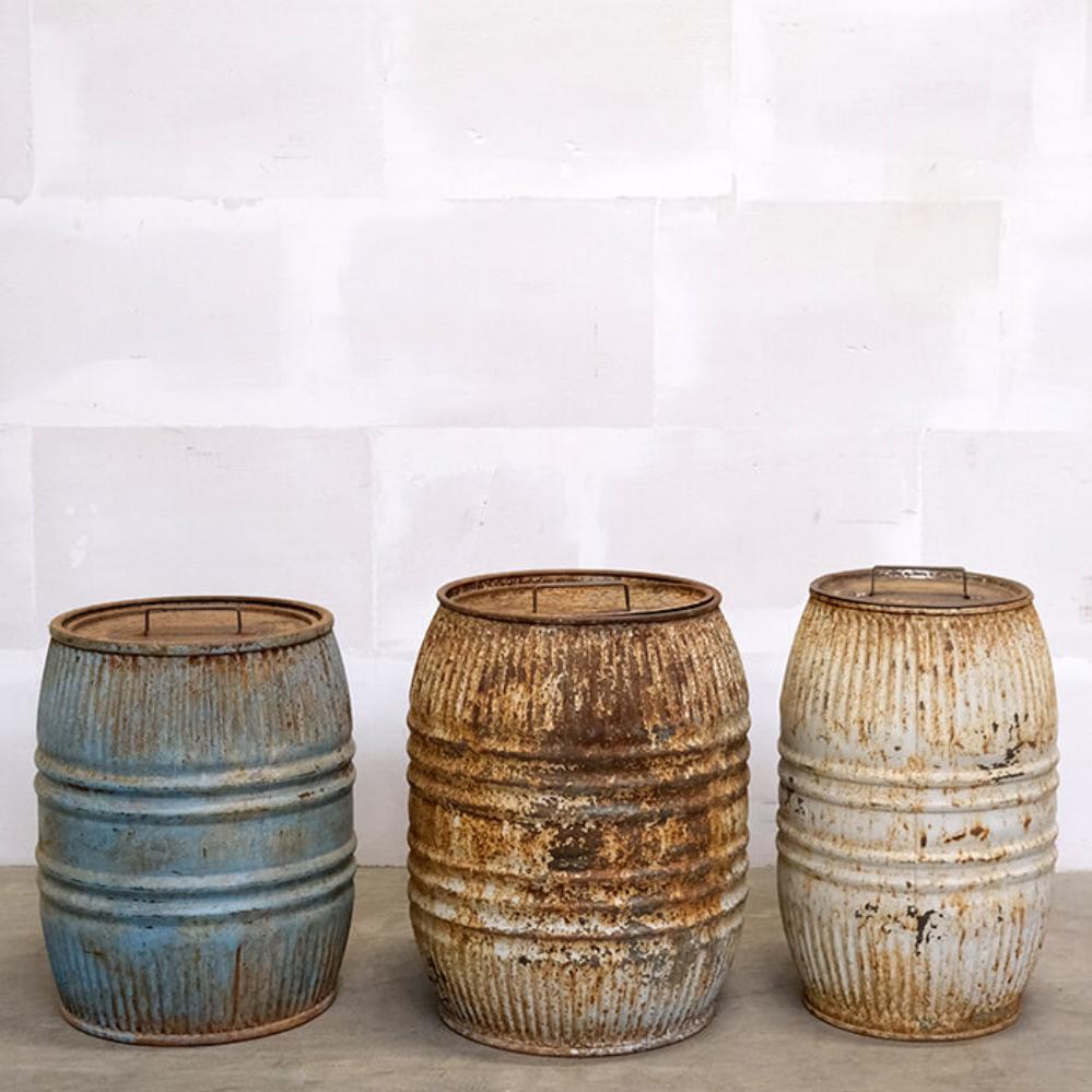 Wenn Sie rauen Charme und industrielle Details lieben, sind diese alten Metallfässer genau das Richtige für Sie. Jedes Fass hat seine eigene Patina, Farbnuance und Roststruktur, Spuren vieler Jahre im Einsatz. Mit einer Höhe von ca. 60–65 cm lassen sie sich leicht in die Einrichtung integrieren, ob als Aufbewahrung, Beistelltisch oder einfach als dekoratives Einzelstück mit Charakter. Manche sind bläulich, andere weiß oder tief verrostet. Eines haben sie alle gemeinsam: Sie geben sich nicht als etwas anderes aus. Sie sind abgenutzt. Sie sind authentisch. Und sie haben Persönlichkeit. Bitte zur Kenntnis nehmen: Jedes Fass ist einzigartig in der Farbe und im Ausdruck. Das ist Teil ihrer Geschichte. Und ihre Stärke.