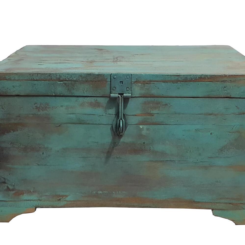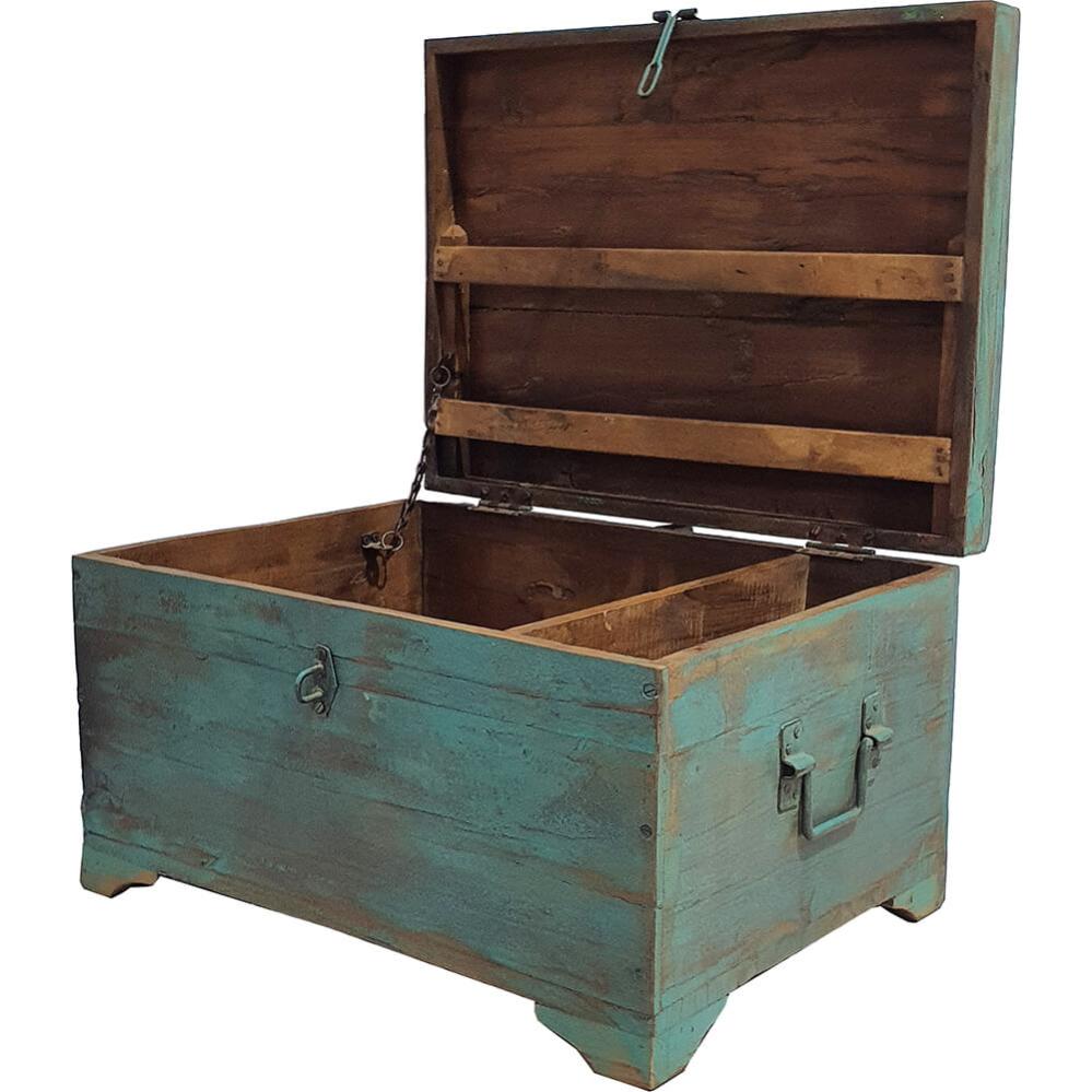 Diese charmante Holzkiste hat schon einiges erlebt und ist nun bereit für ein neues Kapitel mit Deckel, Griffen und praktischer Fächereinteilung. Die abgenutzte türkisgrüne Farbe und das robuste Holz mit sichtbaren Gebrauchsspuren verleihen der Kiste einen rauen und ehrlichen Charakter. Innen ist die Kiste in mehrere Fächer unterteilt, sodass sich Bücher, Textilien, Spielzeug oder kreative Kleinteile ganz einfach organisieren lassen. Der Deckel wird mit einem einfachen, funktionalen Riegel verschlossen, und die stabilen Griffe an den Seiten ermöglichen einen einfachen Transport. Nutzen Sie sie zur Aufbewahrung, als Couchtisch oder einfach als dekoratives Möbelstück mit viel Persönlichkeit. Ein Unikat, das Funktion, Geschichte und Charme auf schönste Weise vereint.