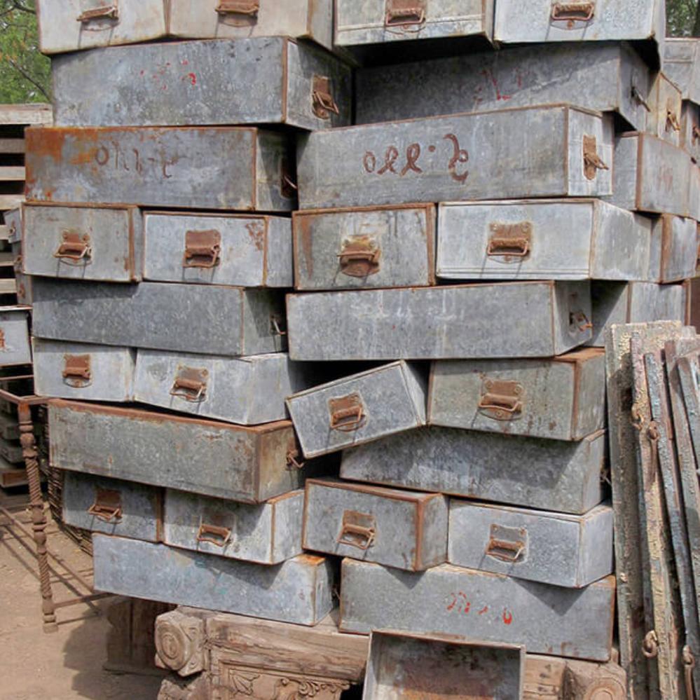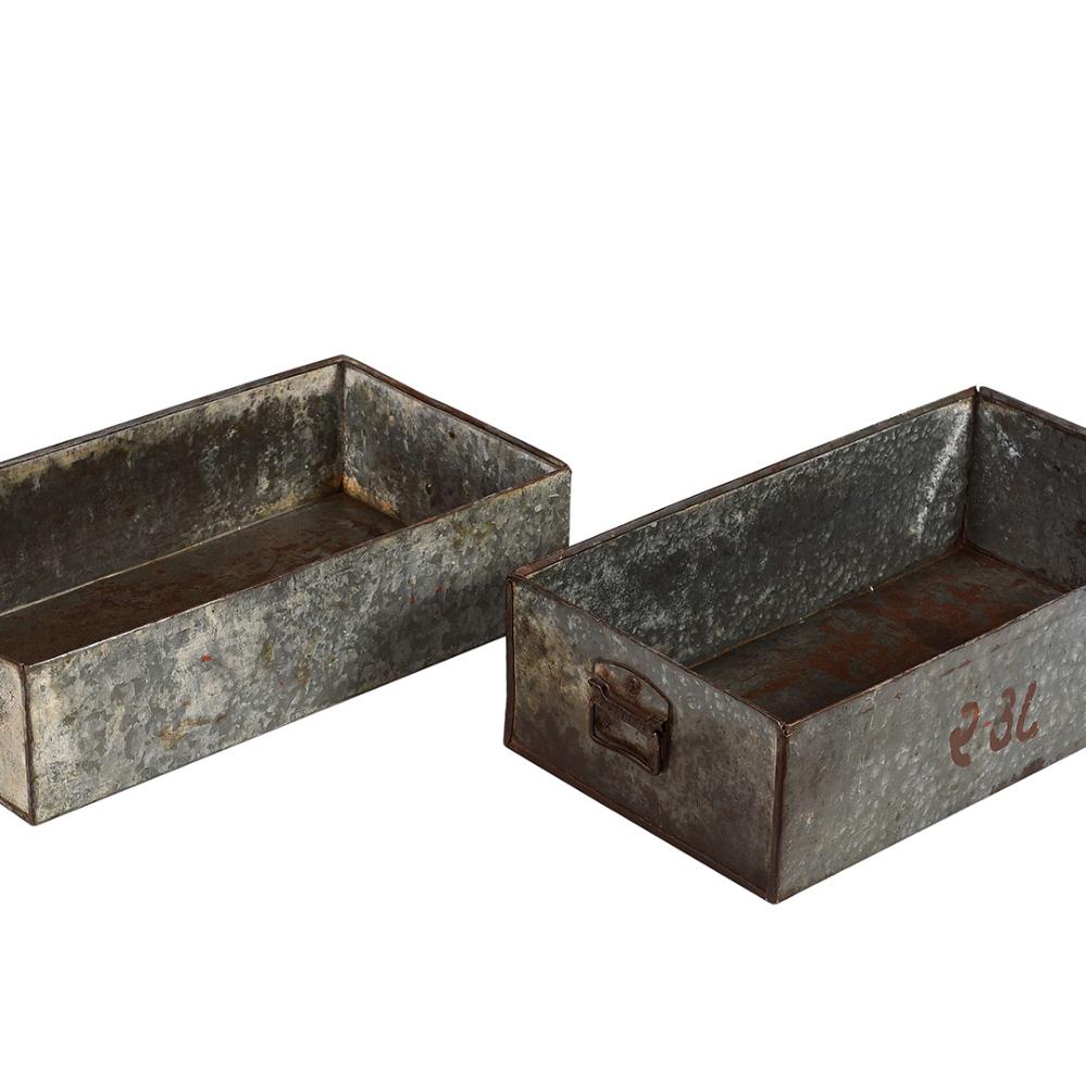 Rustikale, alte Schublade aus Metall. Die verführerische Patina zeugt von einer langen Lebensdauer. Die Boxen können in Ausführung und Größe unterschiedlich sein, manche rustikaler als andere. Alle haben viele Anwendungsmöglichkeiten. Verwenden Sie die Schublade zu Hause oder in Ihrem Geschäft. Schaffen Sie einen Hingucker aus einem Wandregal, indem Sie viele der schönen alten Schubladen an derselben Wand aufhängen. Sie können Ihr ganz individuelles Wandmöbelstück gestalten, wenn Sie Ihrer Fantasie freien Lauf lassen.