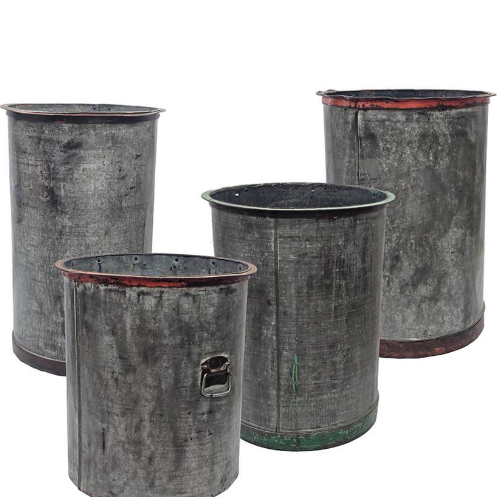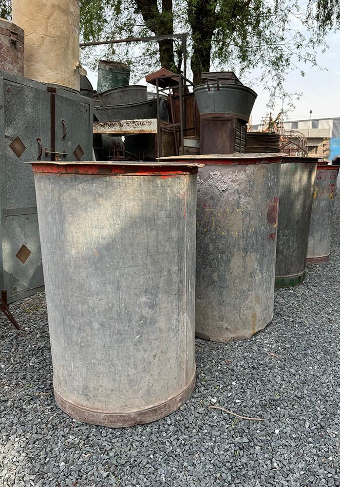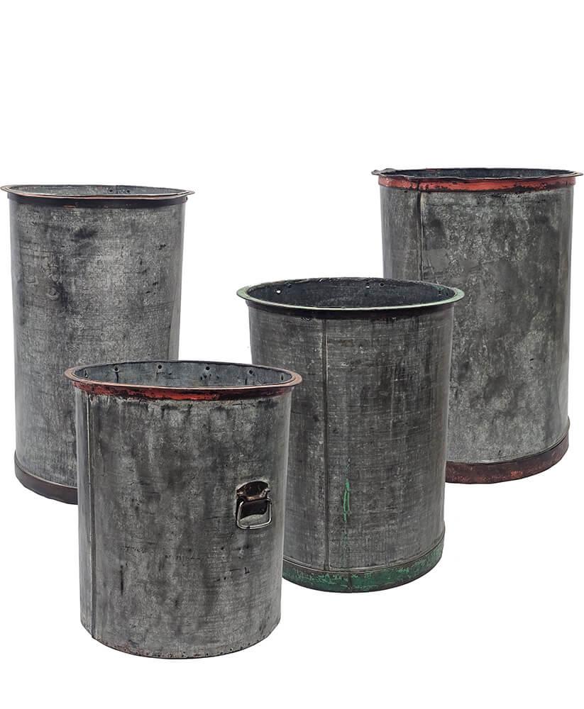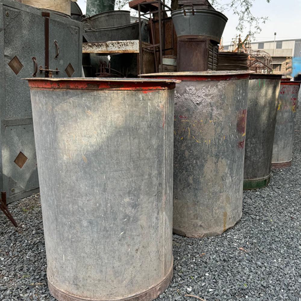 Diese alten Eisentonnen strahlen rustikalen Charme und Geschichte aus. Mit ihrer abgenutzten Oberfläche und natürlichen Patina hat jede Tonne ihren eigenen einzigartigen Charakter. Sie wurden vielleicht einst zur Aufbewahrung von Wasser in Häusern oder in der Industrie verwendet, aber jetzt sind sie bereit, ein cooles und funktionales Element in einer modernen Einrichtung zu sein. Verwenden Sie sie als einzigartige Pflanzgefäße im Garten oder auf der Terrasse oder zur Aufbewahrung in einer rustikalen Küche oder Kreativwerkstatt. Sie werden Ihrer Einrichtung garantiert einen rauen, industriellen Touch verleihen, und egal, wo sie platziert werden, schaffen sie eine authentische Atmosphäre mit einem Hauch von Geschichte und Seele.