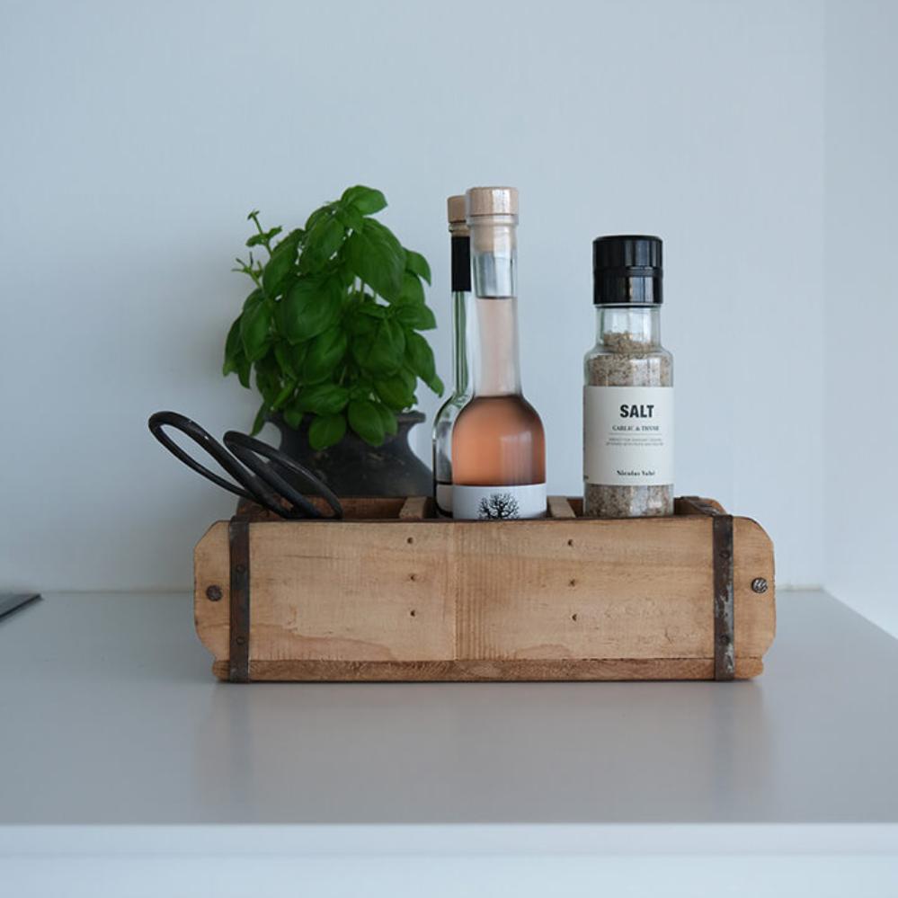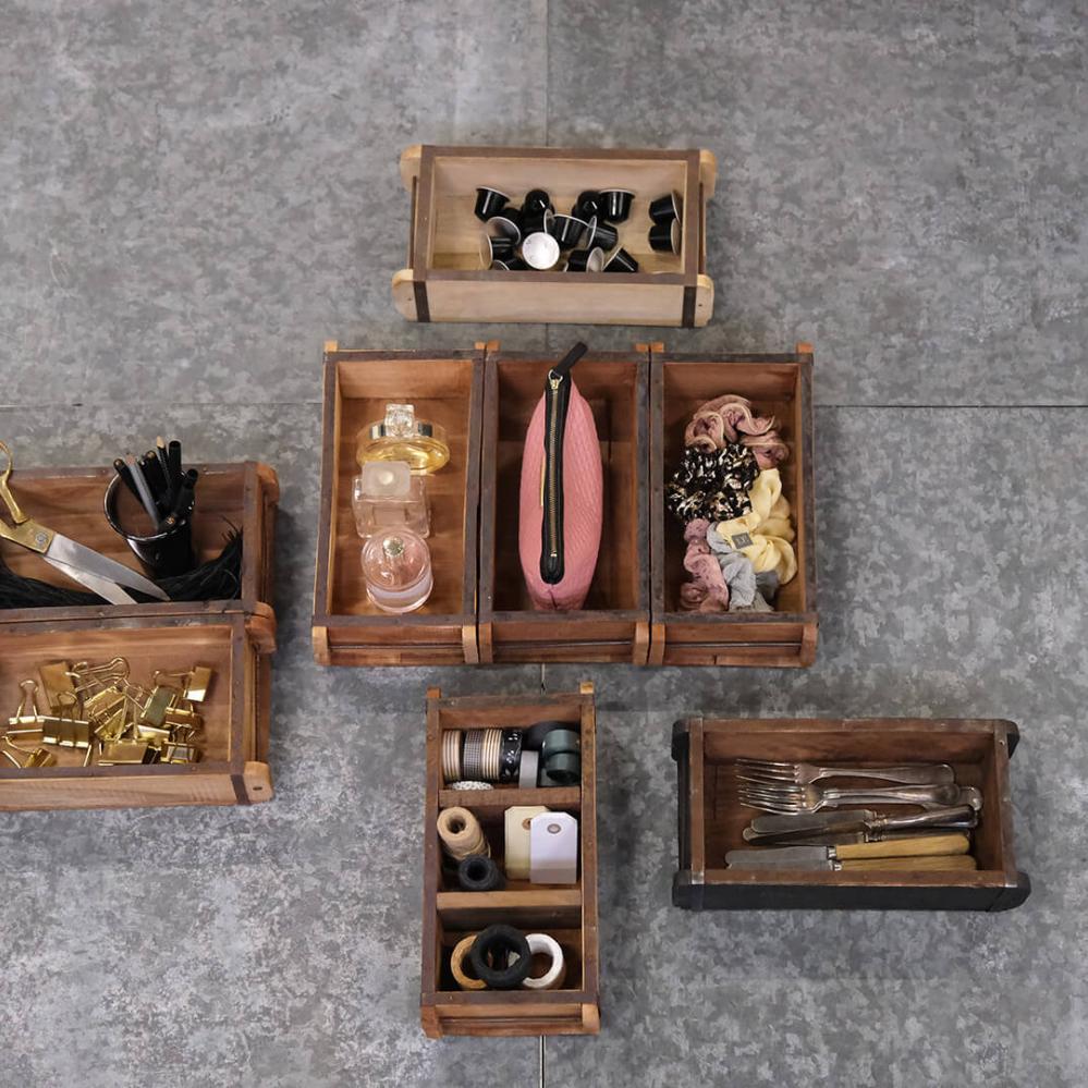 Ziegelform aus Altholz mit 3 Fächern, die eine wunderbare Aufbewahrung im Badezimmer für Schmuck, Make-up oder Körperpflegeprodukte sein kann. Sie können den Kasten auch in der Küche für frische Gewürze oder Öle oder im Büro für Ihren Büroutensilien verwenden. Die Möglichkeiten sind endlos.