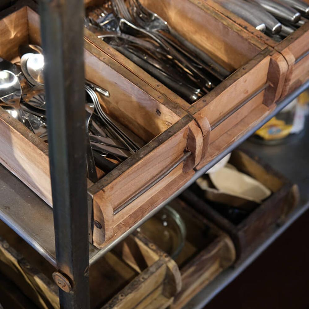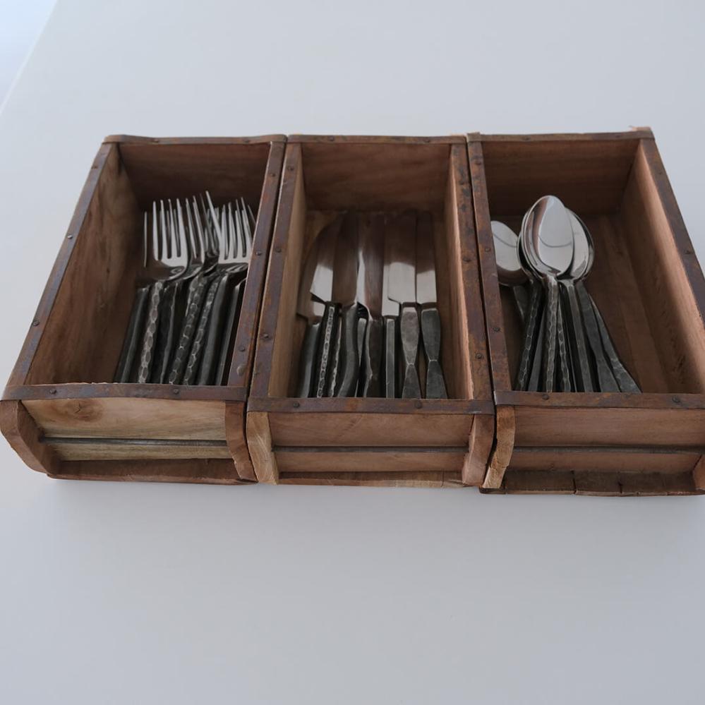 Wir haben 3 Ziegelformen aus Altholz zu einer Form zusammengefügt, die als Bestecktablett, für Kräuter und Öle oder etwas ganz anderes absolut perfekt ist. Sie können den Kasten auch als Regal an die Wand hängen und Ihre Lieblingsnippsachen darin ausstellen. Sie können auch mehrere der schönen Ziegelformen mischen, um eine völlig einzigartige Wand aus kleinen Regalen zu kreieren.