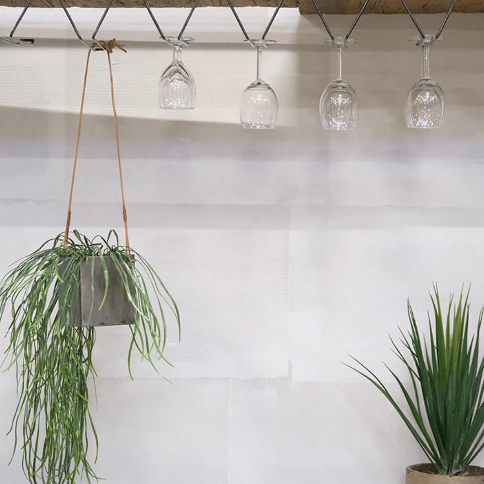 Schöner, rustikaler Glashalter zur Aufbewahrung von Gläsern mit Stielen und Füßen, wie Weingläsern, Sektgläsern und Martinigläsern. Der Glasaufhänger ist aus pulverbeschichtetem Eisen gefertigt und kann über Kopfhöhe oder unter einem Regal montiert werden. Schaffen Sie mit dieser einfachen Lösung Ihre eigene Baratmosphäre.