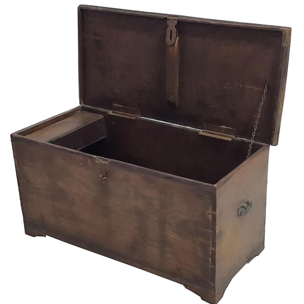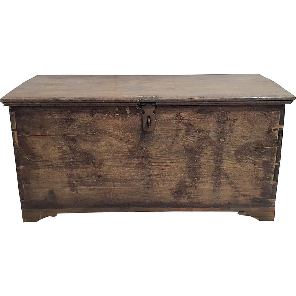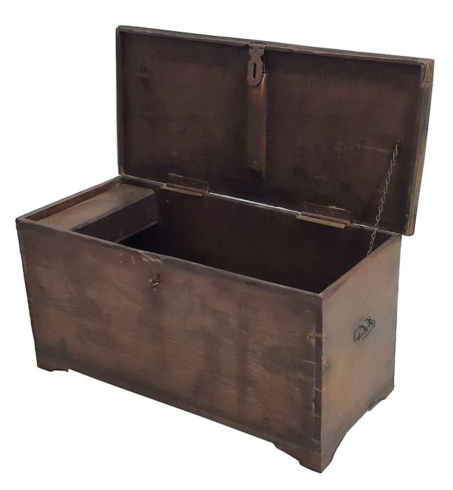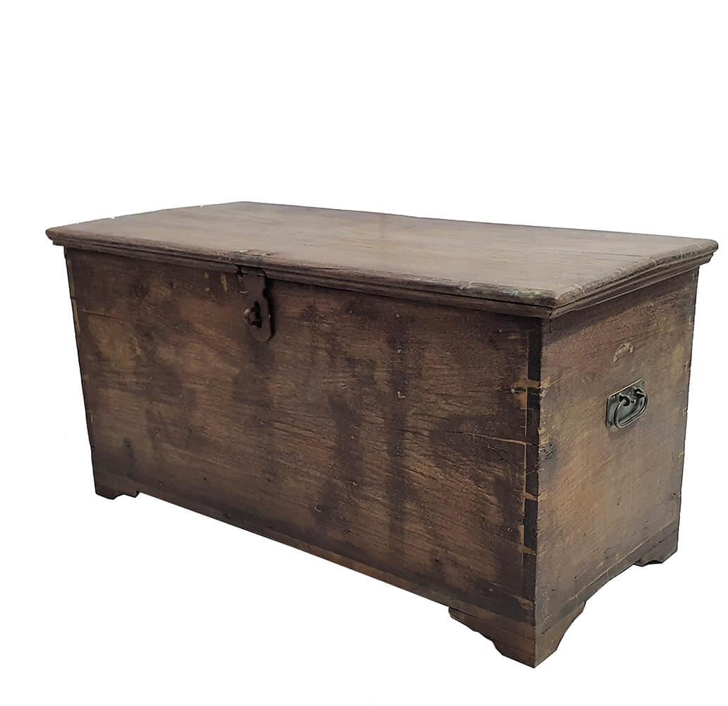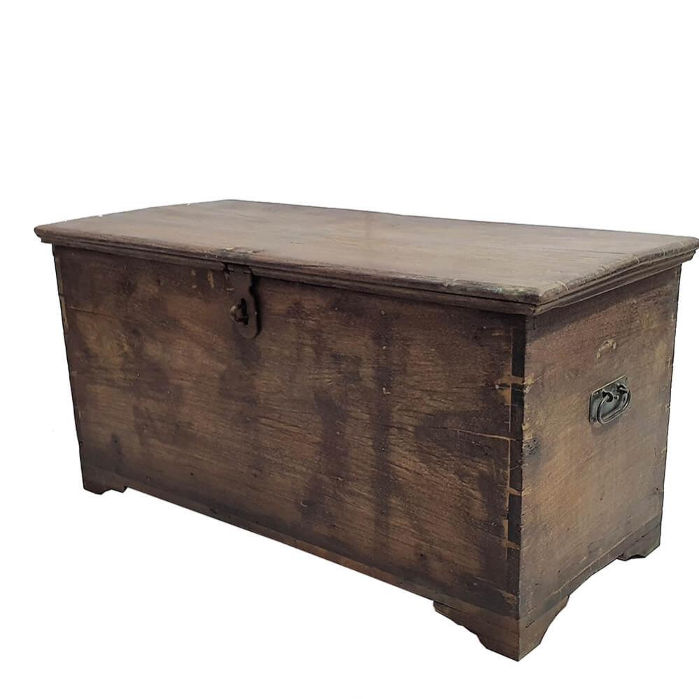 Diese große, alte Holzkiste ist sowohl praktisch als auch voller Persönlichkeit. Mit ihrer abgenutzten Oberfläche und Patina strahlt sie Geschichte und Handwerkskunst aus. Gefertigt aus massivem Holz mit stabilen Verbindungen verfügt sie über Metallgriffe, die das Bewegen trotz ihrer Größe erleichtern. Innen befindet sich ein geräumiges Staufach sowie ein kleines Extrafach an der Seite, ideal zum Aufbewahren kleinerer Gegenstände. Nutzen Sie sie zur Aufbewahrung im Wohnzimmer, Flur oder Schlafzimmer oder als rustikalen Couchtisch mit zusätzlicher Funktion. Diese Kiste versteckt ihre Spuren nicht. Sie zeigt sie stolz. Ein Möbelstück mit Charakter.
