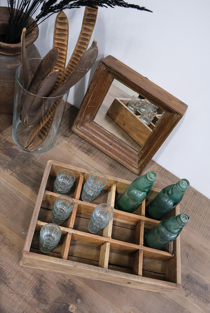 Altes Holztablett mit Fächern und schönster Patina. Verwenden Sie den Kasten für Ihre Nähutensilien, Ihre Samen im Gewächshaus oder Ihre Nippsachen für Geschenkverpackungen oder Weihnachtsdekorationen. Sie können ihn auch als völlig einzigartige Setzkasten an die Wand hängen oder in Ihrem Juweliergeschäft verwenden, um Schmuck oder Steine auszustellen. Die Verwendungsmöglichkeiten sind nur durch die Phantasie begrenzt. Bitte beachten Sie, dass die Anzahl der Fächer und die Größe der Box variieren können.