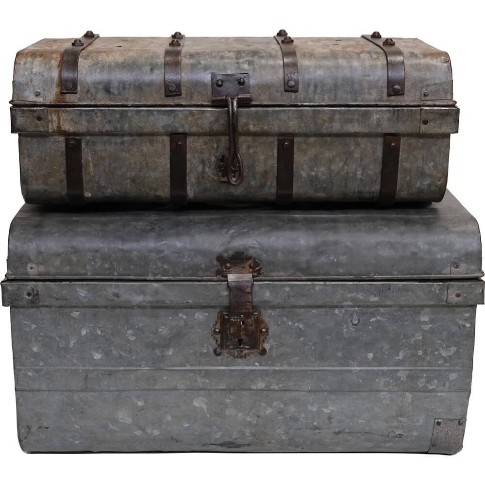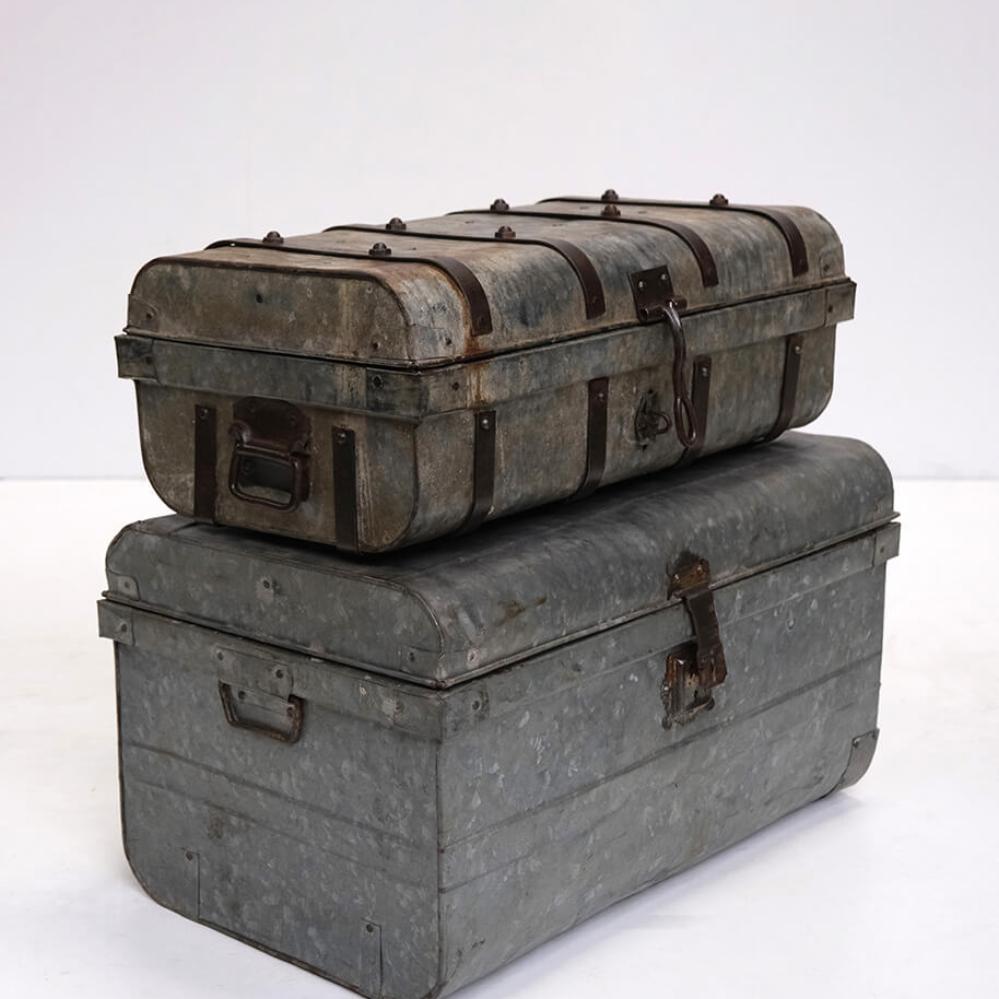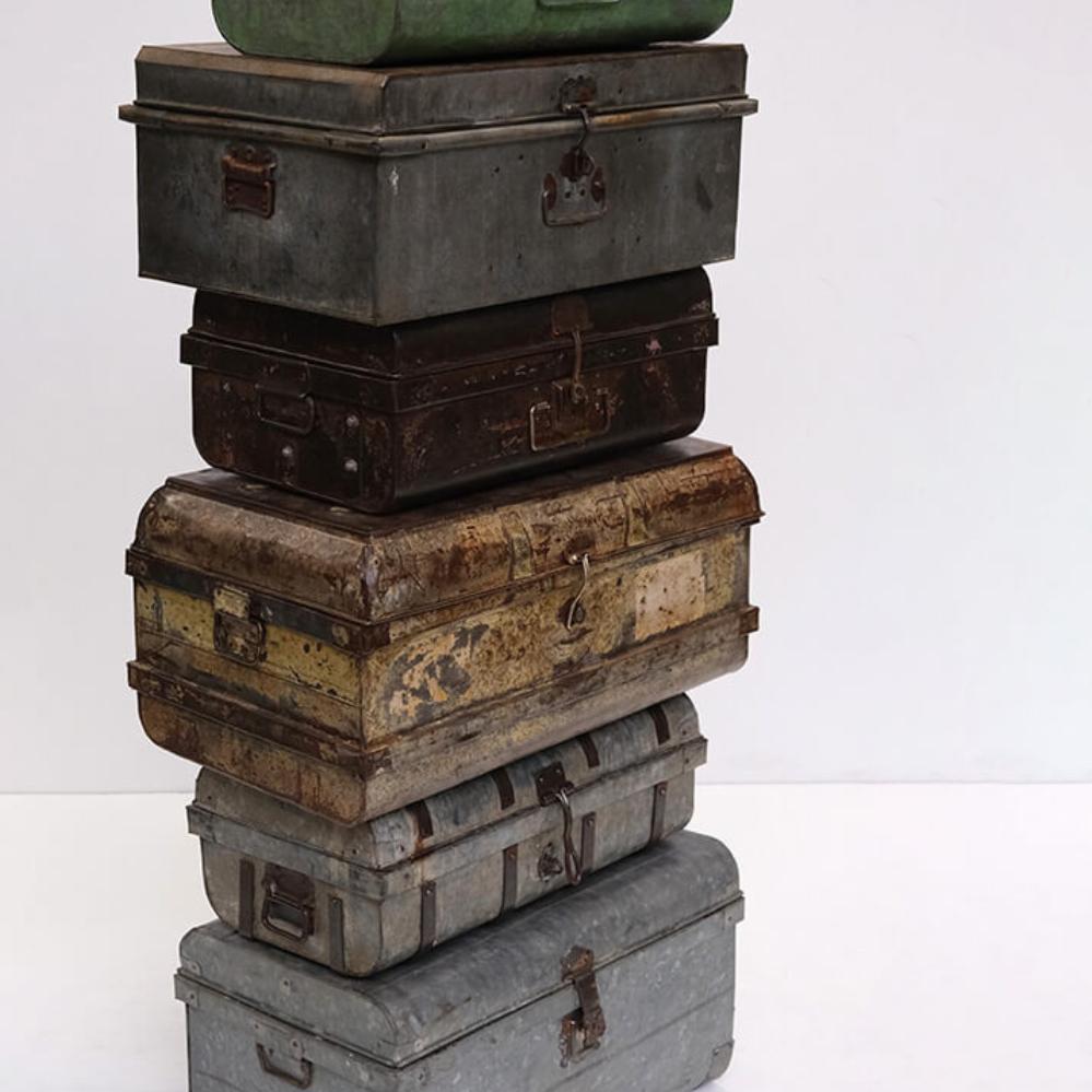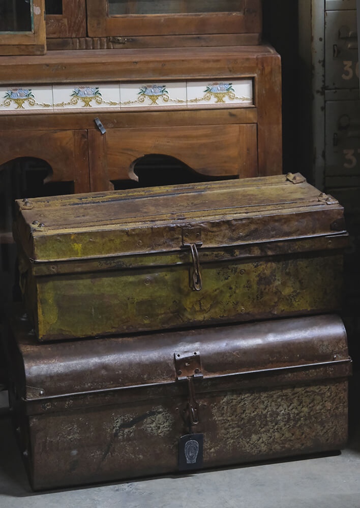 Die Koffer können bereits ihre Anekdoten aus Indien erzählen, sind nun aber nach Dänemark gereist, bereit für neue Abenteuer. Die Eisenkoffer haben die schönste Patina und viele tolle Details. Verwenden Sie sie zum Aufbewahren von Decken, Bettzeug, Vasen usw. Die beiden Eisenkoffer werden Ihrer Einrichtung sicherlich eine authentische Atmosphäre verleihen. Die Maße des kleinen Koffers sind: H: 23 cm, B: 60 cm, T: 37 cm