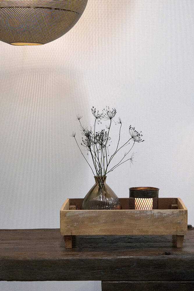 Mit seiner dunklen Oberfläche strahlt dieser Eisenbehälter einen rohen und industriellen Stil aus. Der Behälter kann für alles verwendet werden, von Büroutensilien bis hin zu Besteck, und das rustikale Metallgeflecht-Design unterstreicht deutlich den industriellen Ausdruck des Behälters.