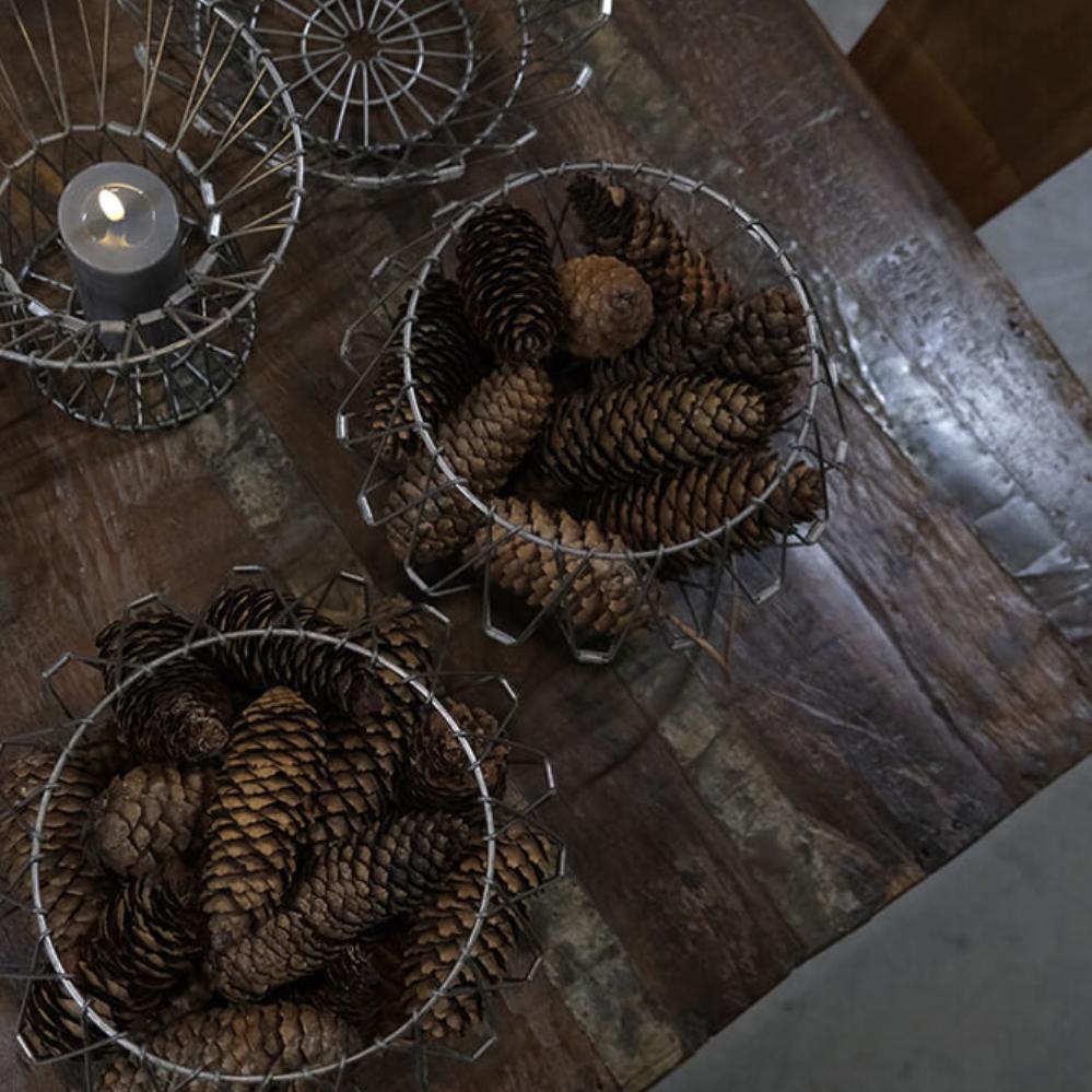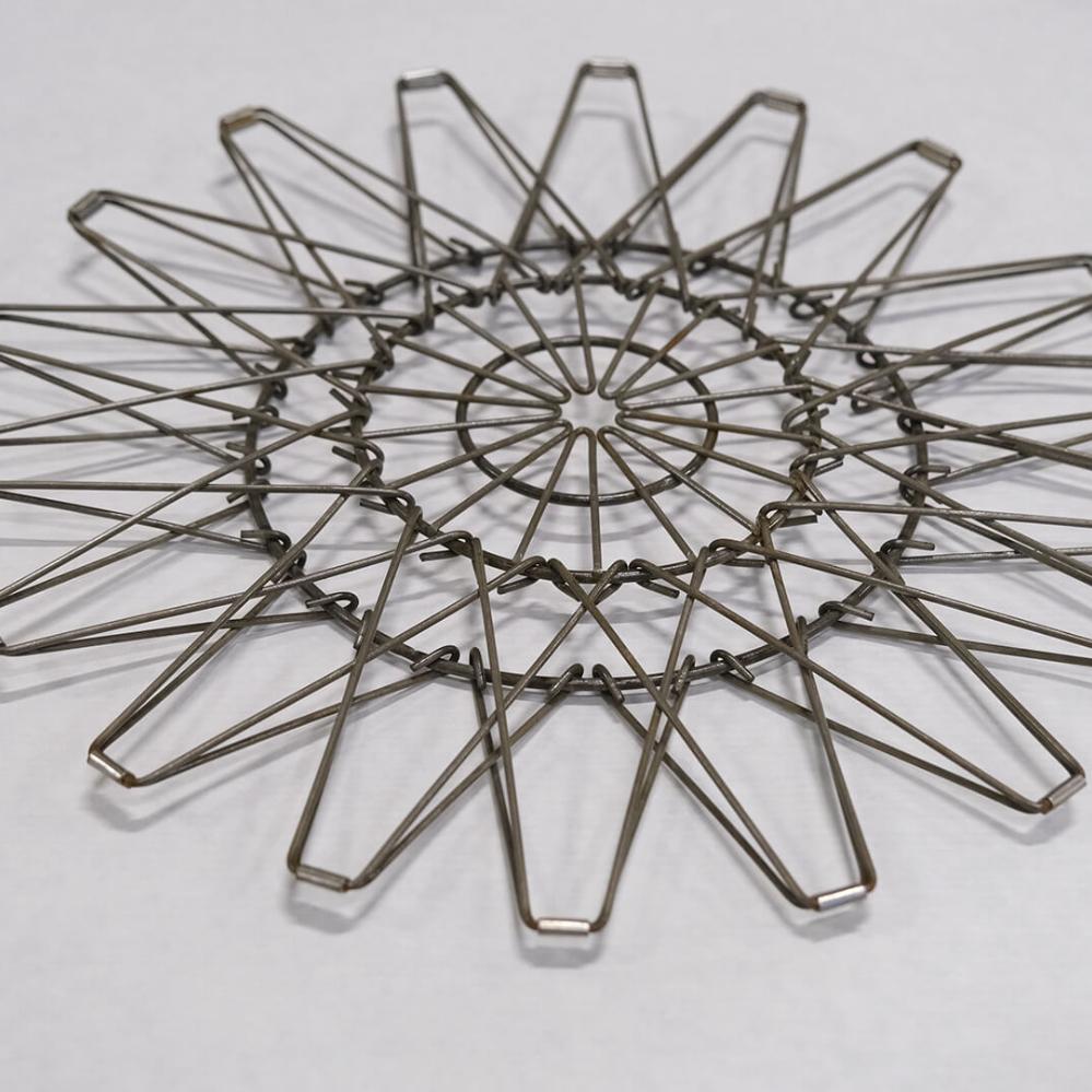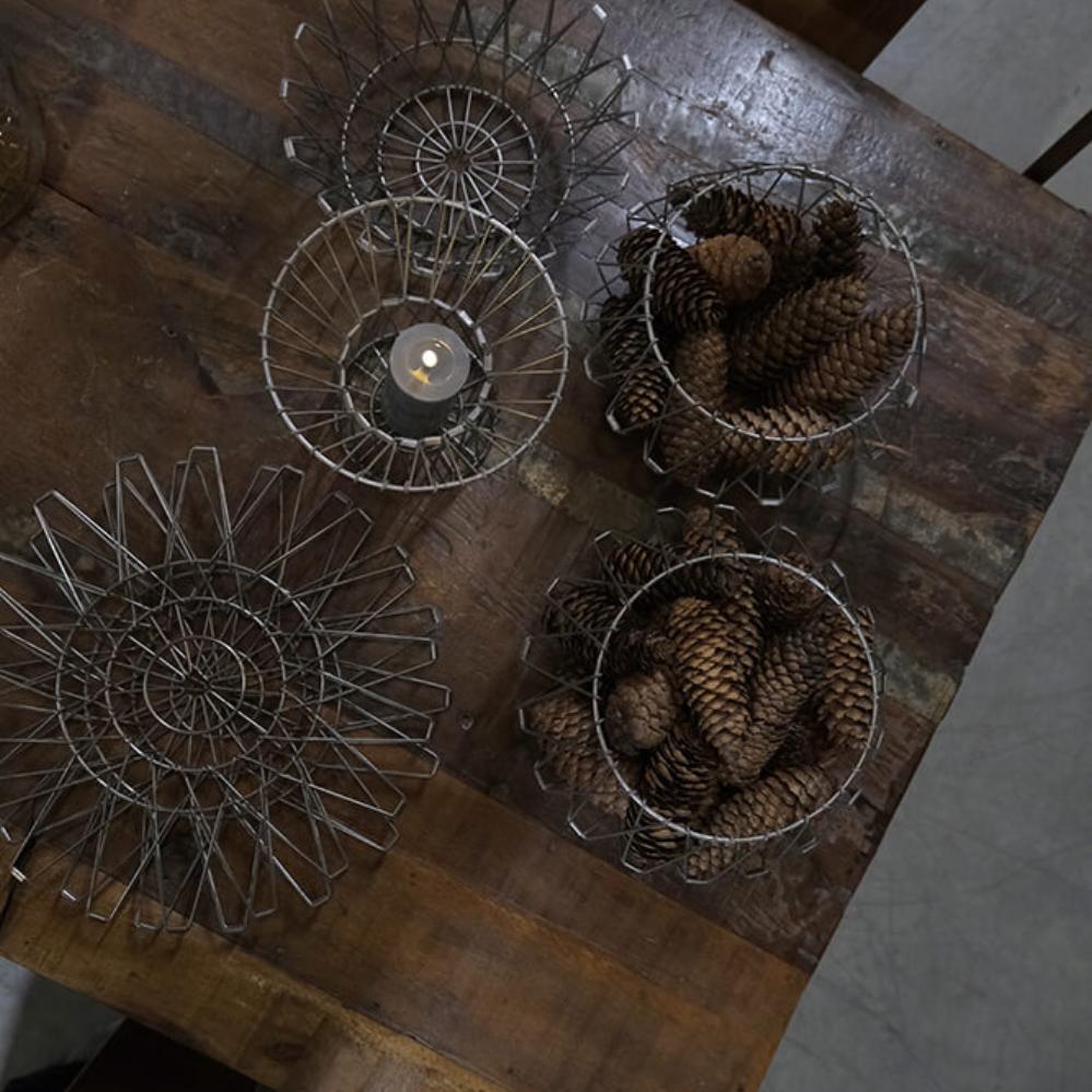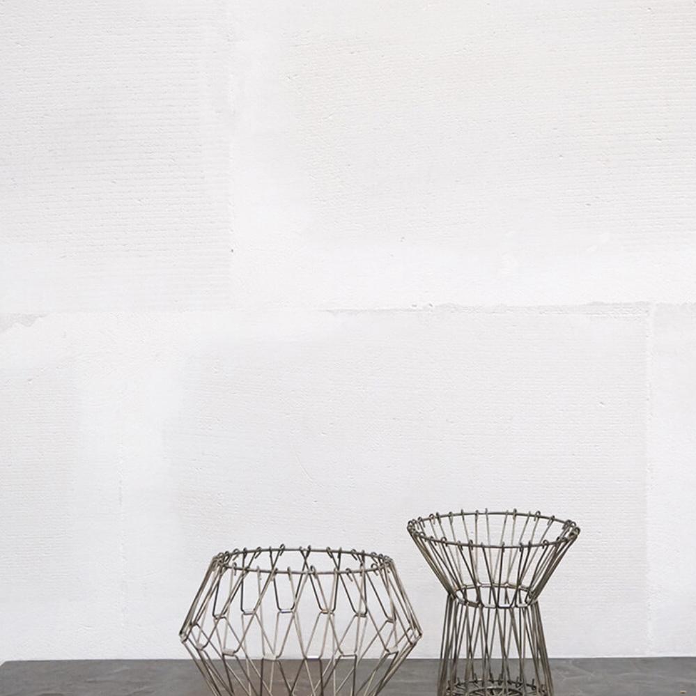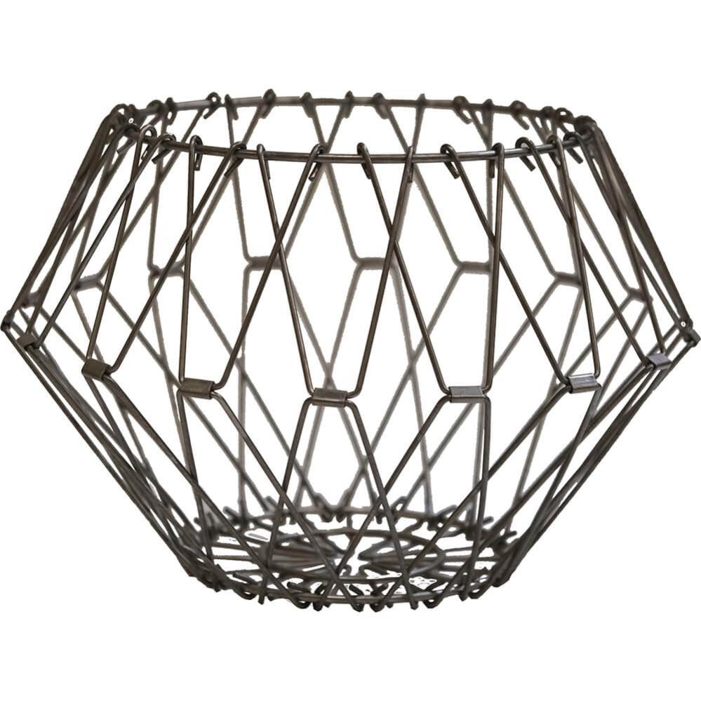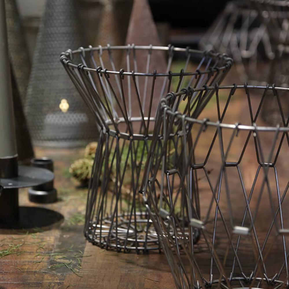 Wunderschöner Drahtkorb aus Eisen, der mit Klarlack behandelt wurde. Der Drahtkorb hat ein einfaches und multifunktionales Design, da er zu verschiedenen Arten von Körben geformt und vollständig flach gedrückt werden kann, sodass er an eine Wand gehängt, auf eine Kommode oder auf einen Tisch gestellt oder in der Decke aufgehängt werden kann. Die Drahtkreation ist eine einfache Möglichkeit, Ihrer Inneneinrichtung einen schönen, einzigartigen und rustikalen Look zu verleihen.