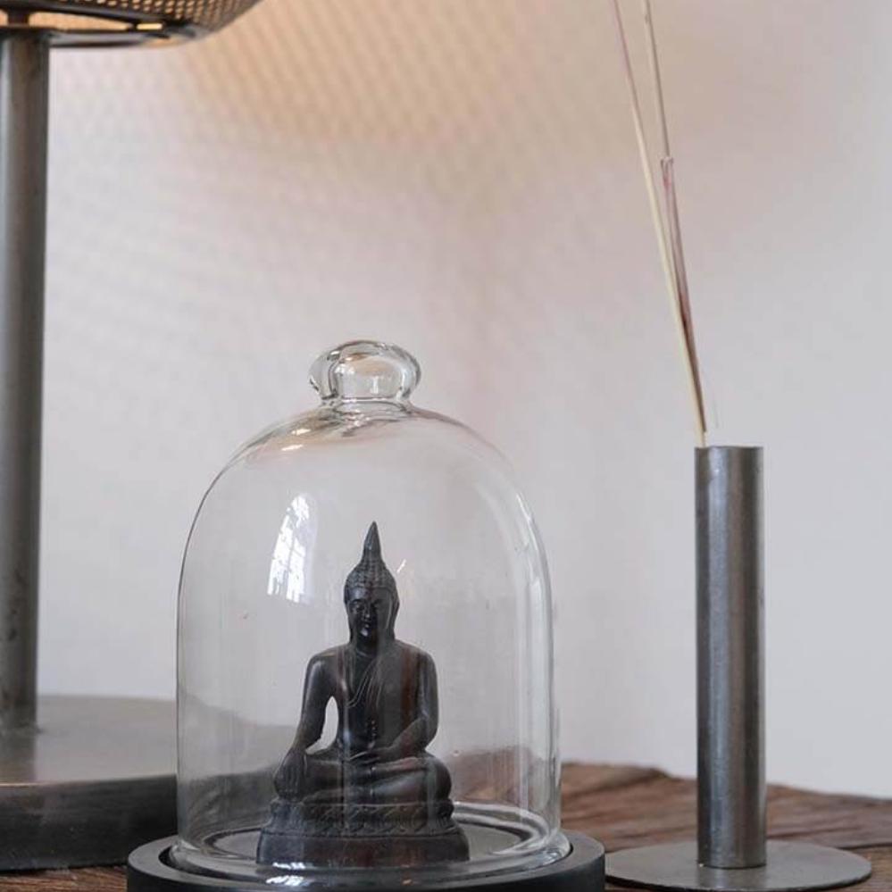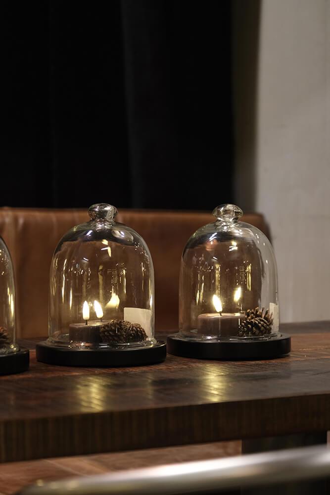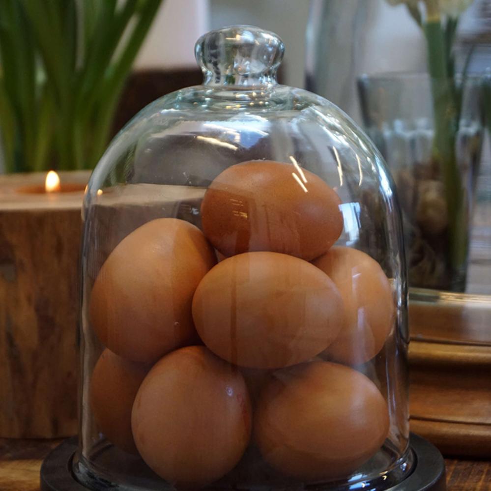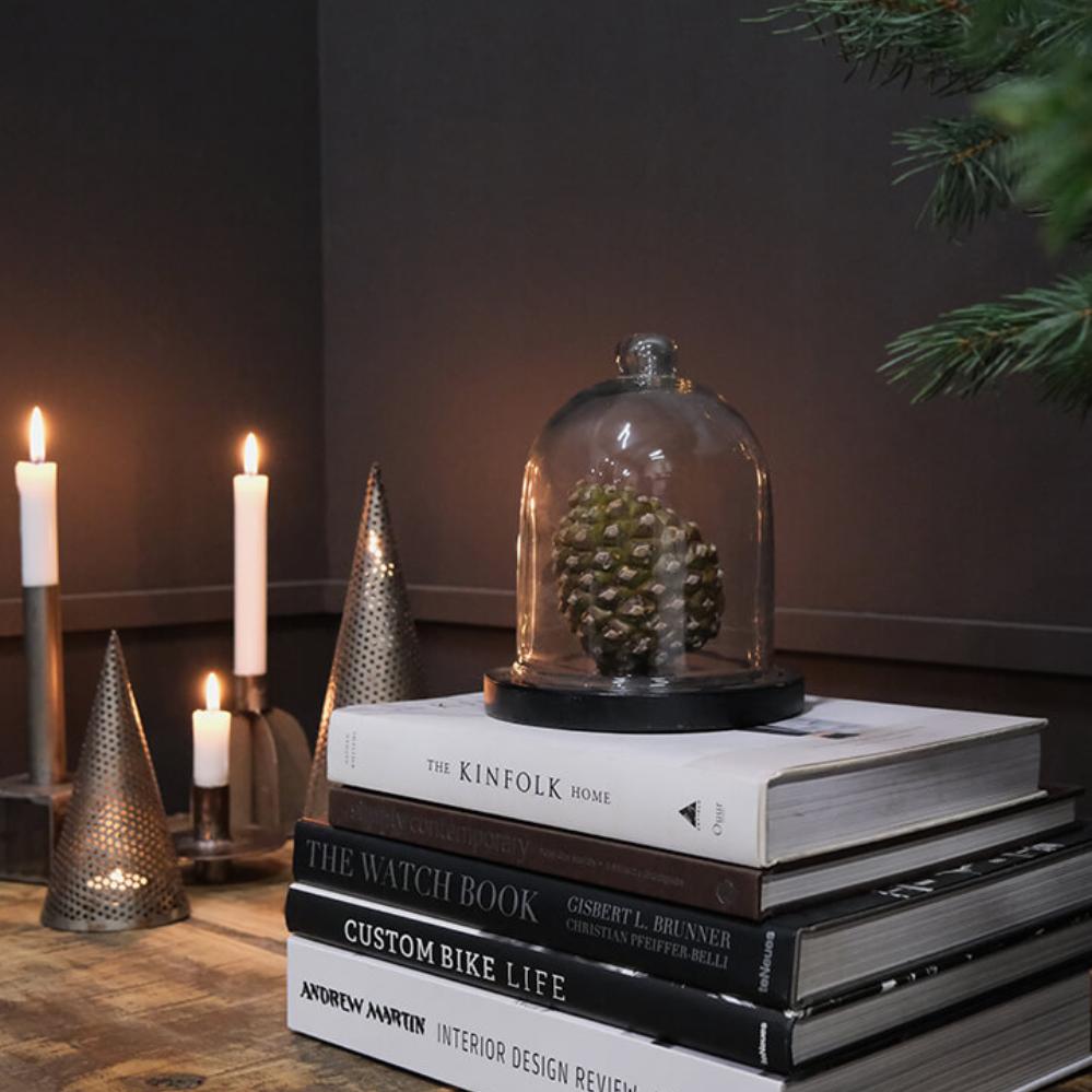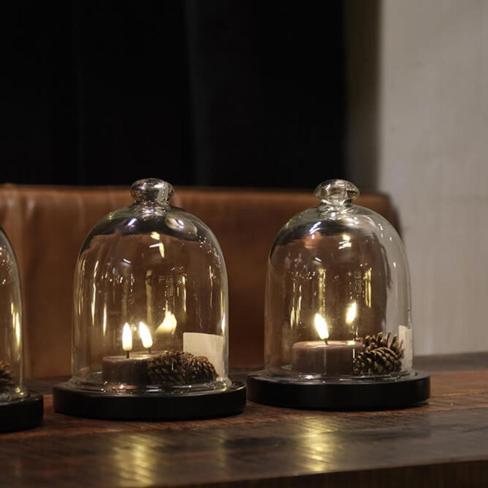 Feine und dekorative Glasglocke mit schwarz lackiertem Holzboden. Sie eignet sich perfekt, um Ihre Lieblingsstücke auf einfache und stilvolle Weise hervorzuheben. Nutzen Sie sie, um kleine Kunstwerke, Schmuck, eine Lichterkette oder andere persönliche Schätze auszustellen, die besondere Aufmerksamkeit verdienen. Die Glasglocke lässt sich auch ganz einfach je nach Jahreszeit dekorieren — zu Weihnachten mit Tannenzweigen und Kugeln oder zu Ostern mit kleinen Eiern und Frühlingsblumen. Ganz gleich, was Sie unter der Haube platzieren, sie schafft eine gemütliche und persönliche Atmosphäre in Ihrem Zuhause oder Geschäft.