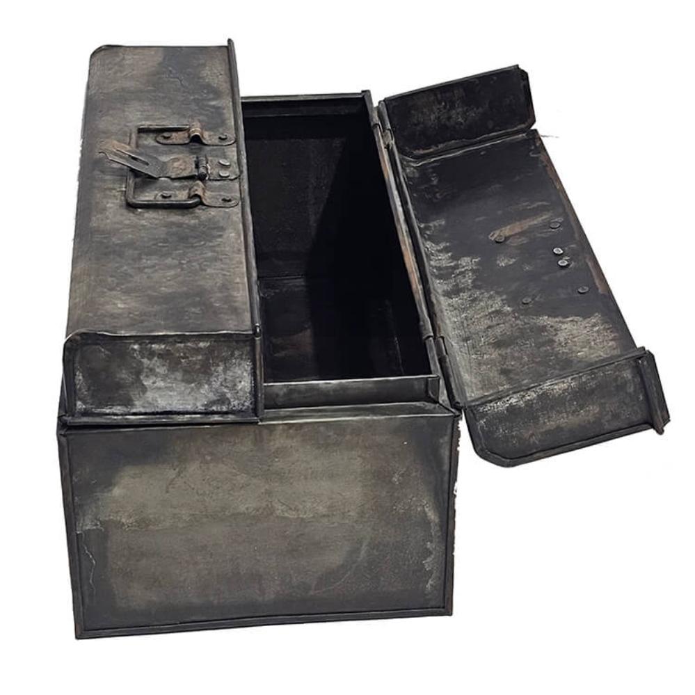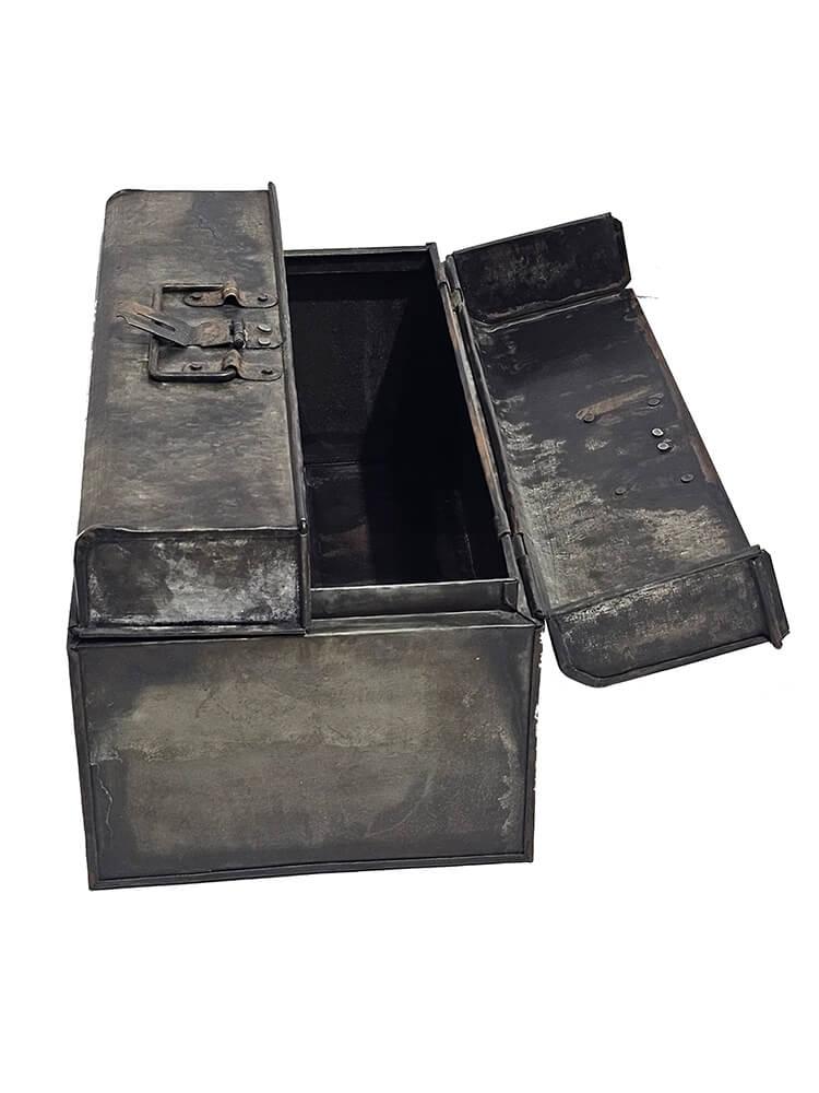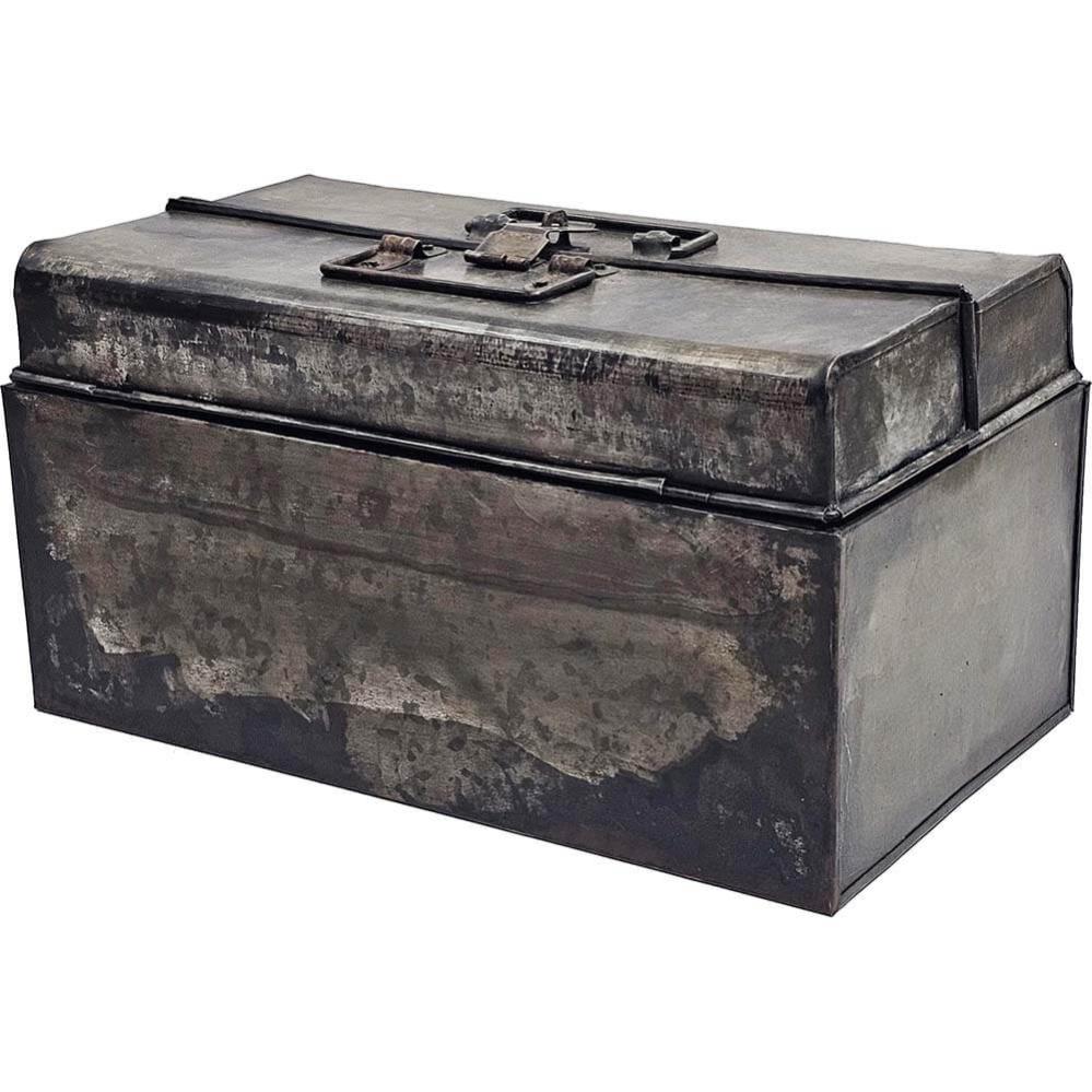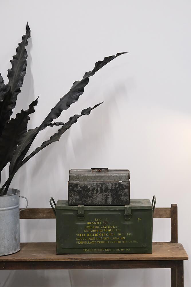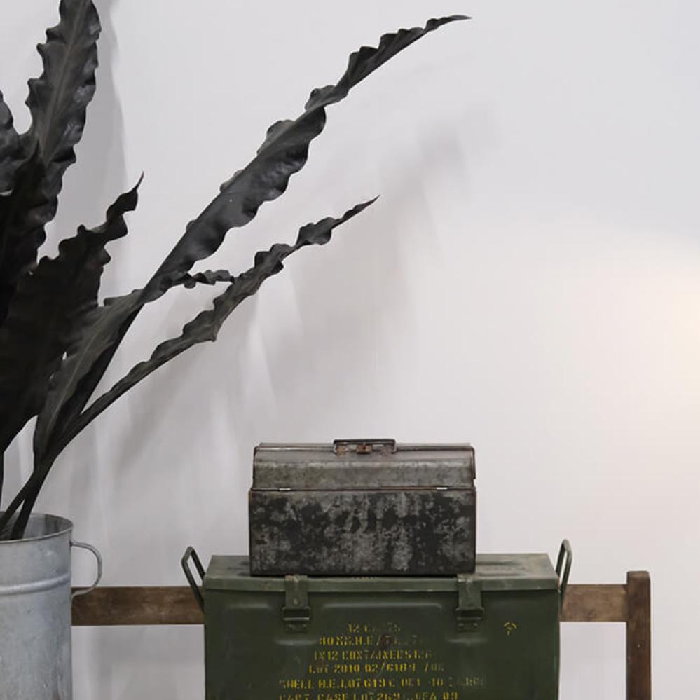 Diese rohe Metallkiste ist das perfekte Beispiel für Industriedesign mit diesem gewissen Etwas. Die robuste Konstruktion und die abgenutzte Oberfläche verleihen der Kiste einen rauen und authentischen Look. Mit ihrem markanten Verschlussmechanismus ist die Metallkiste sowohl praktisch als auch maskulin. Verwenden Sie sie als coole Aufbewahrungslösung in der Küche, im Büro oder im Geschäft, wo sie alles von Kleinigkeiten bis hin zu Werkzeugen aufnehmen kann. Sie passt auch perfekt als einzigartige Dekoration oder um einen rauen Akzent in Ihrer Einrichtung zu setzen. Die Metallkiste hat eine raue Patina, die sie zu einem Blickfang in jedem Raum macht.