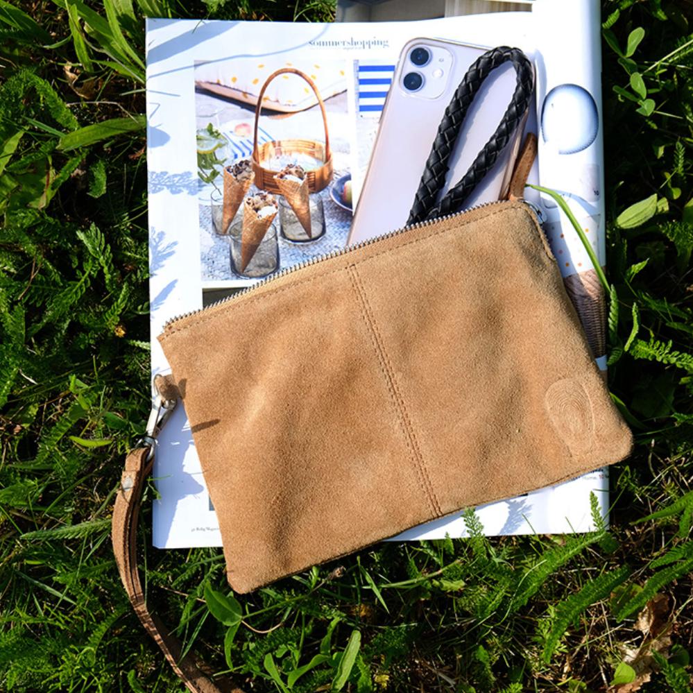 Clutch aus weichem Veloursleder, die sich sowohl für den Alltag als auch für jeden festlichen Anlass eignet. Die Clutch hat eine Innentasche mit Reißverschluss, separate Kreditkartenfächer für drei Karten und wird mit einem Reißverschluss geschlossen. Der mitgelieferte Handtrageriemen ist abnehmbar. Verwenden Sie die Tasche als kleine Zusatztasche im Alltag, als Geldbörse oder als festliches Accessoire. Die Clutch ist in zwei Farben in Veloursleder und zwei Lederfarben erhältlich.