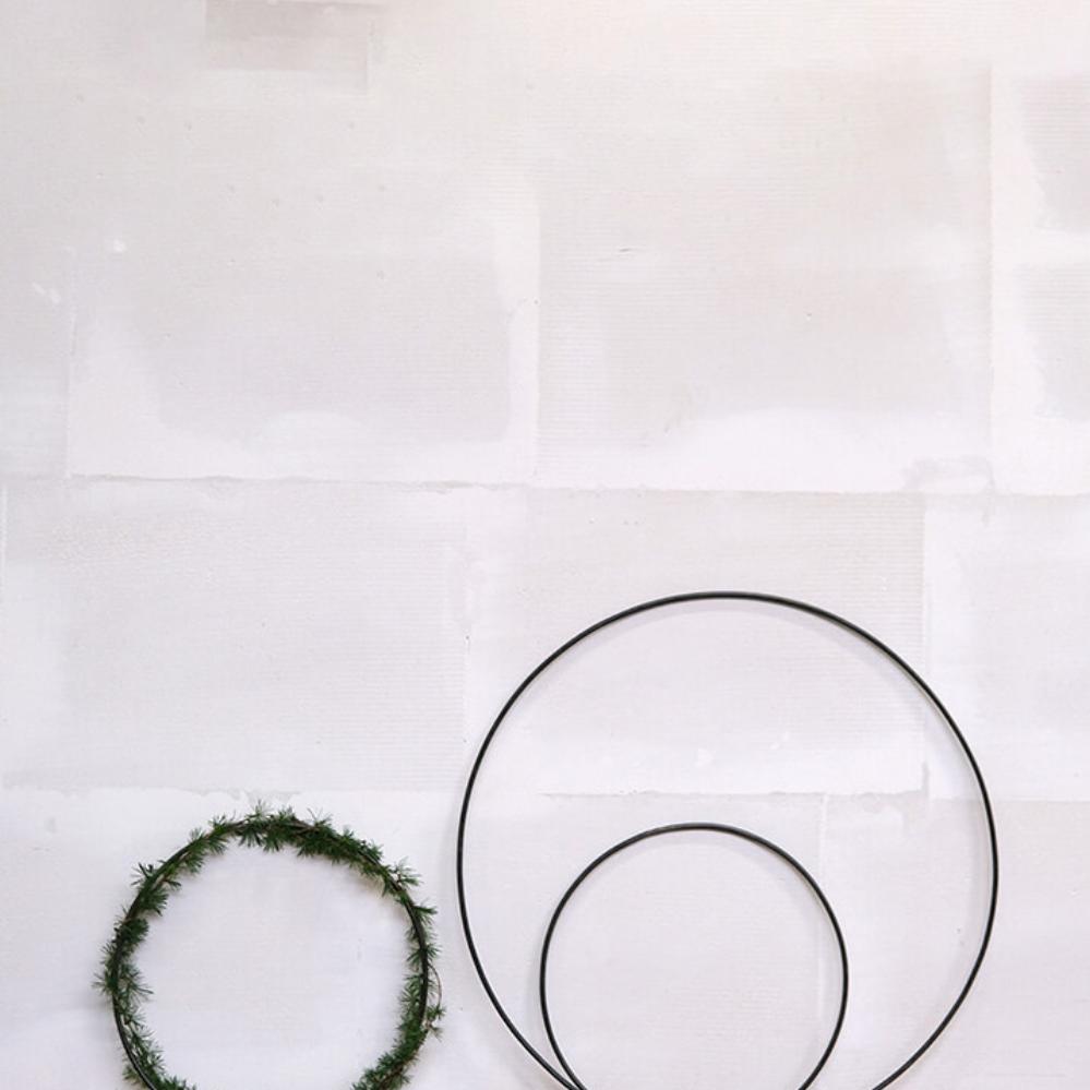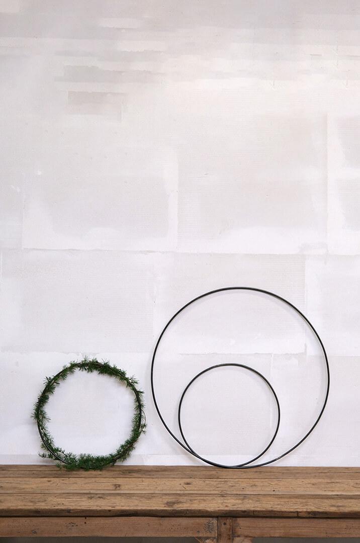 Dieser Eisenring mit einem Durchmesser von 70 cm kann sowohl zum Abhängen von der Decke als auch zum Aufhängen an der Wand verwendet werden. Verwenden Sie lange Lederbänder, Juteschnüre, Angelschnüre oder Ihr Lieblingsband, wenn der Ring frei im Raum hängen soll. Sie können den Ring auf abenteuerliche Weise verzieren. Wenn Sie die Feiertage hervorheben möchten, können Sie den Ring zu Weihnachten mit Fichte, Stechpalme, Eukalyptus, Weihnachtsschmuck, Kerzenhaltern usw. binden. Sie können ihn auch als Kalender mit 24 kleinen Paketen verwenden, die vom Ring herabhängen. Zu Ostern und anderen Feiertagen können Sie die Pflanzen und Zweige nutzen, die die Jahreszeit bietet. Der Ring ist auch dekorativ zum Aufhängen an der Wand verziert mit z.B. Trockenblumen. Sie können den Eisenring auch als eine Art Wandrahmen verwenden und im Inneren des Rings Bilder und kleine liebevolle Karten an die Wand kleben. Eine unterhaltsame Alternative zum Schwarzen Brett. Ein einfacher Ring mit Optionen, soweit die Vorstellungskraft reicht. Der Ring ist auch in einer kleineren Größe von 40 cm erhältlich.
