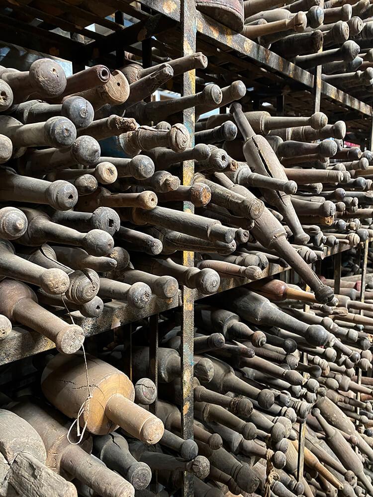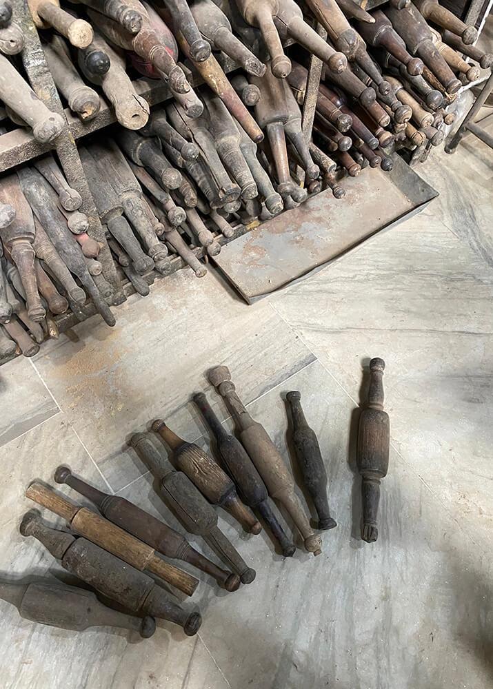 Diese alten Chapati-Rollen sind einzigartige, handgefertigte Werkzeuge, die zur Herstellung von traditionellen indischen Chapatis, den indischen Fladenbroten, verwendet wurden. Jede Rolle trägt deutliche Spuren jahrelanger Nutzung, mit schönen Holzmaserungen und Abnutzungen, die ihren Charme noch verstärken. Ihre natürliche Patina und unterschiedlichen Formen verleihen ihnen einen rauen, aber authentischen Ausdruck. Diese Chapati-Rollen sind perfekte Dekorationselemente in einer Küche, einem Restaurant oder Café, wo sie eine rustikale und kulturelle Atmosphäre schaffen. Ob an der Wand hängend oder als Teil einer Dekoration präsentiert, sie erzeugen eine nostalgische Stimmung, die Handwerkskunst und Traditionen ehrt.