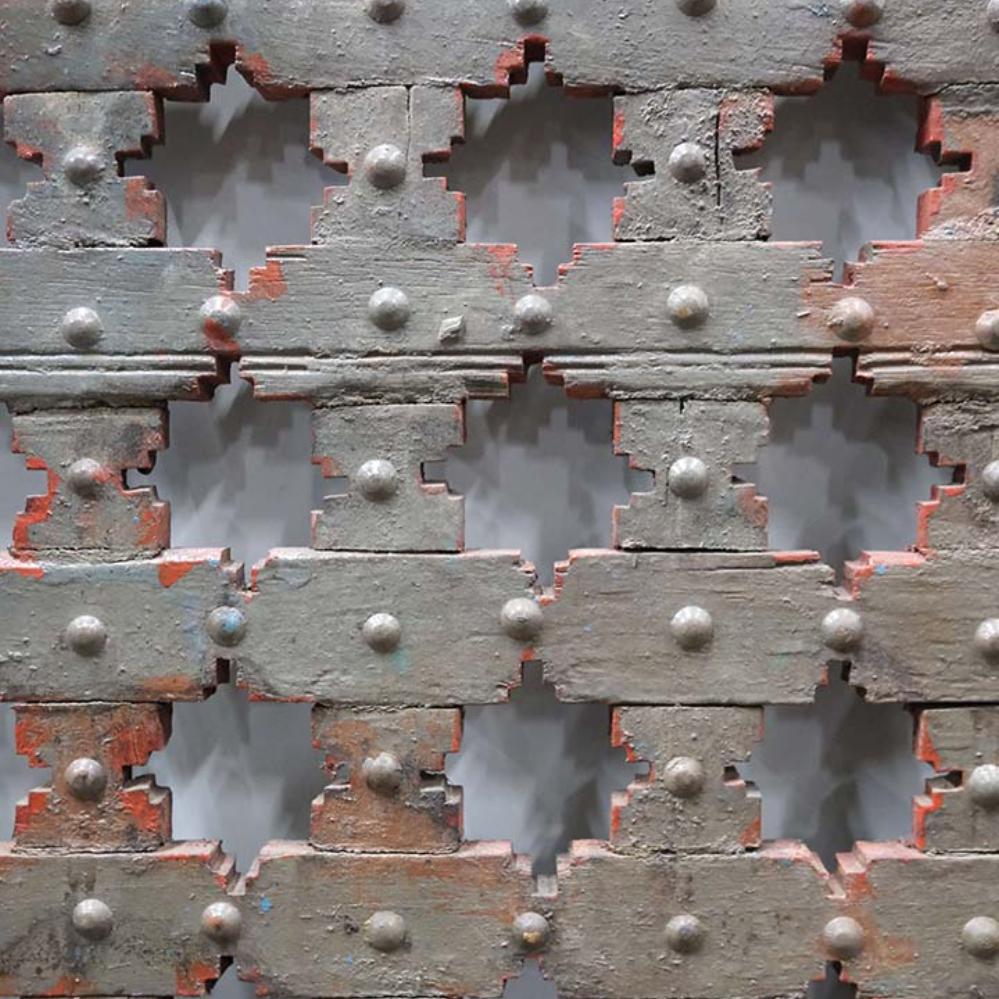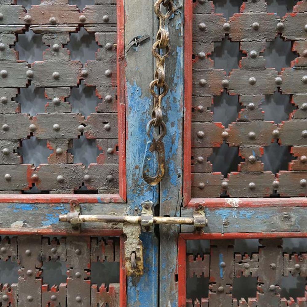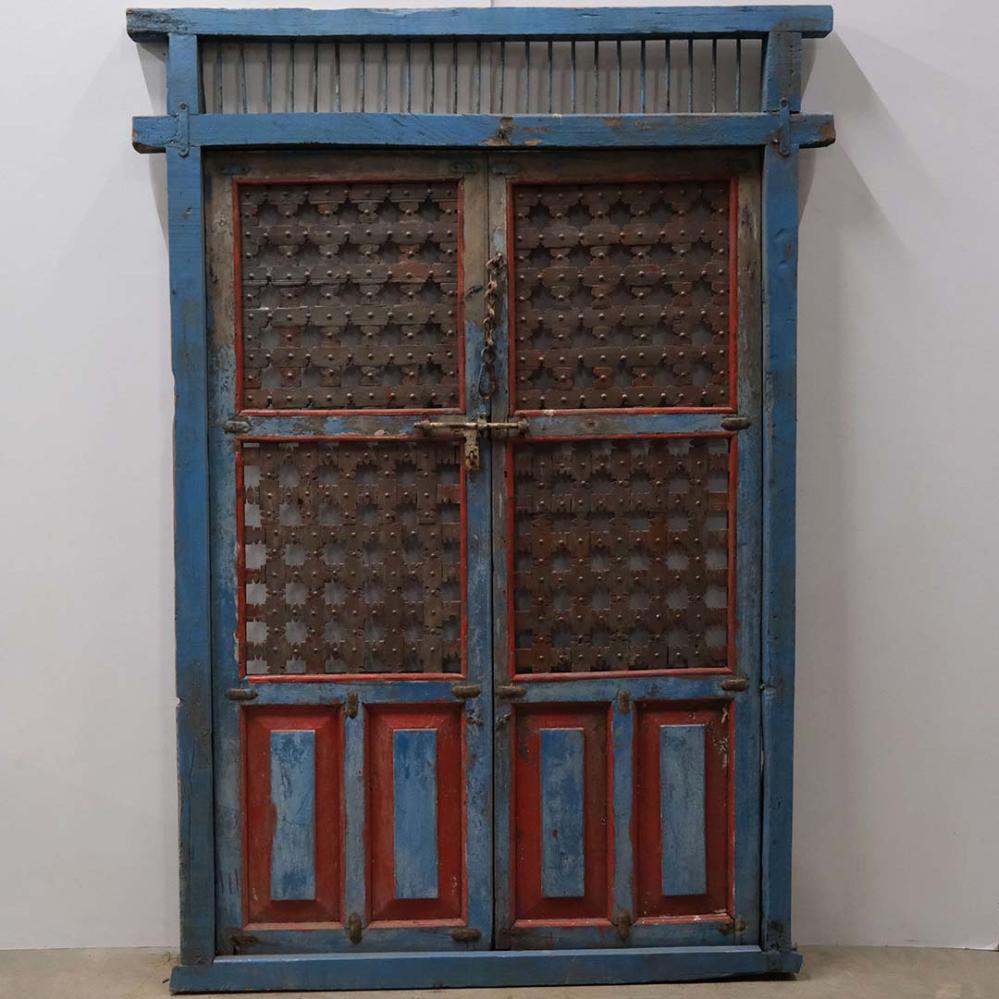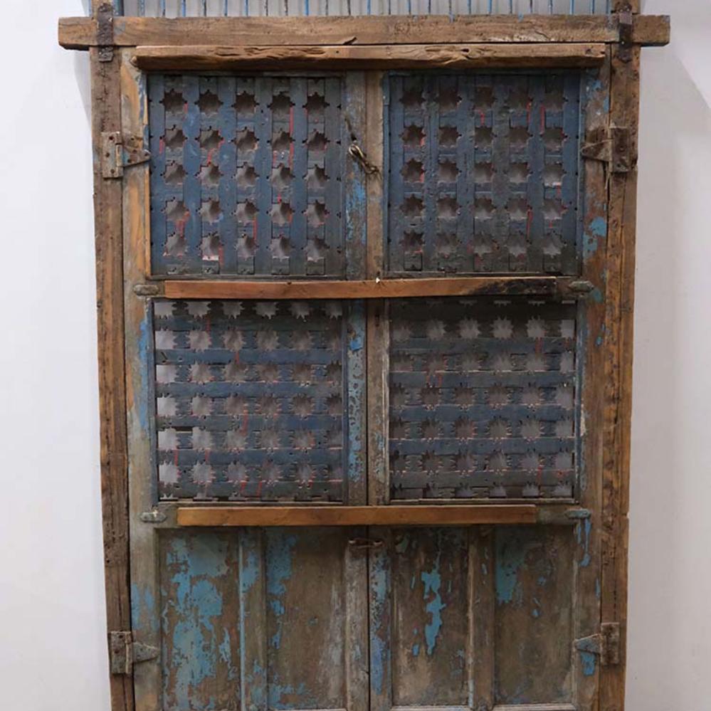 Alte Holzpforte mit Eisengitter - blau/Mischfarben mit Patina. Diese Pforte ist voller Geschichte. Ein Blickfang in jedem Geschäft oder jeder Café und Restaurant.