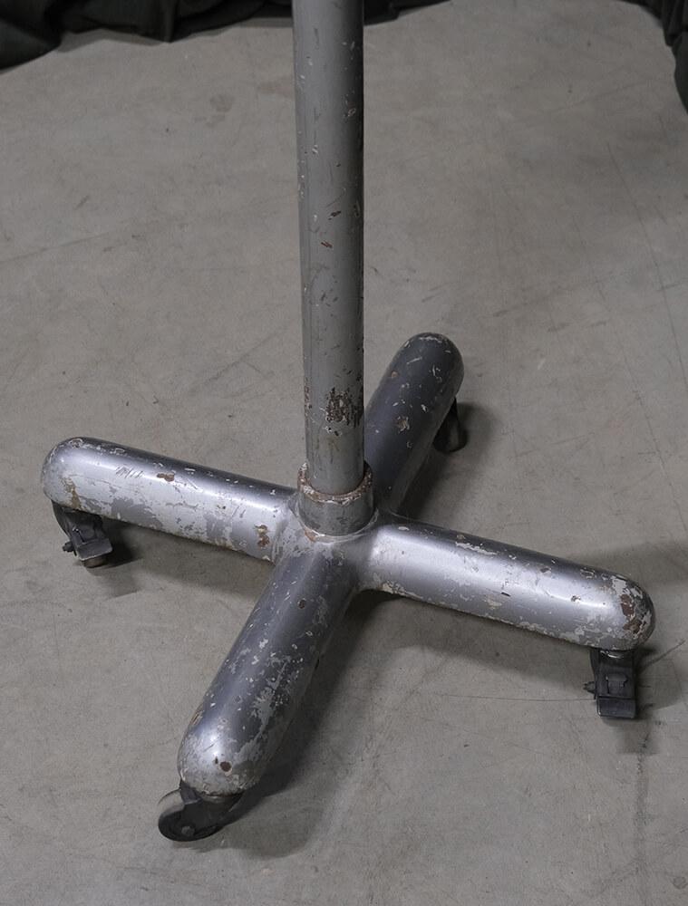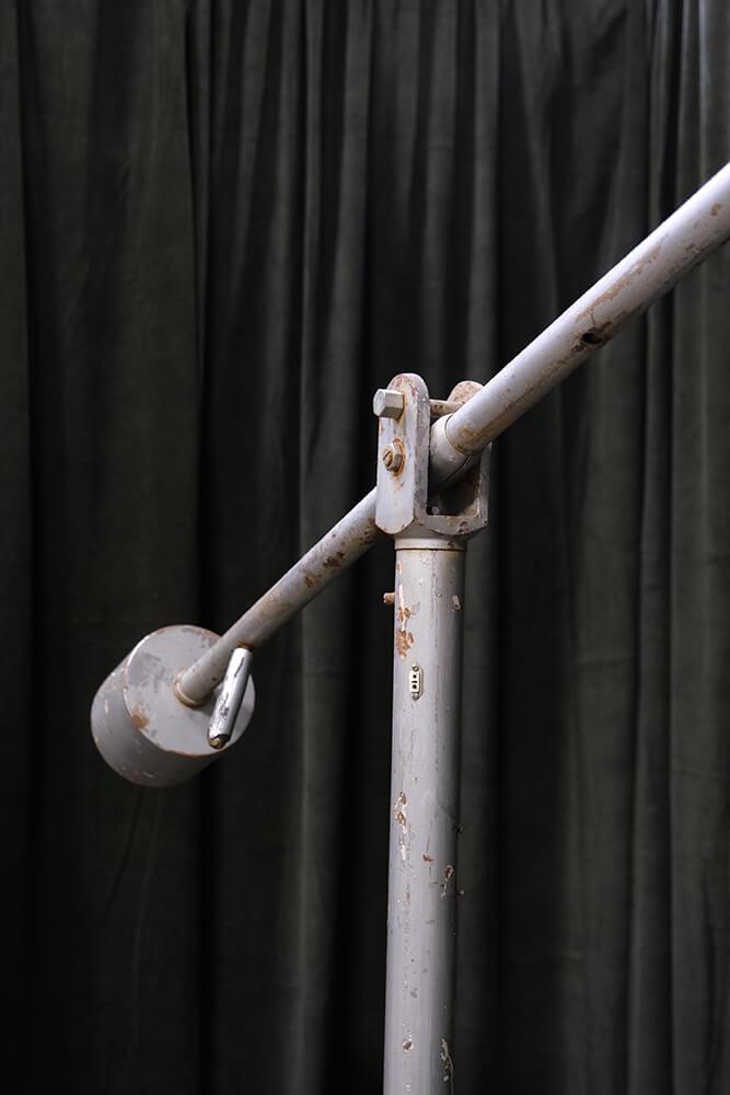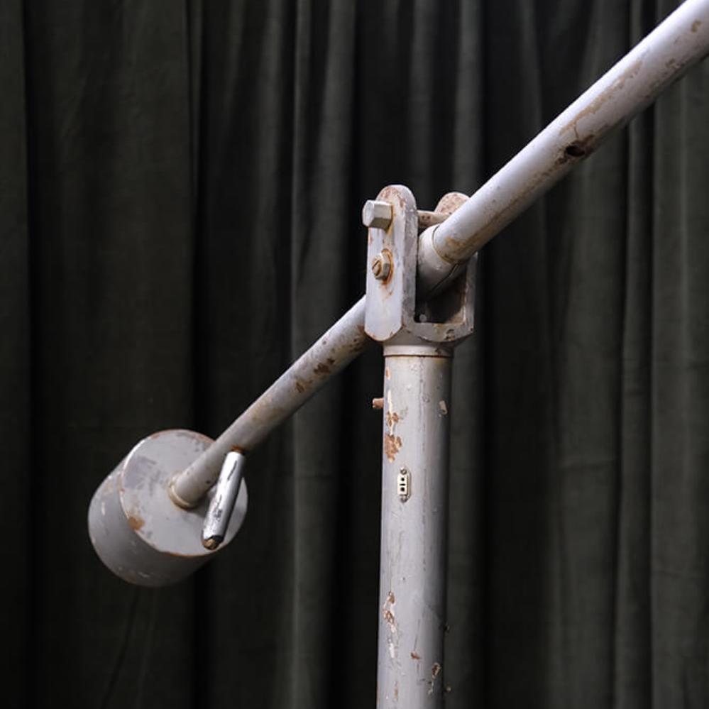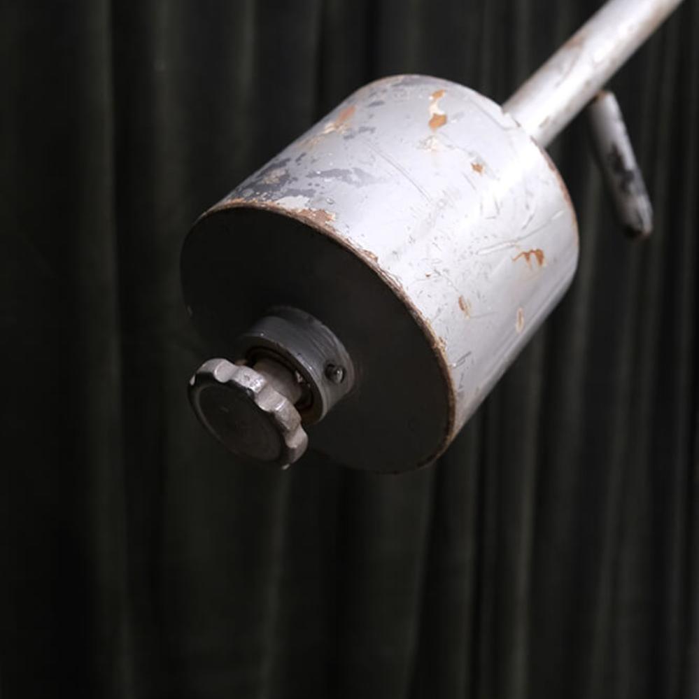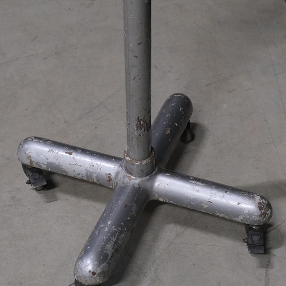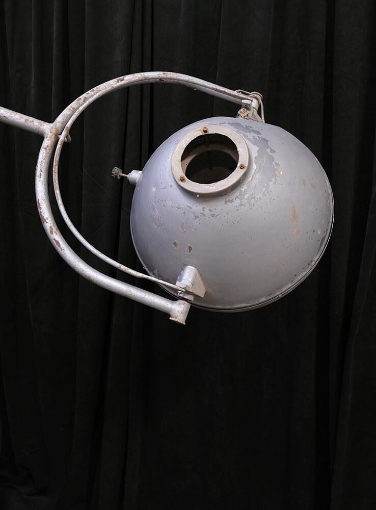 Bringen Sie ein Stück Geschichte in Ihre Einrichtung mit dieser alten Operationslampe, einem perfekten Beispiel für industrielles Vintage-Design. Die Lampe verfügt über einen stabilen Fuß mit Rollen, der das Verschieben erleichtert. Ohne Verkabelung ist die Lampe für dekorative Zwecke gedacht und macht sich hervorragend als Blickfang in einer Ecke Ihres Zuhauses oder Geschäfts. Die robuste Konstruktion und die Patina unterstreichen ihren zeitlosen Charme.