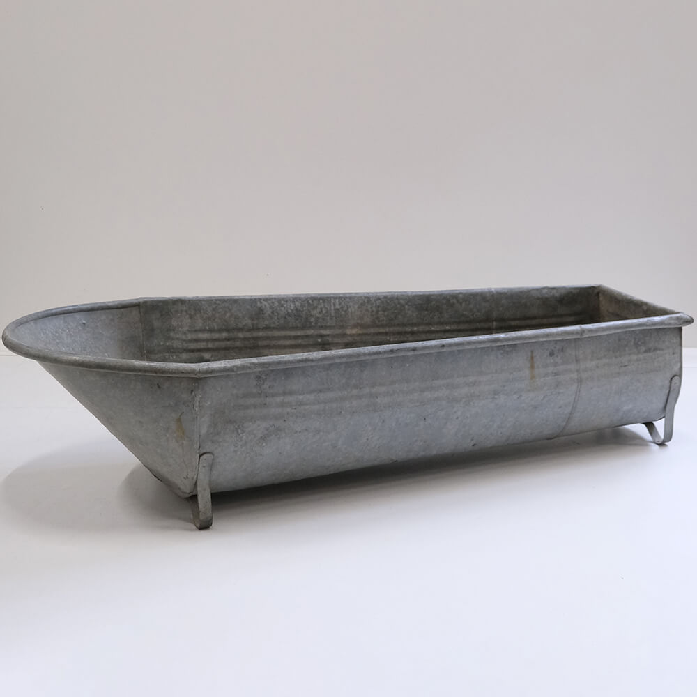 Ein einzigartiger Fund mit viel Geschichte und Charme. Diese alte Zinkbadewanne ist ein seltenes Stück, das Patina und authentisches Handwerk ausstrahlt. Mit ihrem schlichten, funktionalen Design und der schönen grauen Oberfläche ist sie ein dekoratives Element, das sowohl drinnen als auch draußen sofort ins Auge fällt. Die Badewanne steht auf kleinen Füßen, die ihr einen leichten Abstand zum Boden geben, und die ovale Form verleiht ihr einen klassischen Ausdruck. Sie ist wasserdicht und kann daher auch praktisch genutzt werden. Zum Beispiel als großer Pflanzkübel im Garten, für Eis und Getränke bei Sommerfesten oder als dekoratives Display in Geschäft oder Café. Hier erhalten Sie ein Stück Zinkgeschichte, bei dem die Gebrauchsspuren Teil des Charmes sind und von einem langen Leben zeugen. Und bemerken Sie bitte, dass es nur ein Exemplar davon gibt.