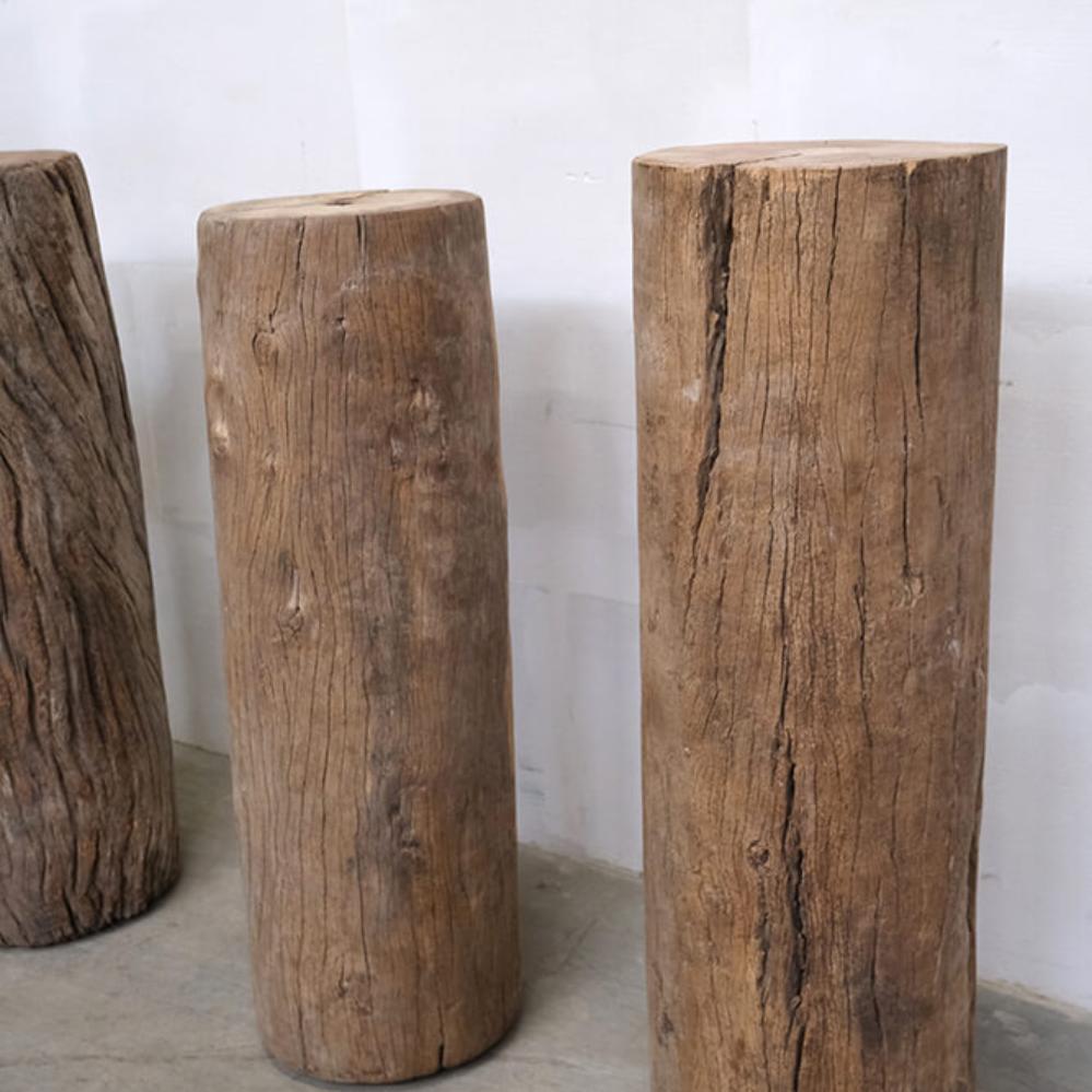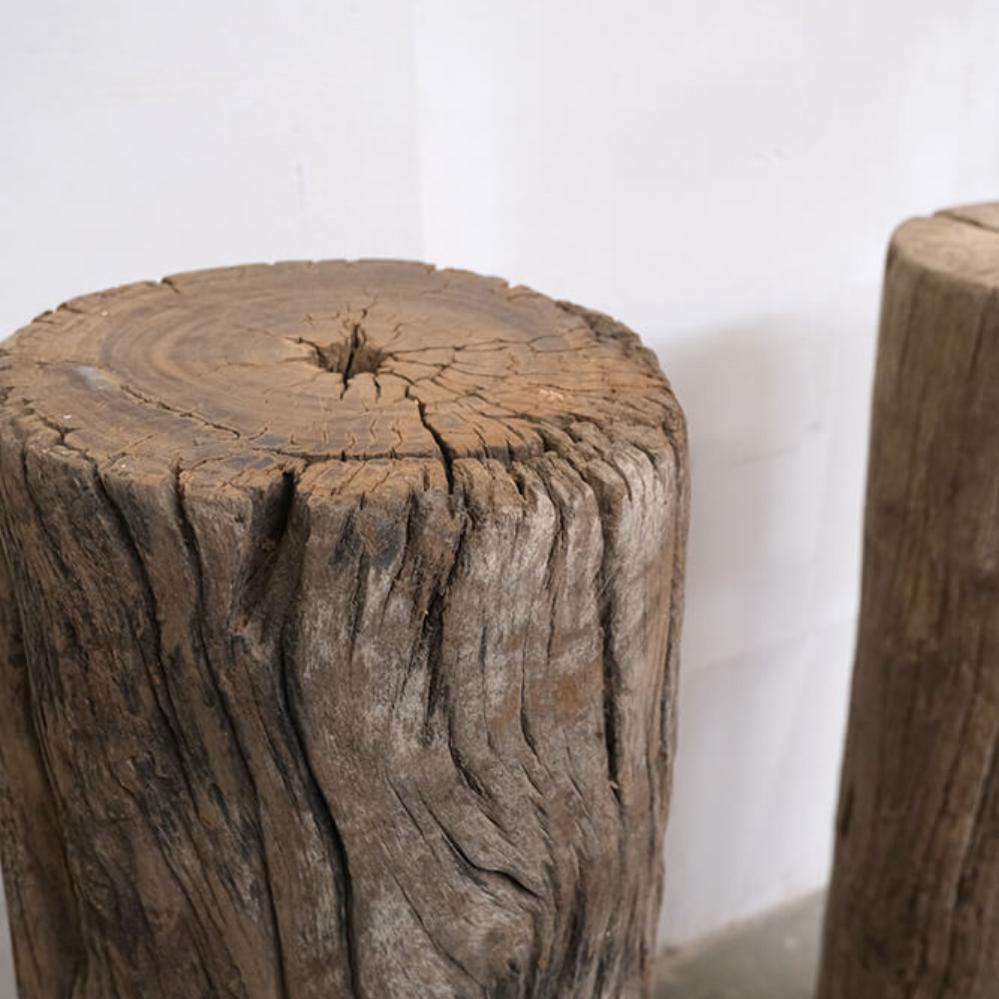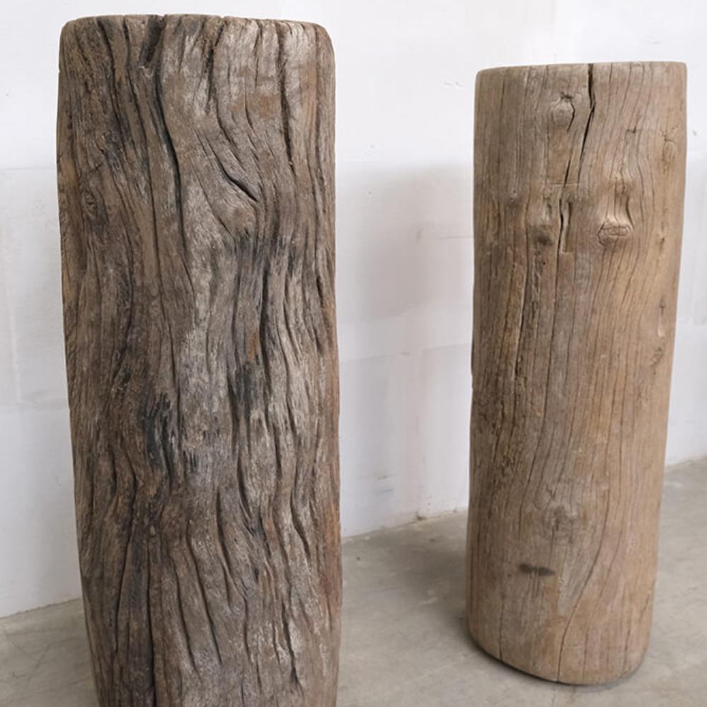 Diese massiven Holzpodeste haben nicht nur standgehalten, sie haben Haltung bewiesen. Ursprünglich in der indischen Industrie im Einsatz, starten sie nun in ein neues Kapitel mit einer ganz eigenen Präsenz. Jedes Podest trägt deutliche Spuren der Zeit, des Gebrauchs und echten Handwerks. Mit Rissen, Abnutzung, Maserung und Astlöchern, die jedes Stück einzigartig machen. Verwenden Sie sie als Sockel für Skulpturen, Pflanzen, kleine Kunstwerke, oder lassen Sie sie als skulpturale Objekte für sich sprechen. Sie verleihen modernen und industriellen Einrichtungen sofort eine raue, rustikale Atmosphäre und machen sich ebenso gut im Eingangsbereich, Wohnzimmer oder in der Galerie. Diese Podeste bringen echte Charakterstärke in Holzform. Kein Schnickschnack. Einfach massiv, ehrlich und authentisch.