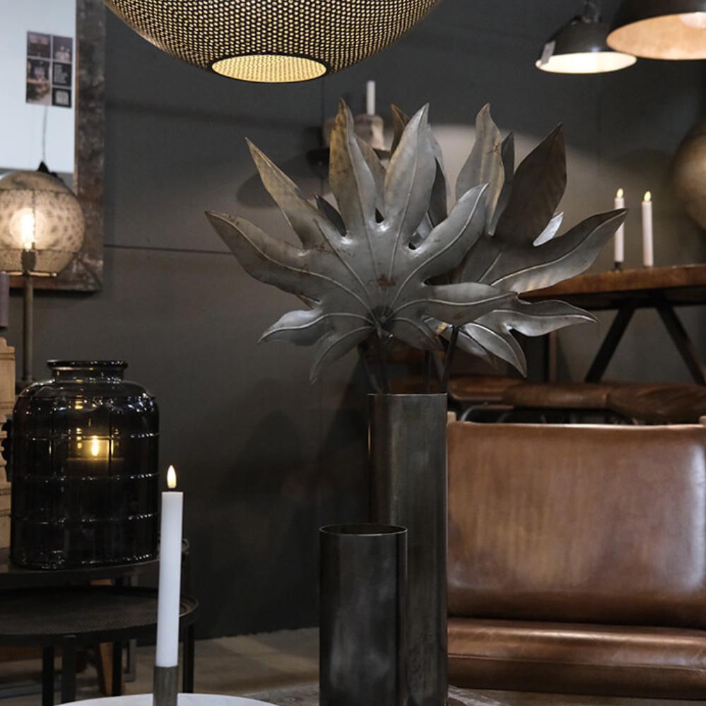 Dekoratives Araliablatt aus Metall, bei dem das rohe Material auf die feinen organischen Formen des Blattes trifft. Die markanten Ausschnitte und weichen Linien verleihen dem Blatt einen künstlerischen, fast skulpturalen Ausdruck, der es zu einer auffälligen Dekoration in jeder Einrichtung macht. Stellen Sie das Blatt in eine hohe Vase oder ein Gefäß, wo es als eigenständiges Statement wirkt, oder kombinieren Sie es mit anderen Metallblättern und Trockenblumen, um ein spannendes Stillleben zu schaffen. Eine schöne Dekoration, die sowohl Charakter als auch Raffinesse verleiht – perfekt für alles vom Zuhause bis zur Café-Einrichtung.