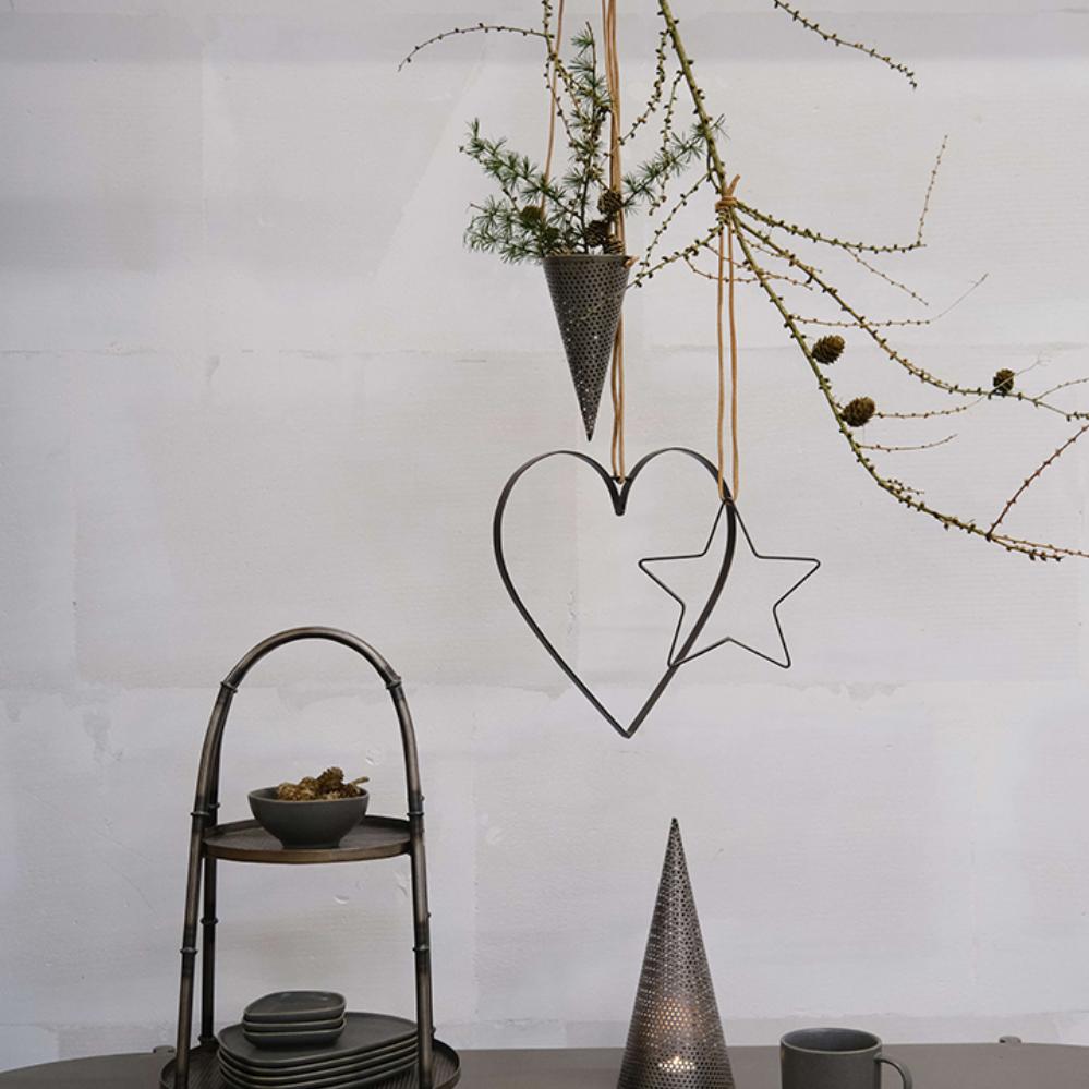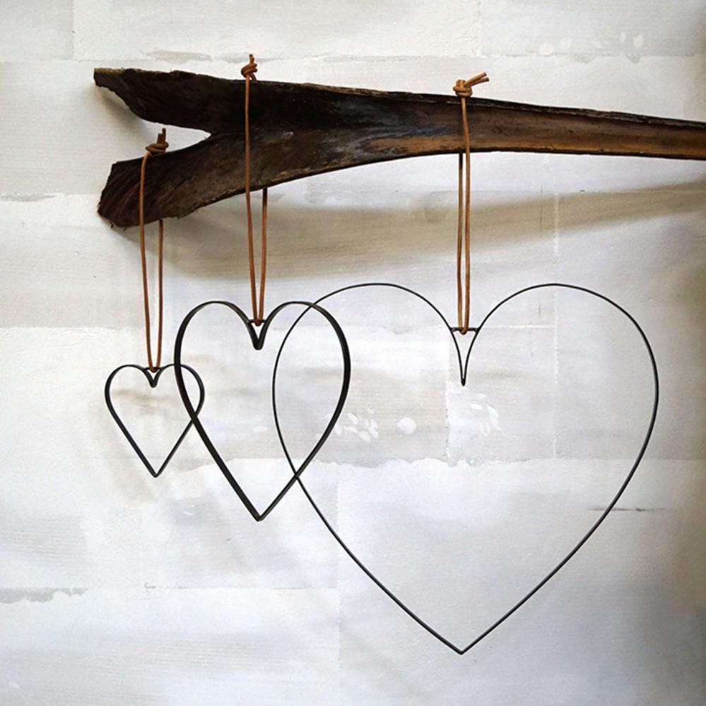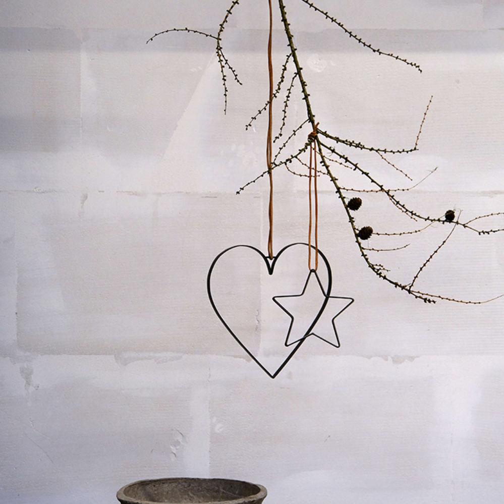 Ein schlichtes und stilvolles Herz aus Eisen mit einer schönen Lederschnur. Die Kombination aus rohem Metall und weichem, natürlichem Leder verleiht ihm einen zeitlosen Ausdruck, der in viele verschiedene Einrichtungsstile passt. Hängen Sie es ins Fenster, an die Wand oder nutzen Sie es als dekoratives Detail an einem Zweig. Das Herz kann das ganze Jahr über verwendet werden, sowohl als gemütliche Dekoration Zuhause und als persönliche Geschenkidee, zum Beispiel zu Valentinstag oder Weihnachten.