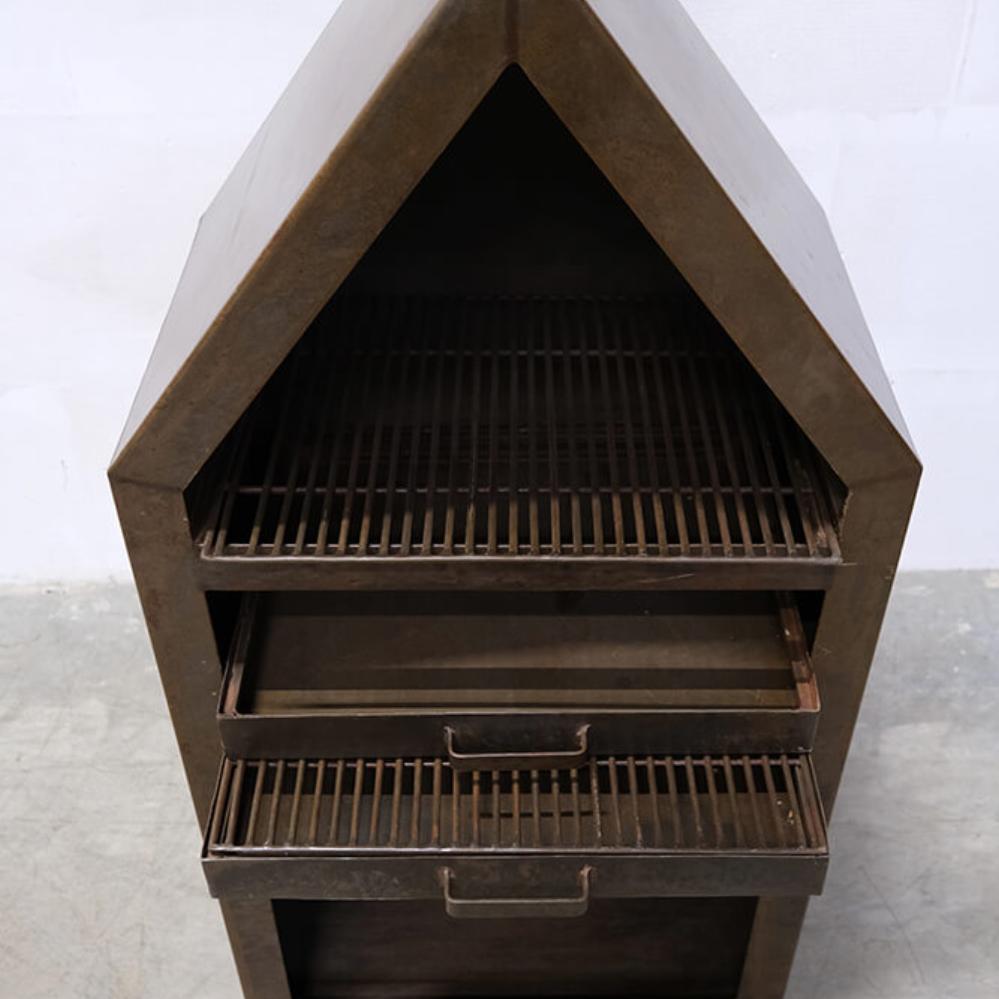 Dieser Eisenofen für den Außenbereich ist die ultimative Kombination aus Funktionalität und rustikalem Stil. Mit seiner hausähnlichen Form und der rustikalen Oberfläche bringt er sowohl Wärme als auch Charakter auf jede Terrasse oder in jeden Garten. Der Eisenofen kann sowohl als Grill als auch als Kamin verwendet werden und ist mit einem Rost, zwei Tabletts und einem integrierten Brennholzhalter ausgestattet. Platzieren Sie ihn in der Mitte Ihres Outdoor-Lounge-Bereichs vom Restaurants, damit Ihre Gäste sich um die Wärme versammeln und entspannen können. Oder nutzen Sie ihn zu Hause, um eine raue, gemütliche Atmosphäre auf der Terrasse zu schaffen – perfekt zum Grillen eines Steaks oder zum Anhalten des Feuers. Mit diesem Ofen erhalten Sie sowohl Funktionalität als auch einen Gartenkamin mit Grill, der auffällt!