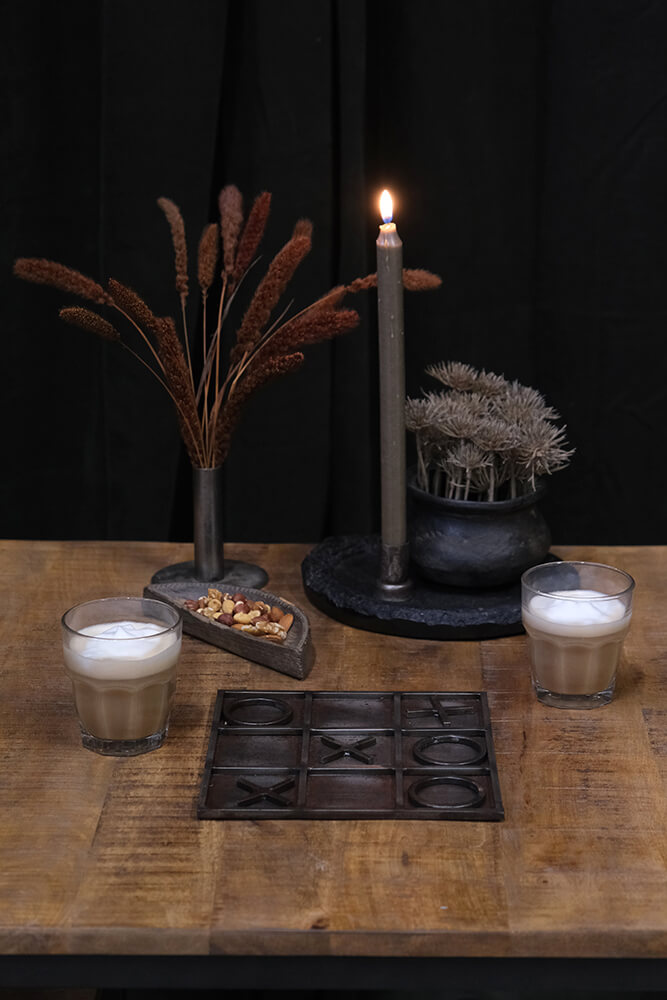 Hier ist eine außergewöhnliche Version des klassischen Spiels „Drei gewinnt“ aus pulverbeschichtetem Eisen, das sowohl Kindern als auch Erwachsenen Spaß macht. Dies ist das "Kreuze und Null" Spiel, das Sie ausgestellt haben möchten, da es sowohl Spaß macht als auch dekorativ ist, aber auch Spiel und Hygge hervorruft.