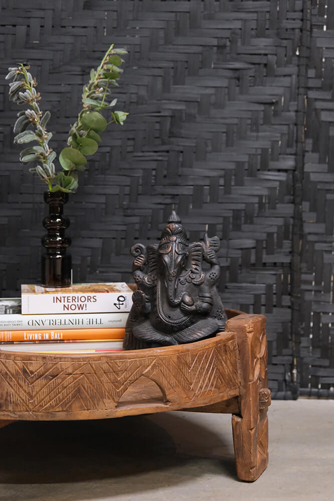 Fein detaillierte und ausdrucksstarke Figur von Ganesha. Er ist bekannt als der Gott, der Hindernisse aufgrund seiner einzigartigen Fähigkeit beseitigt und den Weg für inneren Frieden schafft. Ganesha ist der Gott der Weisheit, Intelligenz, Bildung, des Glücks und des Schicksals. Ein sehr beliebter Gott im Hinduismus.