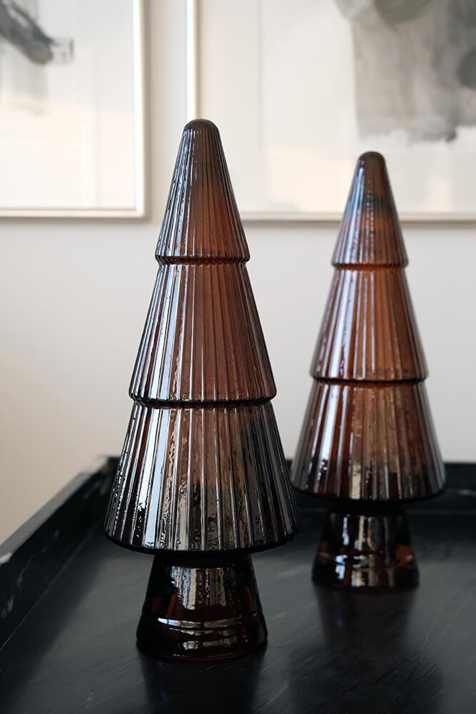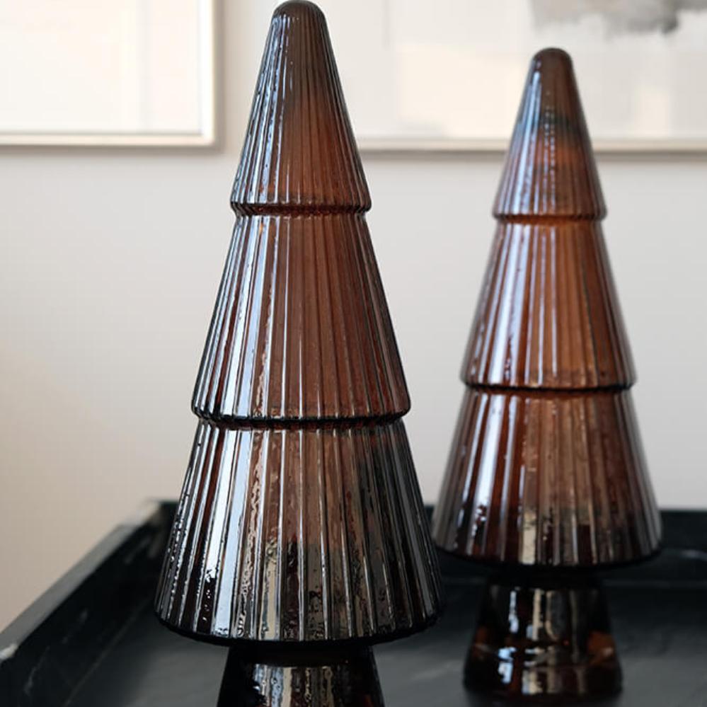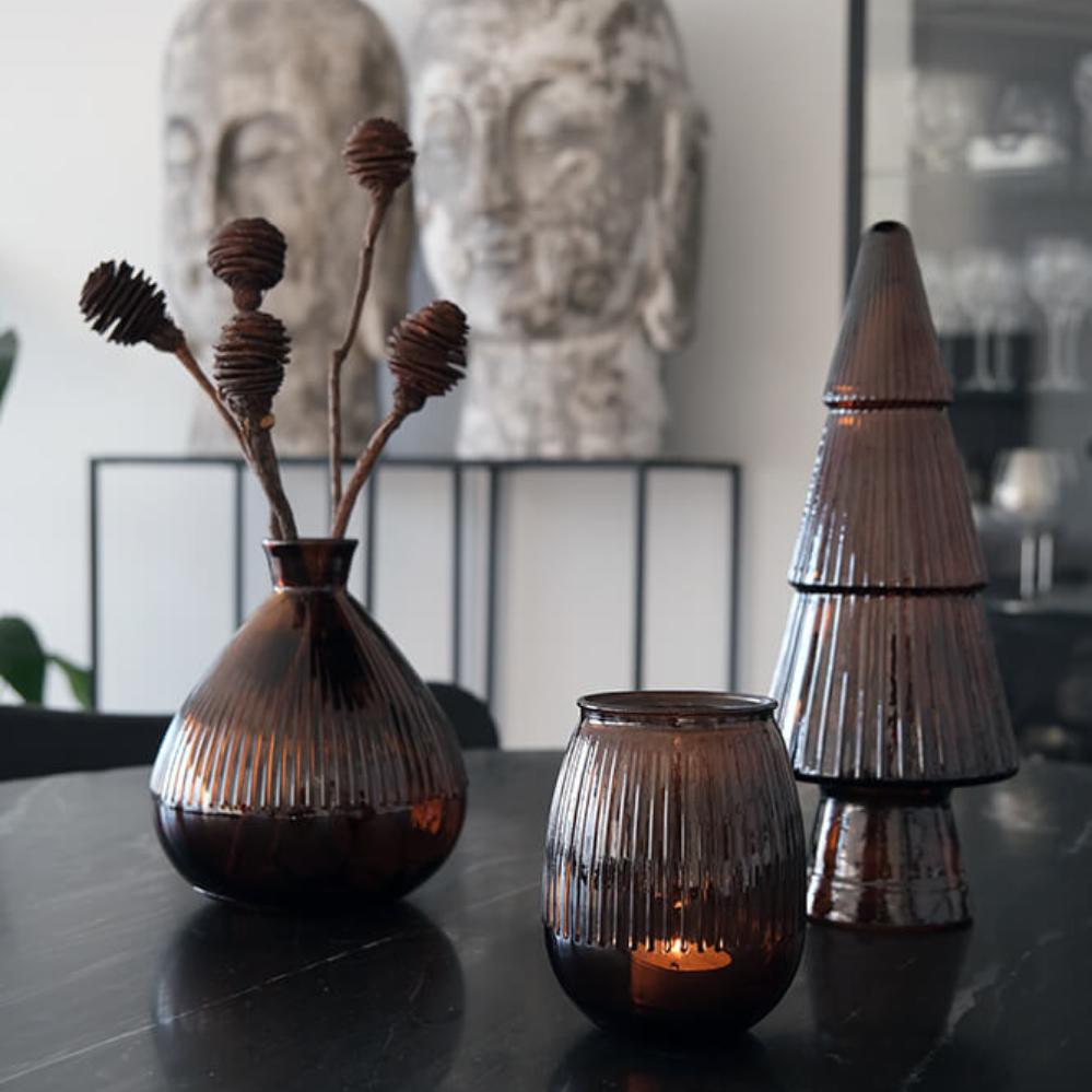 Die tiefbraune Farbe verleiht diesem Weihnachtsbaum aus recyceltem Glas ein warmes, erdiges Aussehen. Die geriffelte Oberfläche bricht das Licht auf schöne Weise und schafft eine gemütliche Stimmung im Raum. Kombinieren Sie ihn mit anderen dunklen Tönen oder Naturmaterialien und gestalten Sie eine ruhige, persönliche Weihnachtsdekoration, die leise spricht, aber einen Eindruck hinterlässt.