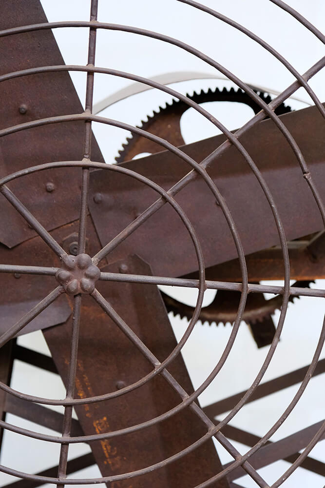 Rustikaler, alter Bauernventilator mit Kurbel aus verrostetem Eisen mit viel Charme und Patina. Früher wurde er in der indischen Landwirtschaft zum Trocknen von Getreide verwendet und kann jetzt als wirklich lustiger und einzigartiger Hingucker in Ihrer Einrichtung verwendet werden. Stellen Sie ihn auf den Boden oder hängen Sie ihn an einen Draht, um einen echten WOW-Effekt zu erzielen.