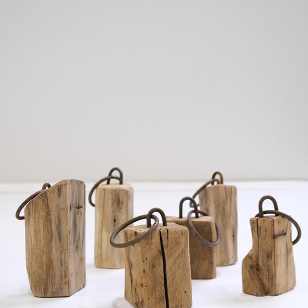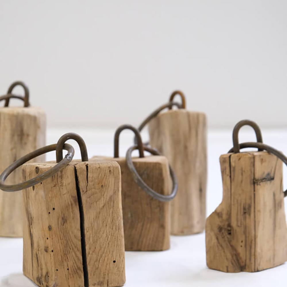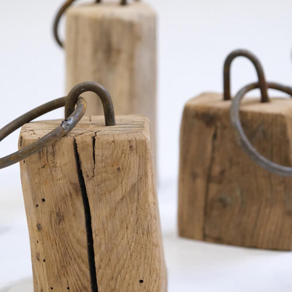 Diese dekorativen Holzklötze sind alles andere als eintönig, und genau das macht ihren Charme aus. Jeder Klotz ist aus Altholz gefertigt und trägt seine eigenen Spuren von Zeit, Abnutzung und Geschichte. Sie variieren stark in der Größe und Form, was in der Zusammenstellung einen lebendigen und rustikalen Ausdruck schafft. Die kleinen Eisenbeschläge und Ringe unterstreichen den rohen Charakter der Klötze und machen sie zu idealen Details in einer Einrichtung, in der Persönlichkeit und Charakter im Vordergrund stehen. Nutzen Sie sie als dekorative Elemente im Regal, auf dem Boden oder in einem Schaukasten, wo sie sowohl als Blickfang als auch als Gesprächsanlass dienen können. Kein Klotz gleicht dem anderen, wodurch jedes Stück ein Unikat ist, das Wärme und Authentizität in die Einrichtung bringt.