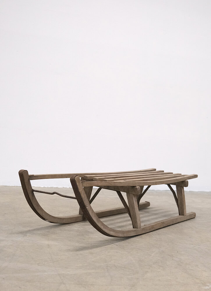 Dieser wunderschöne alte Holzschlitten strahlt Nostalgie und Handwerkskunst aus. Er hat einen echten Vintage-Look mit geschwungenen Kufen und einer Sitzfläche aus stabilen Holzlatten, die traditionelles Handwerk und schlichte Funktionalität widerspiegeln. Die natürliche Patina und die feinen Gebrauchsspuren erzählen ihre eigene Geschichte und verleihen dem Schlitten einen authentischen Charakter. Verwenden Sie ihn als charmantes Dekorationselement in Ihrer Einrichtung – zum Beispiel im Eingangsbereich, unter dem Weihnachtsbaum, als gemütlichen Blickfang in einem winterlichen Schaufenster oder hängend an der Decke einer Bar. Bitte beachten Sie: Der Schlitten ist nur zu Dekorationszwecken gedacht und nicht zum Fahren oder für den Gebrauch im Schnee geeignet.