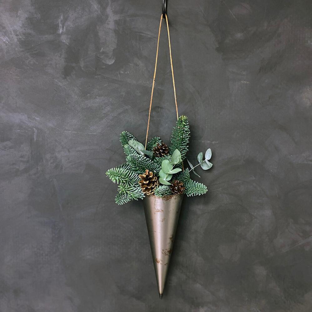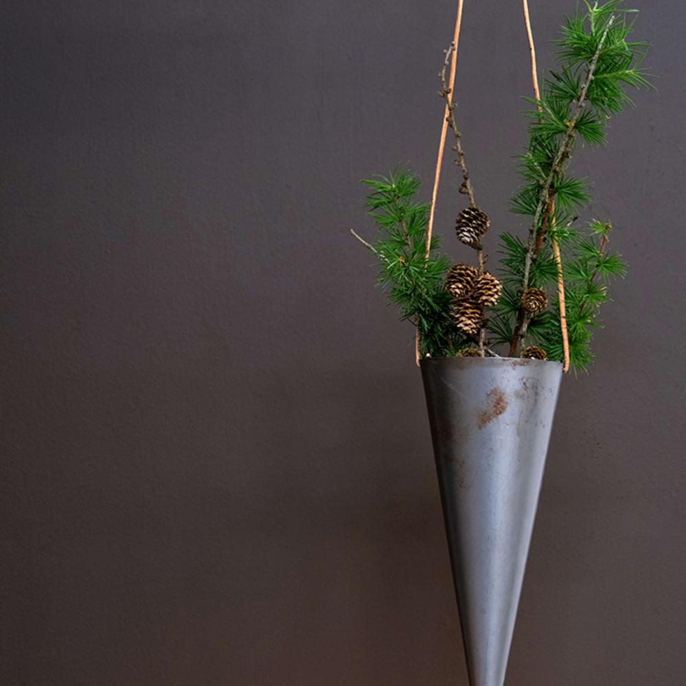 Suchen Sie Inspiration für Weihnachtsdekorationen? Dieser rustikale Eisenkegel mit Klarlack verleiht Ihrem Schaufenster oder Ihrem Restaurant oder Haus eine gewisse Coolness. Der Kegel ist an sich schon eine schöne Weihnachtsdekoration, aber Sie können auch einen grünen Zweig mit Weihnachtdeko hinzufügen, oder den Kegel als eine hängende Dekoration verwenden. Zur Vervollständigung des Kegels hat er eine 40 cm lange Lederkordel.