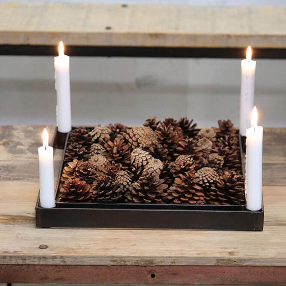 Quadratischer Adventskerzenhalter für 4 Kerzen. Der Adventskerzenhalter von Trademark Living ist aus Eisen gefertigt und strahlt einen industriellen und rohen Look. Er kann als cooler Adventskerzenhalter aber auch problemlos das ganze Jahr über verwendet werden. Wenn Sie ihn in die Decke hängen, können Sie je nach Jahreszeit Zweige und andere natürliche Dekorationen ersetzen. Lässt man ihn auf dem Tisch stehen, kann man die Kerzen je nach Saisontrend austauschen. Fügen Sie eventuell Weihnachtskugeln, Osterdekoration, Sommerblumen hinzu oder kreieren Sie eine gruselige Halloween-Dekoration. Die Möglichkeiten sind endlos.