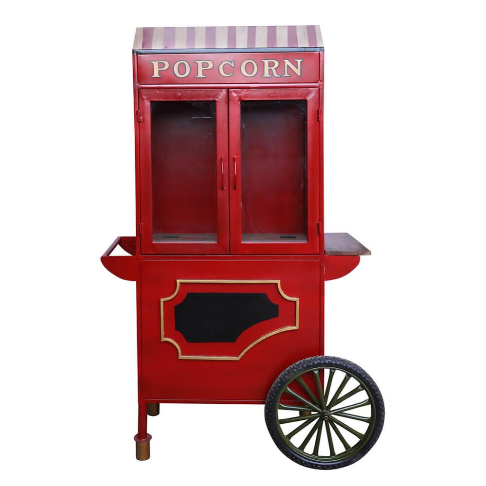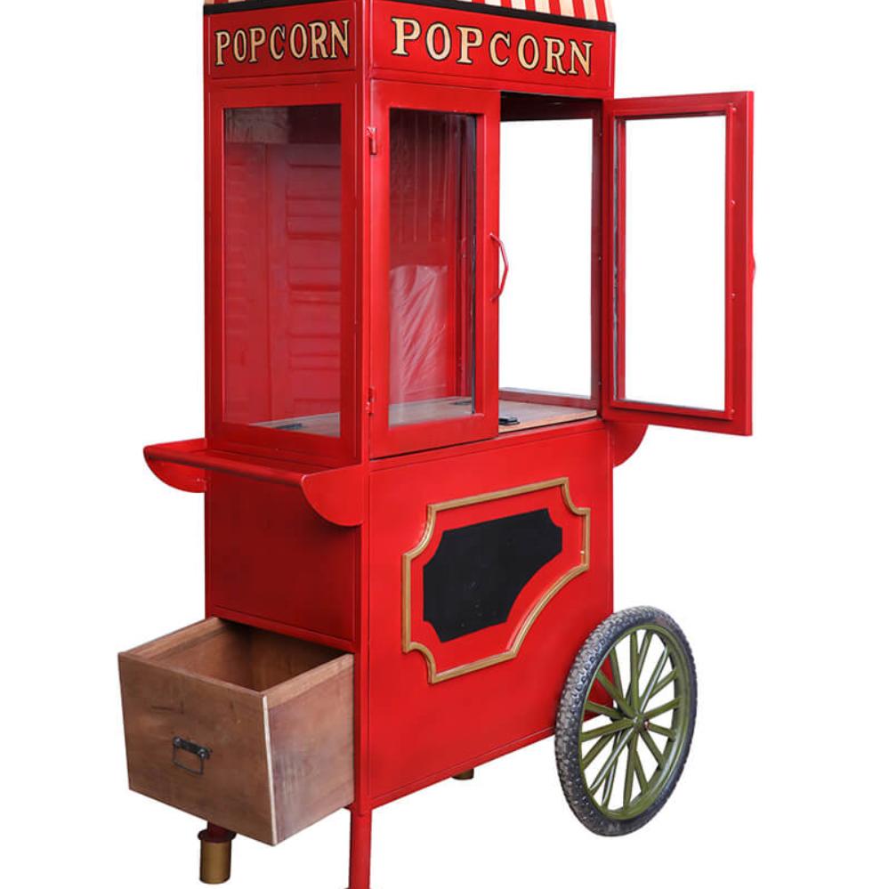 Dieser Popcornwagen ist eine Hommage an die Tage, als Zirkusse und Jahrmärkte die größten Ereignisse der Stadt waren. Mit seiner auffälligen rot-weißen Farbpalette und dem klassischen "POPCORN"-Banner wird er sicherlich Aufmerksamkeit erregen und ein Lächeln ins Gesicht zaubern. Die robusten Räder und die praktische Schublade an der Unterseite des Wagens verleihen seinem charmanten Erscheinungsbild eine zusätzliche Funktionalität. Der Popcornwagen wird ohne die Maschine zur Herstellung des Popcorns geliefert, kann jedoch als lustige Aufbewahrung für Popcorn oder Snacks dienen. Stellen Sie sich diesen Wagen zum Beispiel in einer gemütlichen Ecke eines familienfreundlichen Restaurants oder in Ihrem Geschäft oder Ausstellungsraum vor, wo der Popcornwagen verwendet werden kann, um eine entspannte und einladende Atmosphäre zu schaffen, in der Kunden einen Snack genießen können, während sie einkaufen.