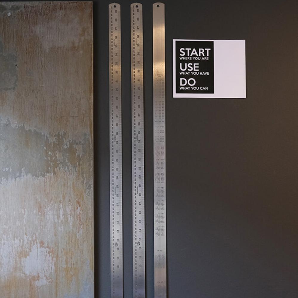 Metall-Lineal - 1 Meter. Dieses Metall-Lineal entspricht genau dem Modell, das in der Produktion in der Fabrik in Indien verwendet wird. Dieses robuste Metall-Lineal wurde für Präzision und Zuverlässigkeit entwickelt. Mit seiner Meterlänge eignet es sich ideal für präzise Messungen und Arbeiten mit größeren Maßstab. Neben seiner praktischen Verwendung kann es auch als tolles Dekorationsstück verwendet werden, das einen Hauch von industrieller Note in Ihr Zuhause oder Büro bringt.