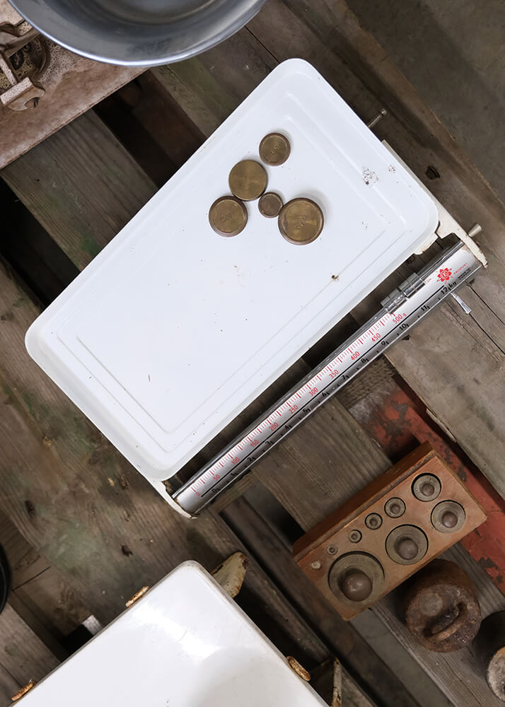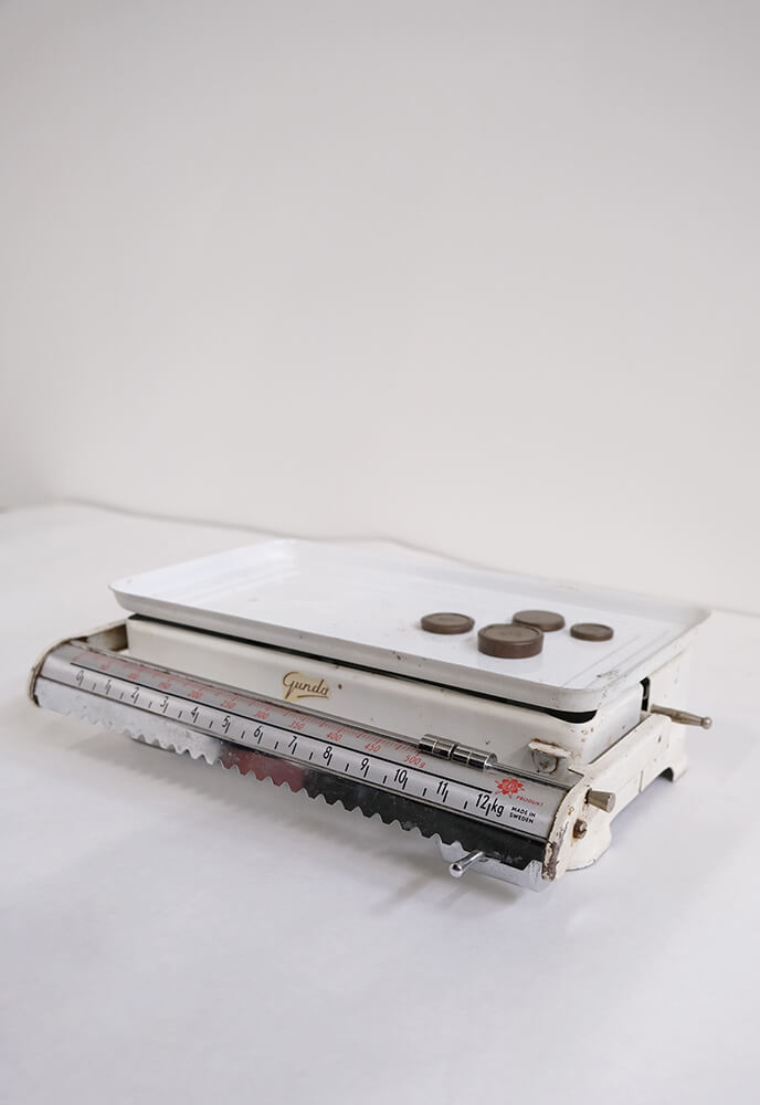Rustikale weiße Küchenwaage