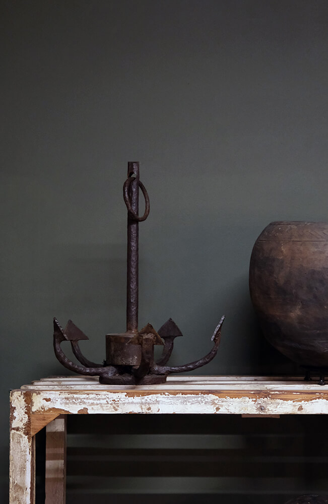 Dieser rustikale Schiffsanker mit fünf spitzen Haken hat ein cooles und industrielles Aussehen. Die Haken sind stark, was dem Anker ein hartes und rohes Aussehen verleiht. Der Anker ist massiv und passt perfekt als Blickfang in einer Restaurant-Einrichtung mit maritimem Thema. Stellen Sie ihn auf den Boden oder hängen Sie ihn an der grossen Öse oben am Anker auf. Bitte beachten Sie jedoch, dass der Anker ziemlich schwer ist.