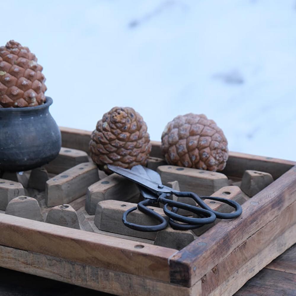 Stellen Sie sich vor: Etwas so Praktisches wie eine Schere kann so schön sein. Die Schere hat einen dunklen Griff, der auf die schönste Art und Weise gestaltet ist. Die Klinge ist aus Eisen, und die Schneiderschere hat eine gute Schnittqualität. Wenn Sie die Schere nicht zum Schneiden verwenden, lassen Sie sie auf einer Platte dekorieren oder hängen Sie sie zur Dekoration an einen Haken.