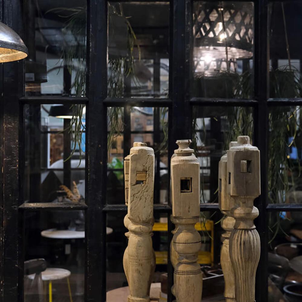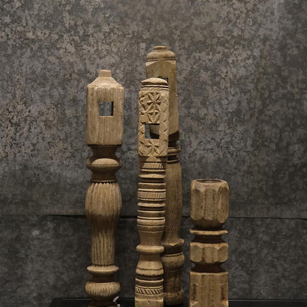 Hier finden Sie schönes und charmantes Wiederverwendung in Form von alten Tischbeinen, die auf eine Metallplatte gestellt wurden. Eine wirklich schöne, dekorative und persönliche Skulptur, die Ihrer Einrichtung Stimmung und Atmosphäre verleiht. Lassen Sie die Holzskulptur den Tisch, den Boden oder die Fensterbank schmücken. Die Skulptur ist so wie sie ist absolut fantastisch, aber wenn Sie einen Wow-Effekt erzeugen möchten, dann gilt: Je mehr zusammen, desto besser.
