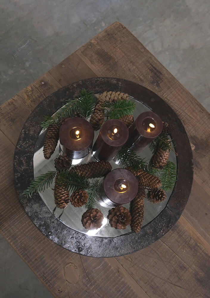 Dieser runde Spiegel strahlt einen rauen, industriellen Charme aus, mit seinem coolen Rahmen aus wiedergewonnene Schwerlastplatten. Das patinierte und robuste Aussehen des Rahmens verleiht dem Spiegel einen authentischen, upcycelten Charakter, der perfekt in rustikale und industrielle Umgebungen passt. Das massive Material und die dunkle Oberfläche bilden einen schönen Kontrast zum klaren Spiegelglas und machen ihn zu einer auffälligen Wanddekoration. Ideal für alle, die wiedergewonnene Materialien lieben und einen Spiegel mit Geschichte und Charakter suchen.