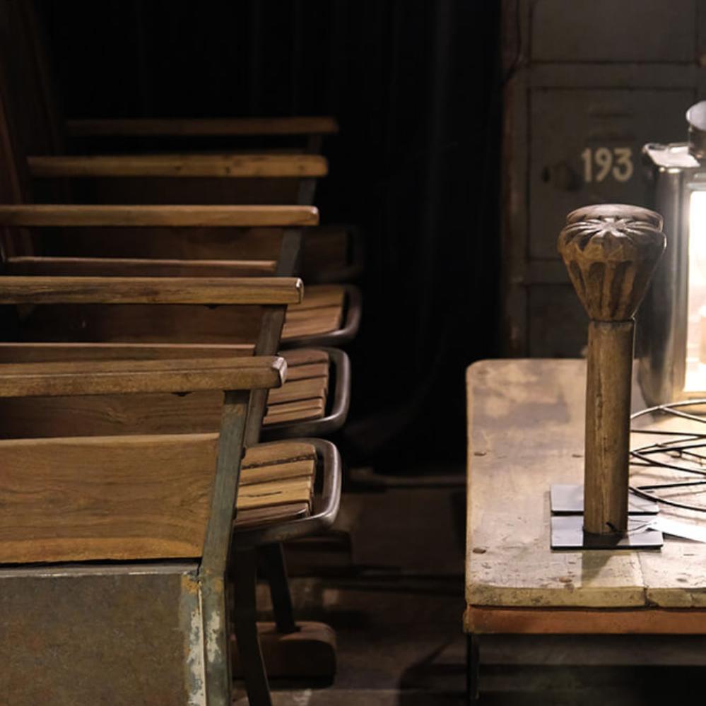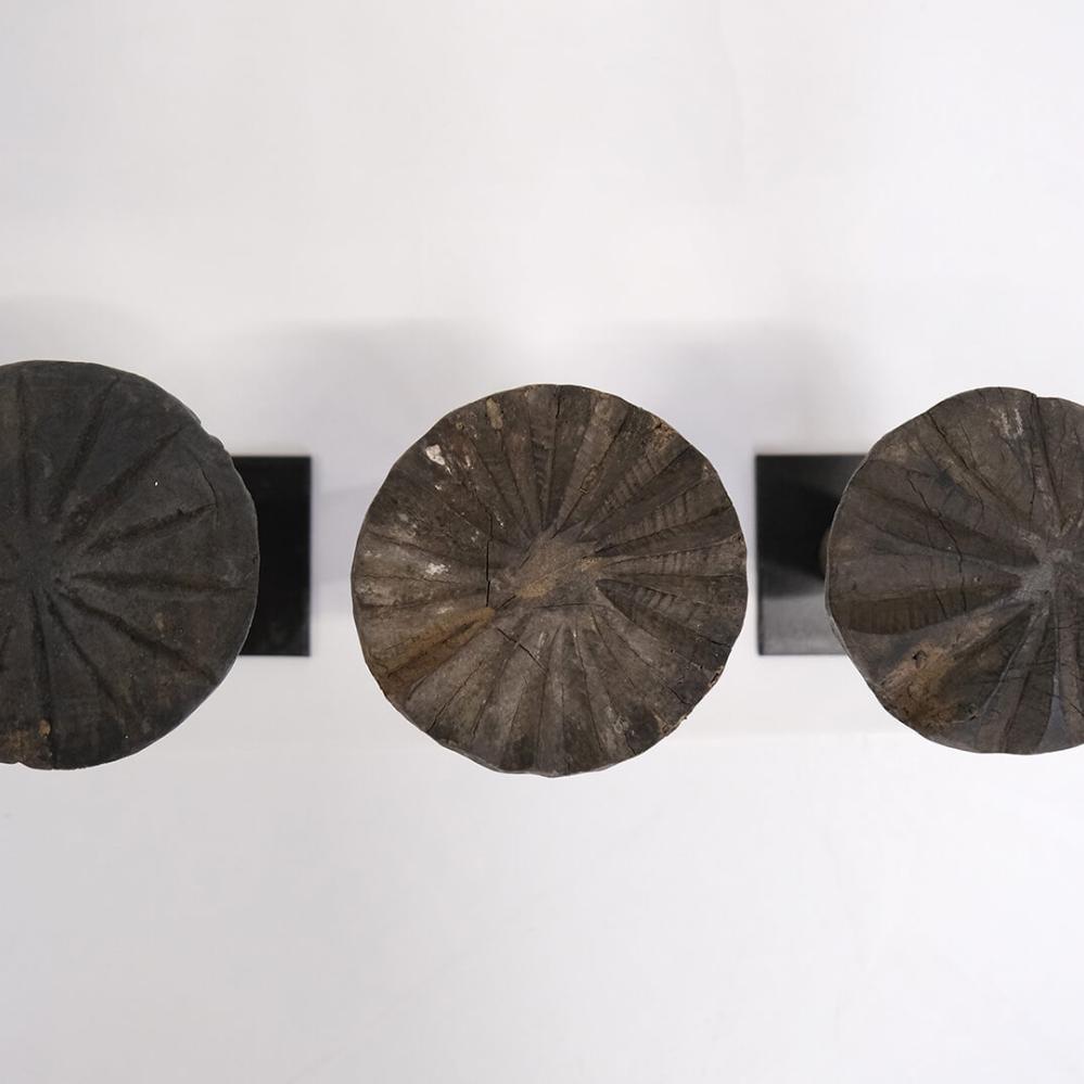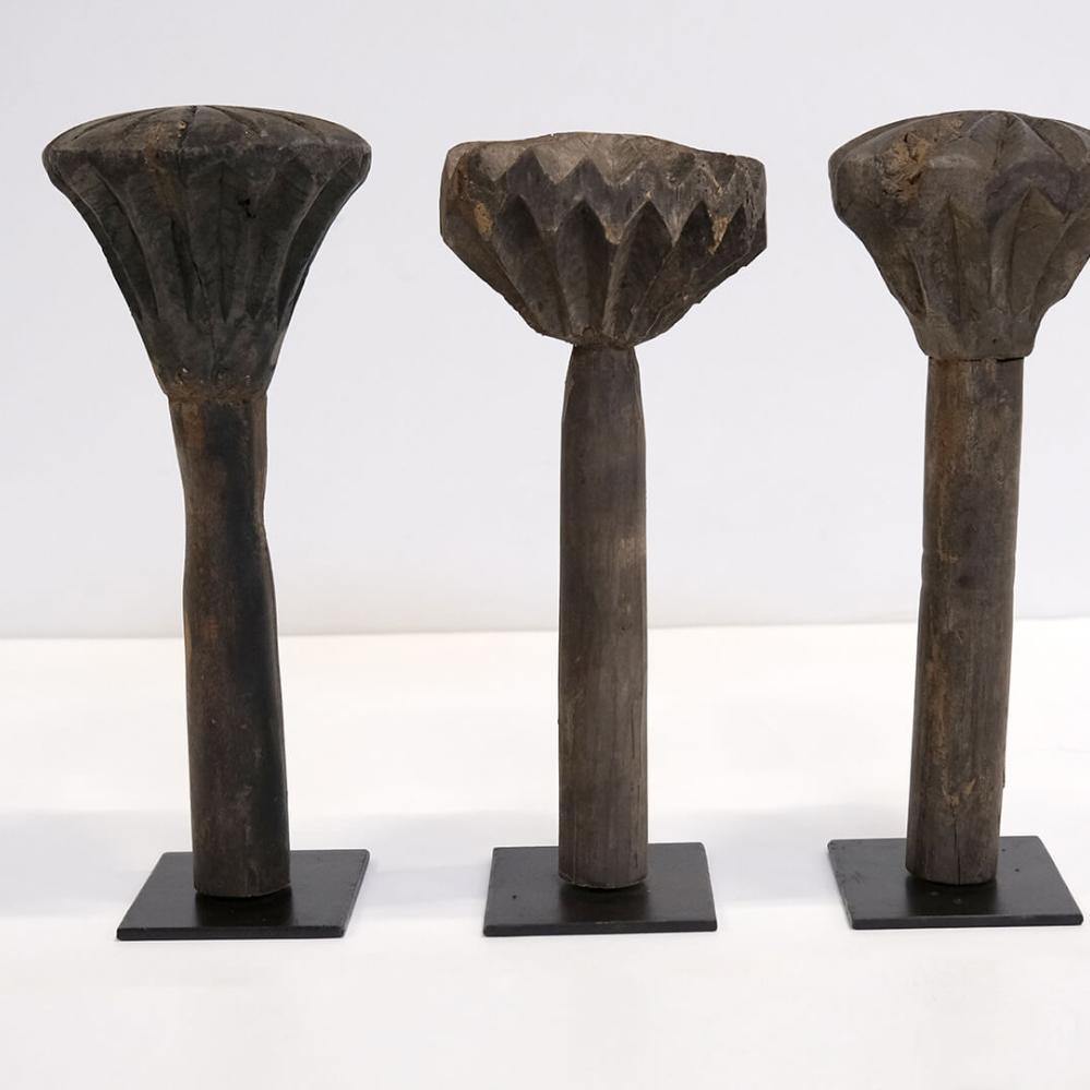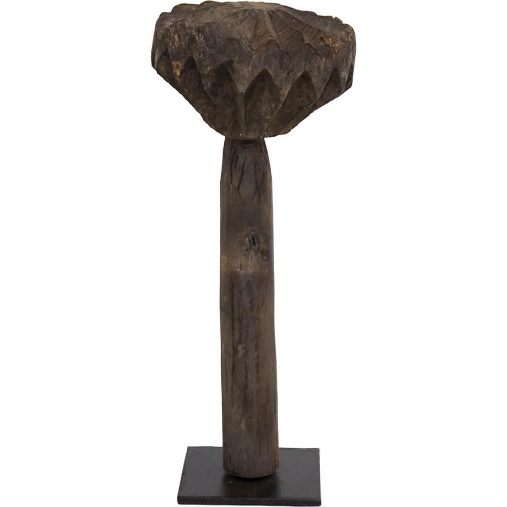 Schöne Skulptur aus einem alten Holzbutterstampfer mit Stiel. Die Skulptur ist wirklich dekorativ. Auf diese lustige Weise bringen Sie eine authentische und nostalgische Geschichte in Ihre Einrichtung.