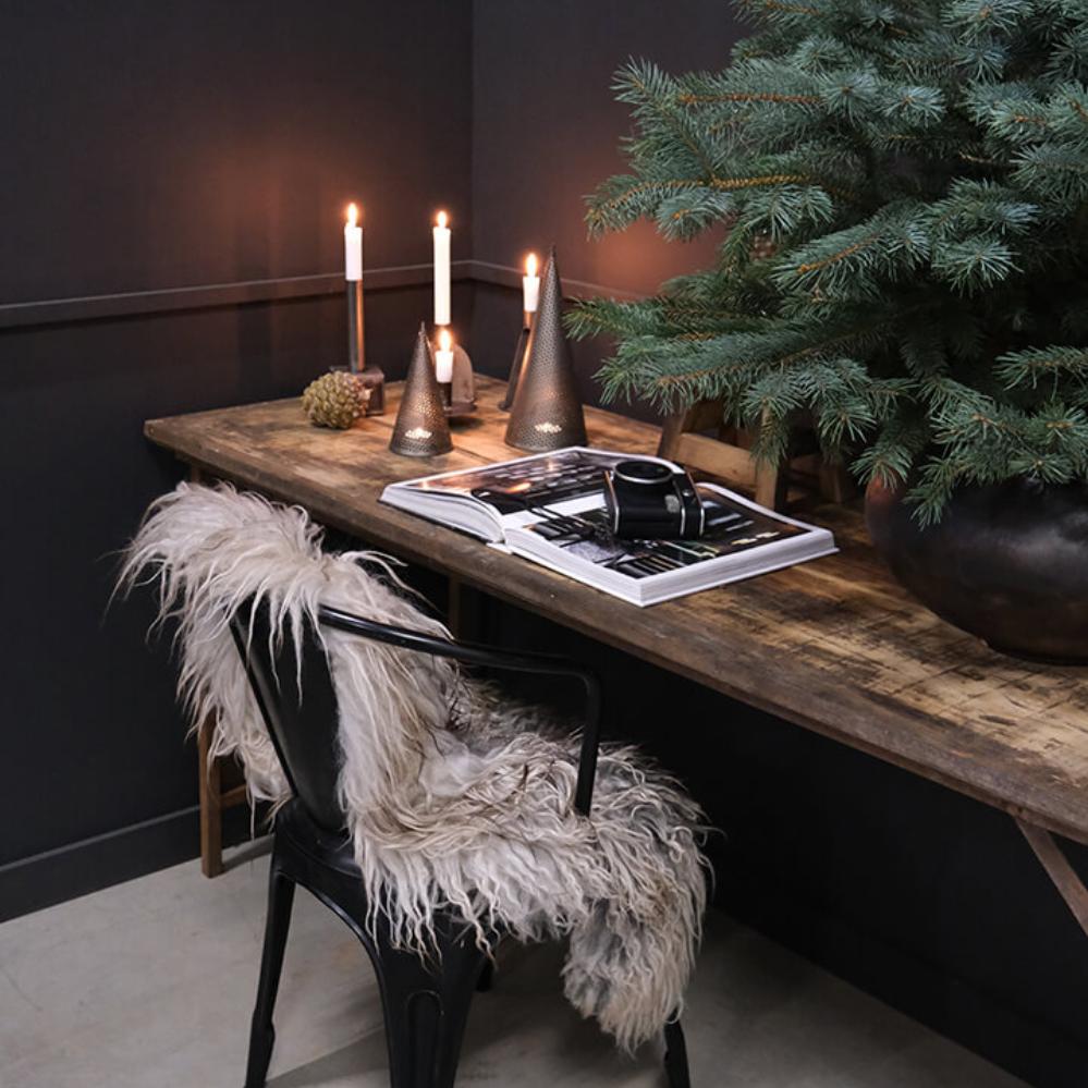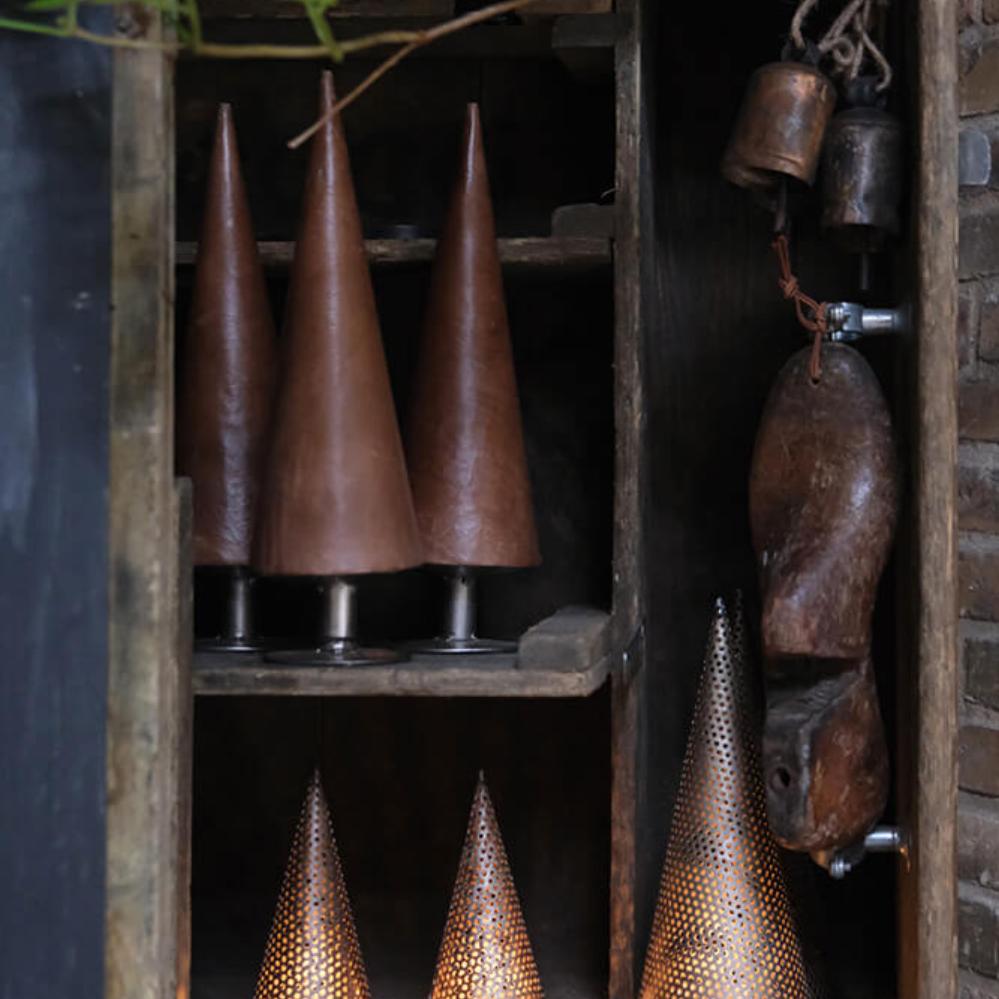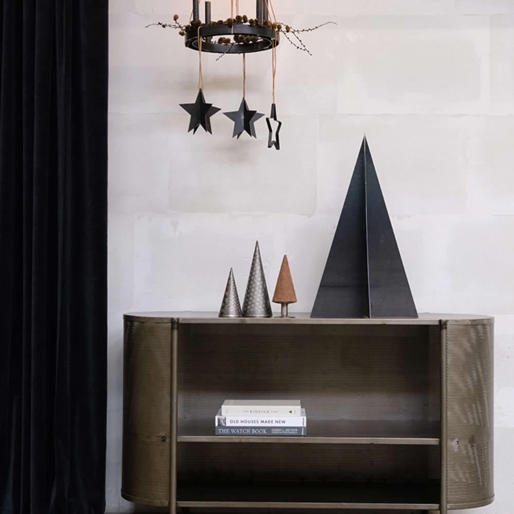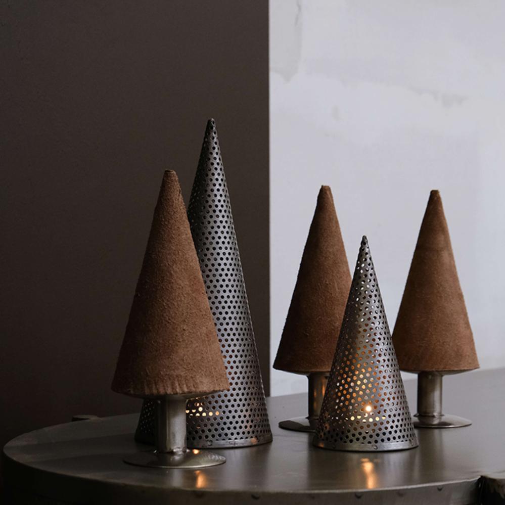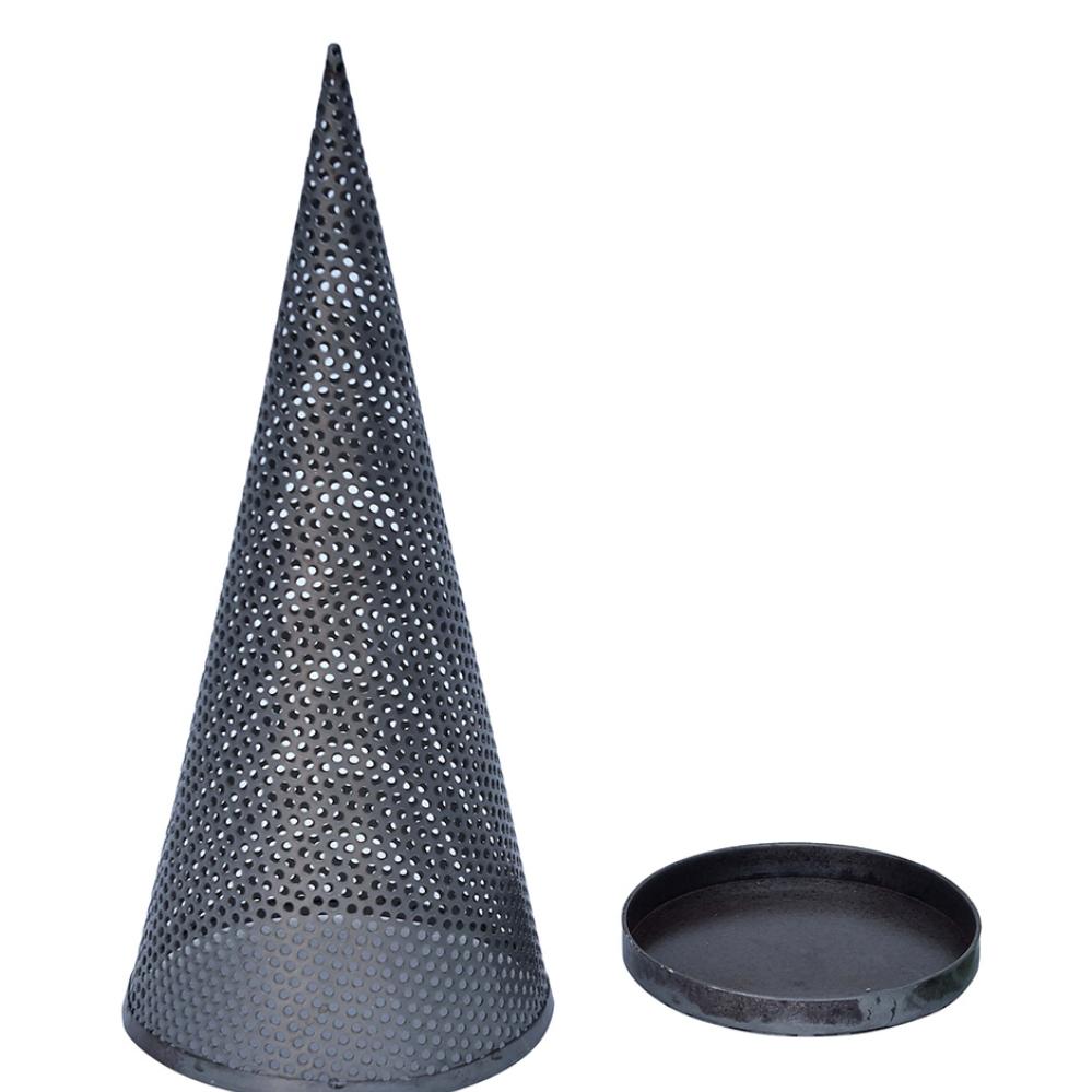 Rustikaler Weihnachtsbaum aus perforiertem Eisen mit Schale, die sowohl für kleine als auch für große Teelichter geeignet ist. Verleihen Sie Ihrer Weihnachtsdekoration eine raue Note mit diesem Weihnachtsbaum, der sowohl für Teelichter als auch mit einer Lichtkette verwendet werden kann, und umgekehrt als Kegel genutzt werden kann. Stellen Sie vier der schönen Weihnachtsbäume zusammen als eine leichte Neuinterpretation des traditionellen Adventskranzes. Fügen Sie ein paar Kiefernzweige oder Eukalyptusranken und ein paar Zapfen hinzu, et voila! Auch kleiner erhältlich (vgl. Nr. M16649), damit Sie alle mischen können.