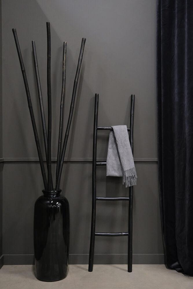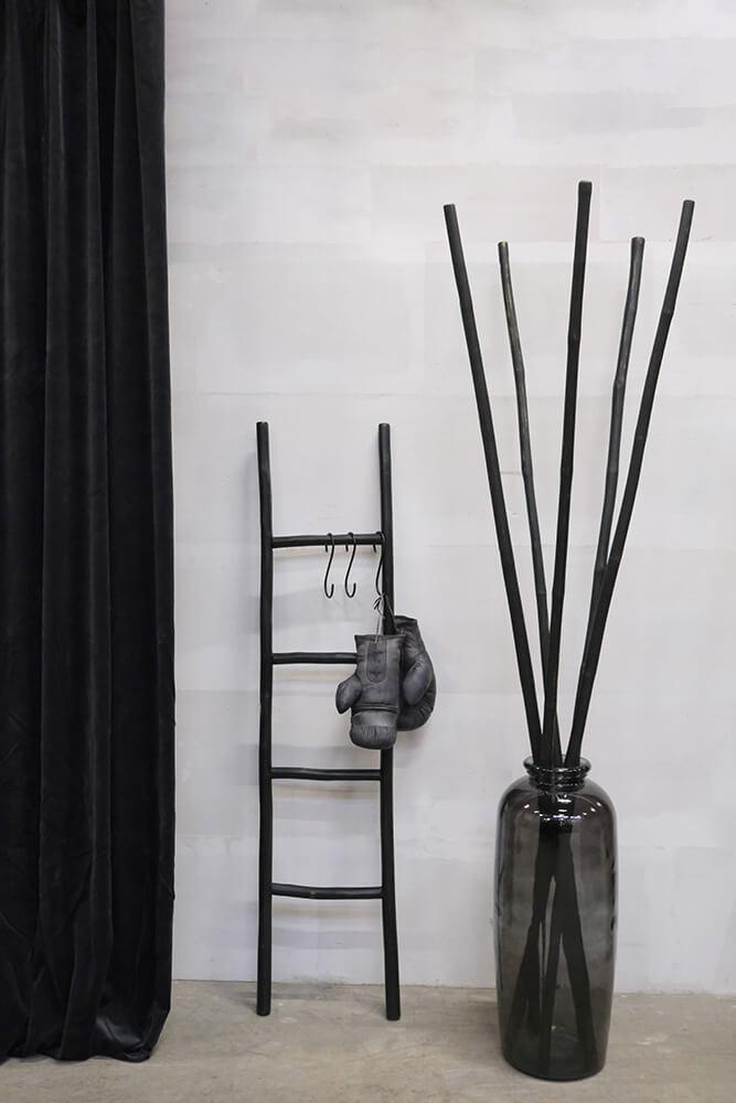 Carlson Leiter aus schwarz lackiertem Mangoholz. Diese stilvolle Leiter ist für Dekoration und das Aufhängen von Gegenständen konzipiert. Sie ist handgefertigt und verfügt über eine wunderschöne, glatte, schwarz lackierte Oberfläche. Die Carlson Holzleiter ist eine schöne und praktische Lösung, um Ihre Lieblingsdekorationen zu präsentieren oder leichte Gegenstände wie Schals, Handtücher oder Pflanzen aufzuhängen. Sie fügt sich nahtlos in jede moderne oder klassische Einrichtung ein und verleiht Ihrem Zuhause einen Hauch von Stil. Verleihen Sie Ihrem Raum mit dieser zeitlosen Leiter eine persönliche Note.