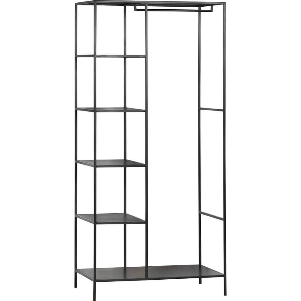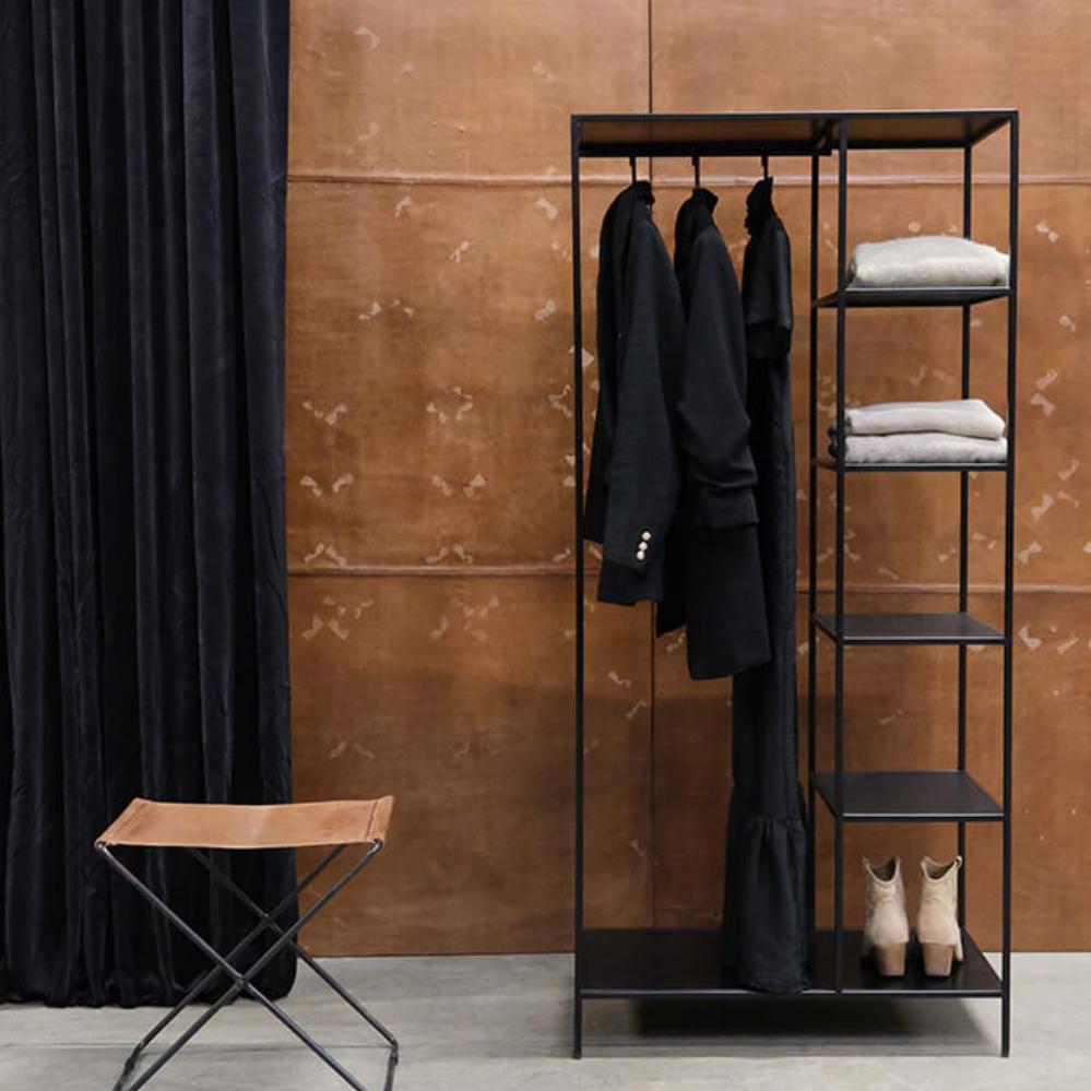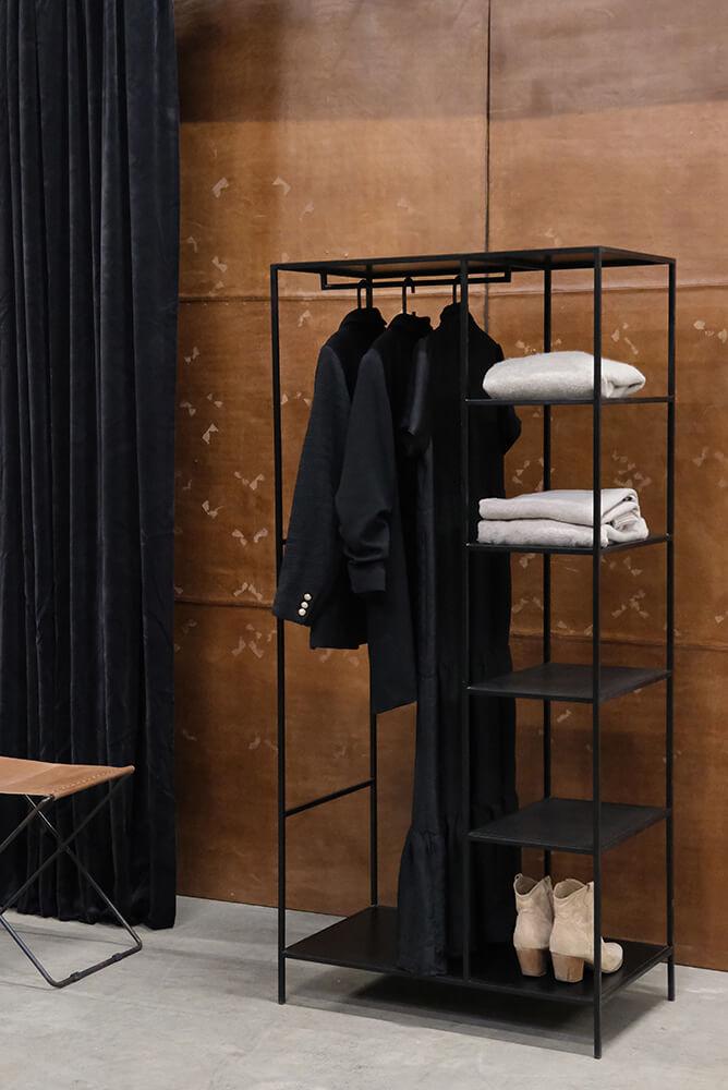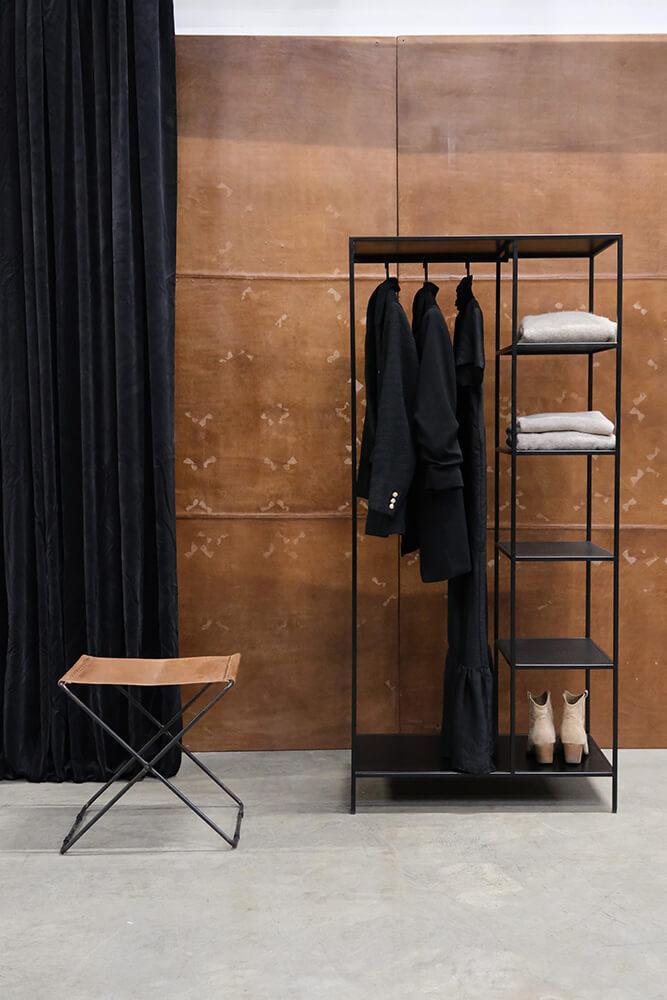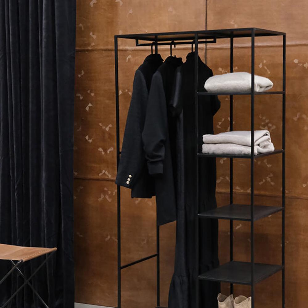 Dieser Kleiderständer aus Eisen ist die perfekte Lösung zur Aufbewahrung und Präsentation von Kleidung und Accessoires. Mit 5 Fächern und einer praktischen Bügelstange zum Aufhängen von Kleidung bietet er Ihnen vielfältige Aufbewahrungsmöglichkeiten. Die obere Platte kann ebenfalls als zusätzliches Fach für große Töpfe oder Vasen genutzt werden. Das zeitlose und schlichte Design fügt sich in jeden Einrichtungsstil ein und verleiht sowohl einem Geschäft, einem Showroom als auch einem Zuhause Eleganz. Lassen Sie diesen Kleiderständer aus Eisen Ihnen dabei helfen, Ihre Produkte auf beeindruckende Weise zu organisieren und zu präsentieren. Der Abstand zwischen den Fachböden beträgt 29 cm.
