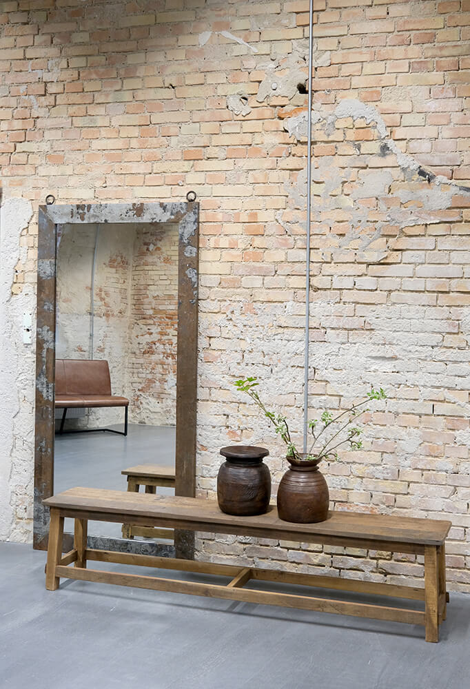 Roher Ganzkkörperspiegel mit breitem Eisenrahmen mit rustikaler Patina. Dieser große Spiegel kann in jedem Raum verwendet werden - im Schlafzimmer, Eingangsbereich oder beim Kleiderschrank. Ein wirklich schöner Spiegel, der Ihrer Einrichtung einen industriellen Touch verleiht. Der Eisenrahmen hat eine Breite von 11 cm.
