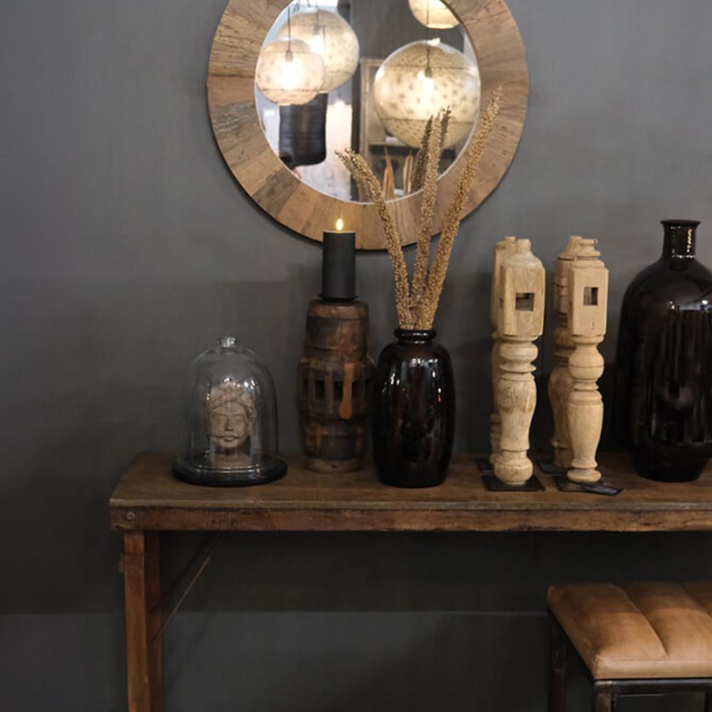 Dieser schöne runde Spiegel mit Holzrahmen aus rustikalem, Altholz ist mehr als ein praktisches Alltagsprodukt. Der Spiegel ist auch eine schöne Dekoration in Ihrer Einrichtung und sicherlich ein Hingucker. Der Wandspiegel kann in jedem Raum platziert werden und Sie können Ihre kleinen Räume optisch "vergrößern", indem Sie den Spiegel mittig platzieren. Sie können eine große Wand auch teilen, indem Sie sie anstelle von Bilderrahmen als Dekoration verwenden. Der Spiegel verleiht eine gemütliche und persönliche Atmosphäre. Der Spiegel ist auch in 70 x 124 cm und 100 x 200 cm erhältlich. Bitte nach Laco suchen.