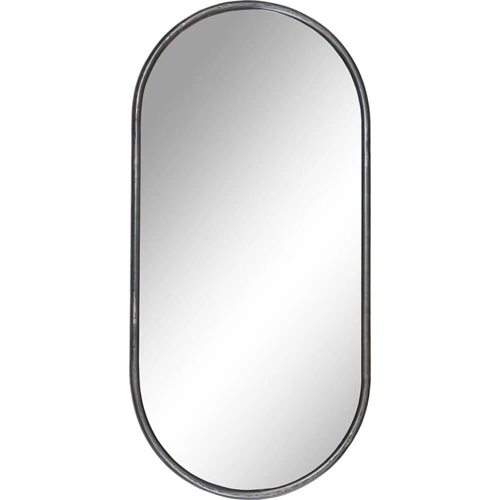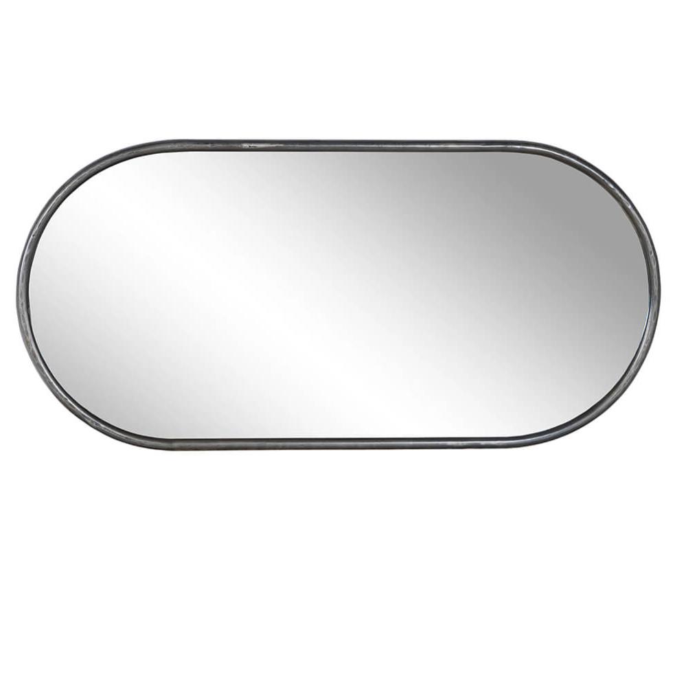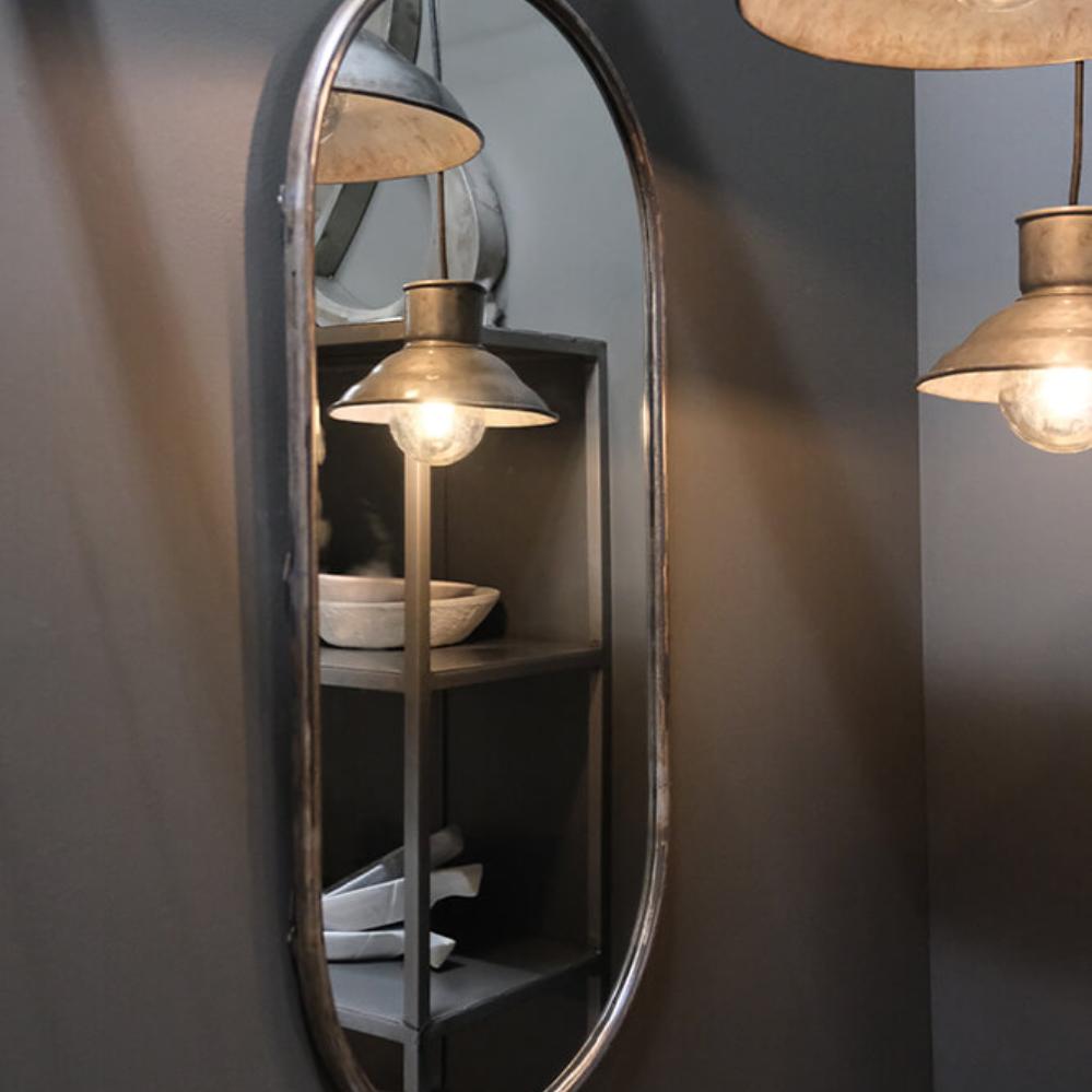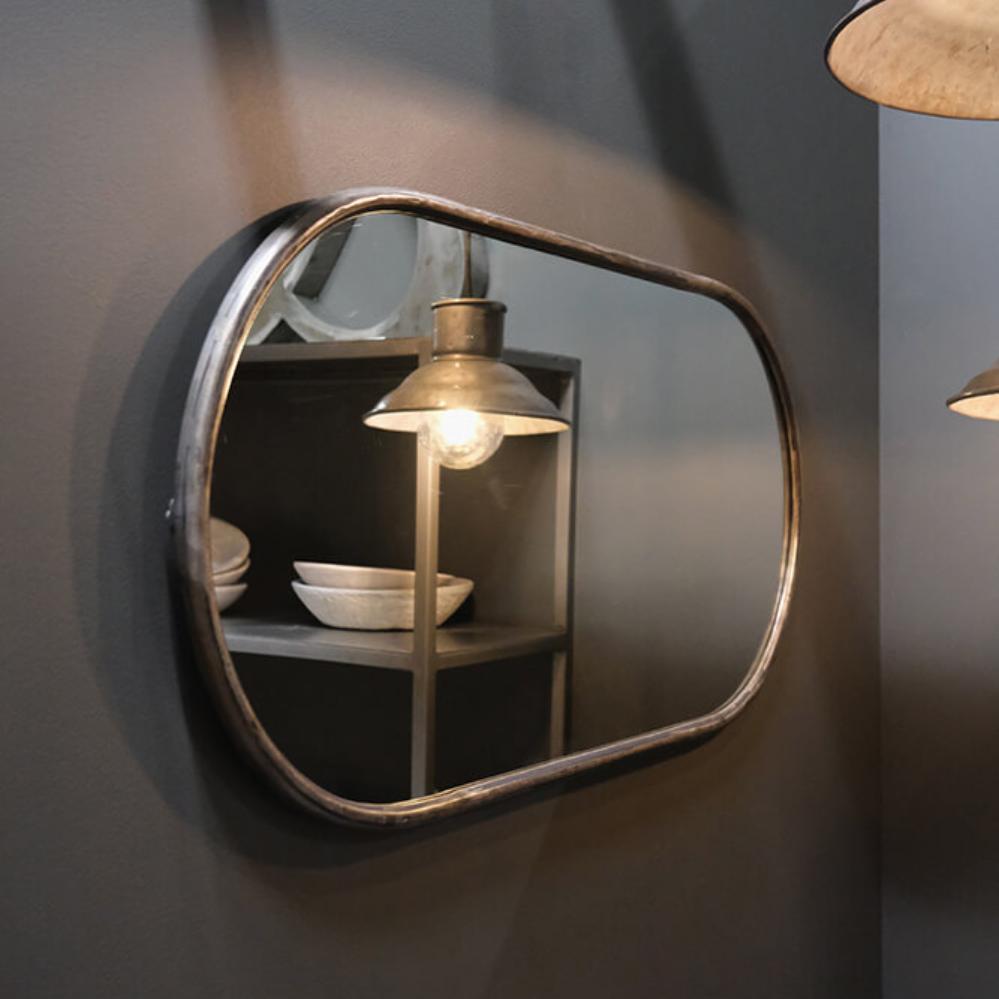 Cooler und rustikaler, ovaler Wandspiegel mit klarlackiertem Eisenrahmen. Der Spiegel ist mit Aufhängevorrichtungen ausgestattet, damit er sowohl vertikal als auch horizontal aufgehängt werden kann. Sie können ihn daher z.B. über dem Waschbecken in Ihrem Badezimmer oder über ein Sideboard z.B. im Eingangsbereich aufhängen.
