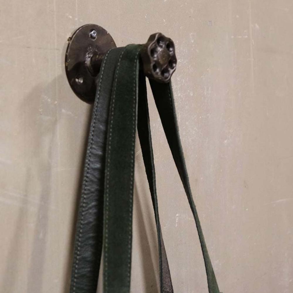 Rustikaler Haken aus Eisen. Der Haken kann sowohl in Ihrem Privathaushalt als auch in Ihrem Unternehmen verwendet werden. Verwenden Sie ihn im Flur für Mantel und Taschen, in der Anprobekabine Ihres Geschäfts oder in Ihrem Restaurant für die Lederschürzen des Küchenchefs. Der Haken eignet sich auch für Kleiderbügel. Die Möglichkeiten mit diesem Haken sind vielfältig. Der Haken hat eine solide runde Platte mit Löchern, so dass er an der Wand montiert werden kann. Mit diesem kraftvollen und markanten Haken verleihen Sie Ihrem Dekor einen rohen und maskulinen Touch.