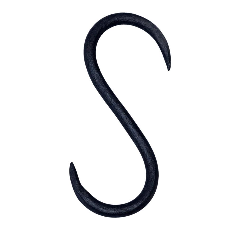 S Haken aus schwarz lackiertem Eisen. Der Haken hat viele Verwendungszwecke. Sie können den Haken überall in Ihrem Dekor verwenden. Im Badezimmer für Handtücher, im Flur für Mantel und Taschen, in der Küche für Geschirrtücher und Küchenutensilien, in Ihrem Kleiderschrank für Gürtel und Accessoires oder für etwas ganz anderes. Ein multifunktionales Produkt. Ist sowohl in einer großen als auch kleinen Version erhältlich.