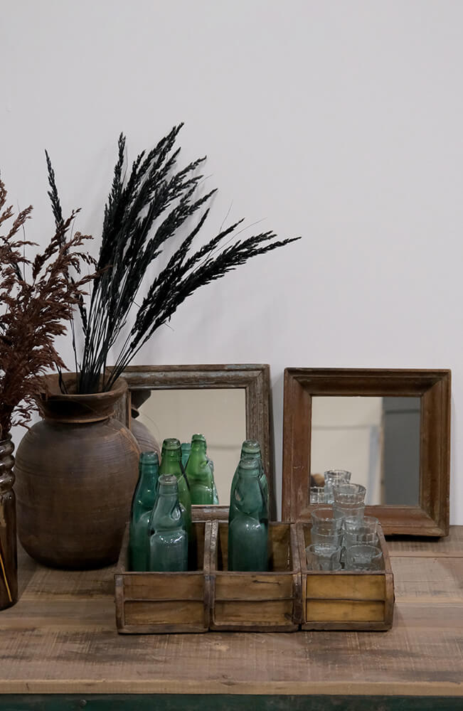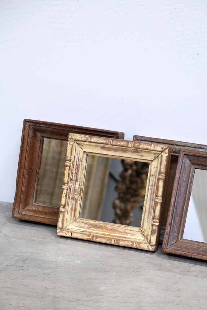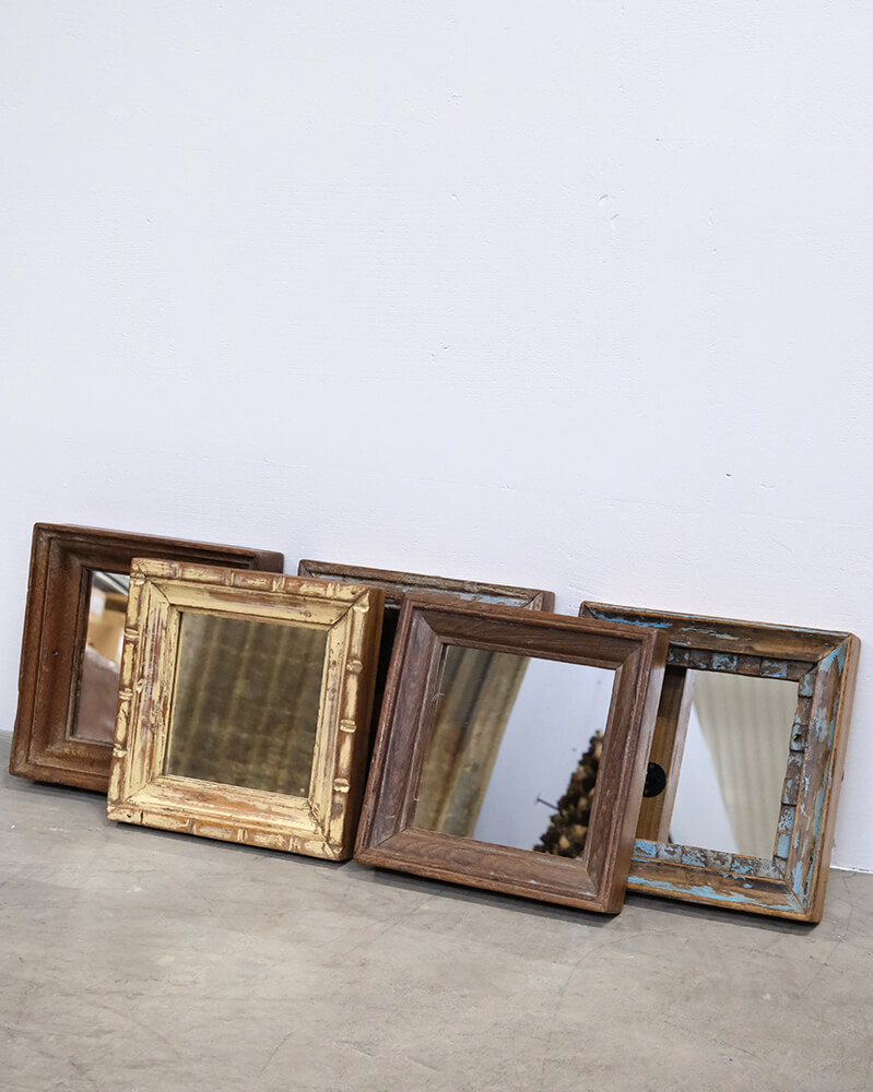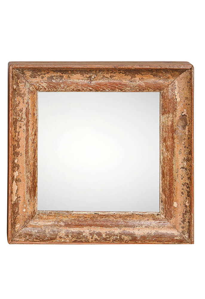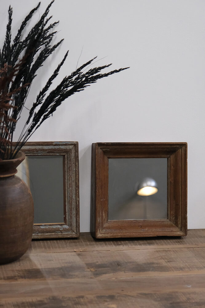 Dekorativer Spiegel mit altem Holzrahmen, bei dem die Spuren der Zeit dem Ausdruck Charakter verleihen. Die abgenutzte Oberfläche und der warme Holzton bringen Charme und Persönlichkeit in die Einrichtung. Ein Spiegel, der sowohl Licht als auch Geschichte widerspiegelt. Perfekt, um Wärme und Charakter in Ihr Geschäft, Restaurant oder Zuhause zu bringen.