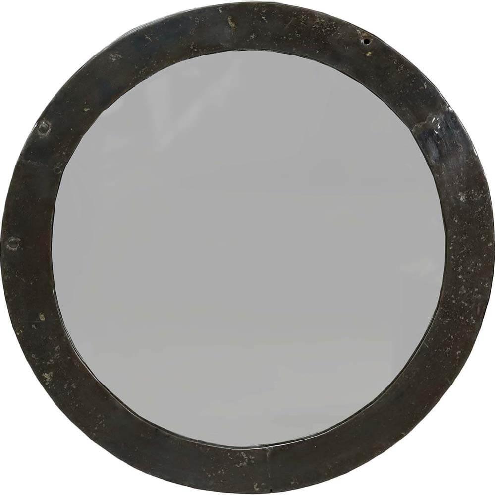 Dieser runde Spiegel strahlt einen rauen, industriellen Charme aus, mit seinem coolen Rahmen aus wiedergewonnene Schwerlastplatten. Das patinierte und robuste Aussehen des Rahmens verleiht dem Spiegel einen authentischen, upcycelten Charakter, der perfekt in rustikale und industrielle Umgebungen passt. Das massive Material und die dunkle Oberfläche bilden einen schönen Kontrast zum klaren Spiegelglas und machen ihn zu einer auffälligen Wanddekoration. Ideal für alle, die wiedergewonnene Materialien lieben und einen Spiegel mit Geschichte und Charakter suchen.